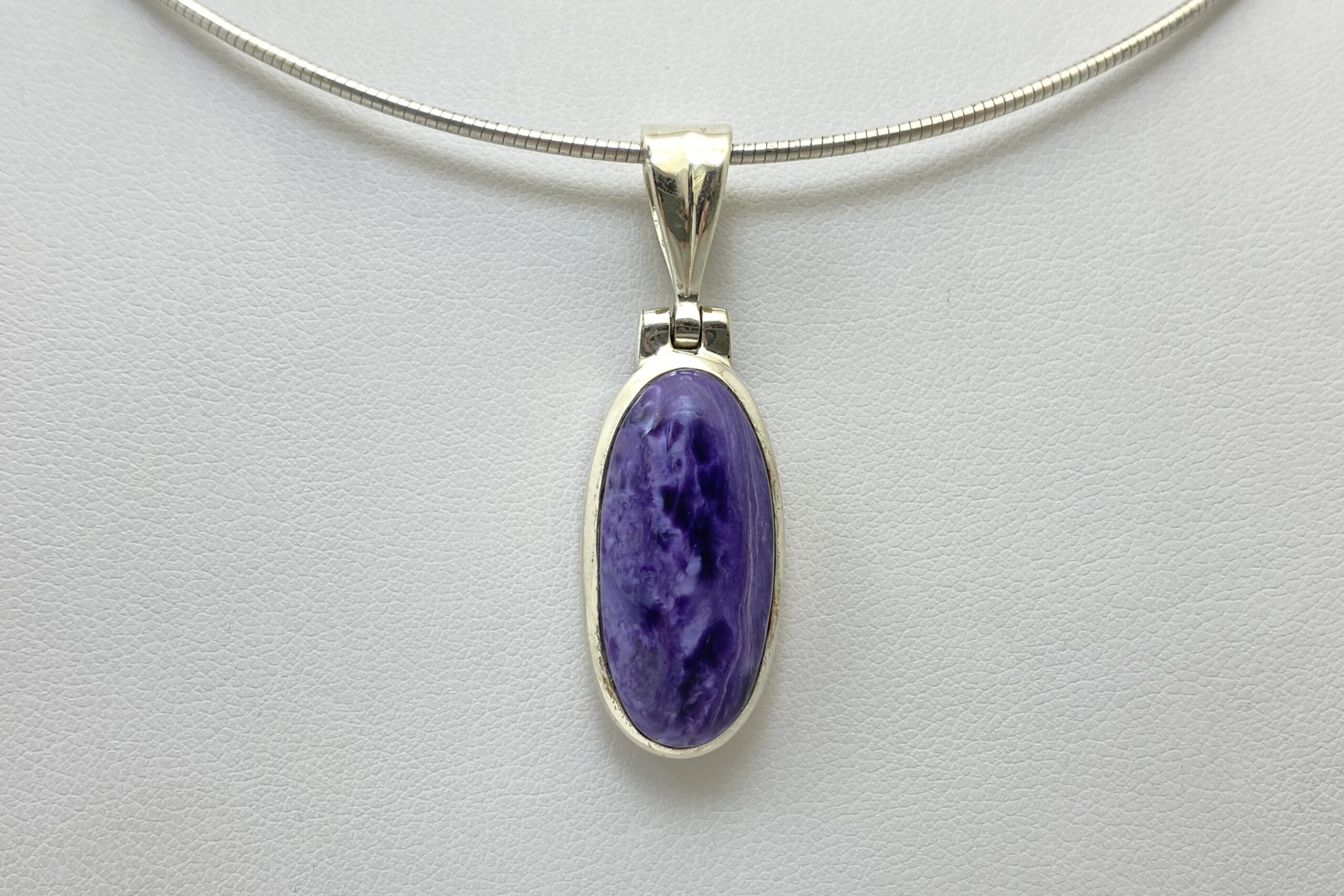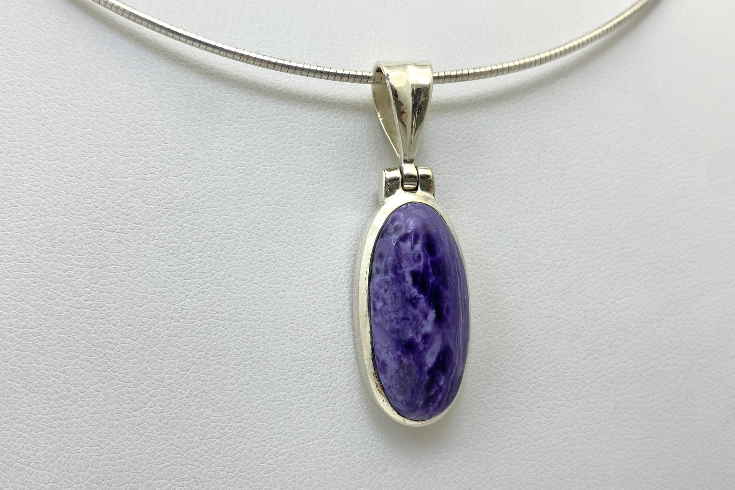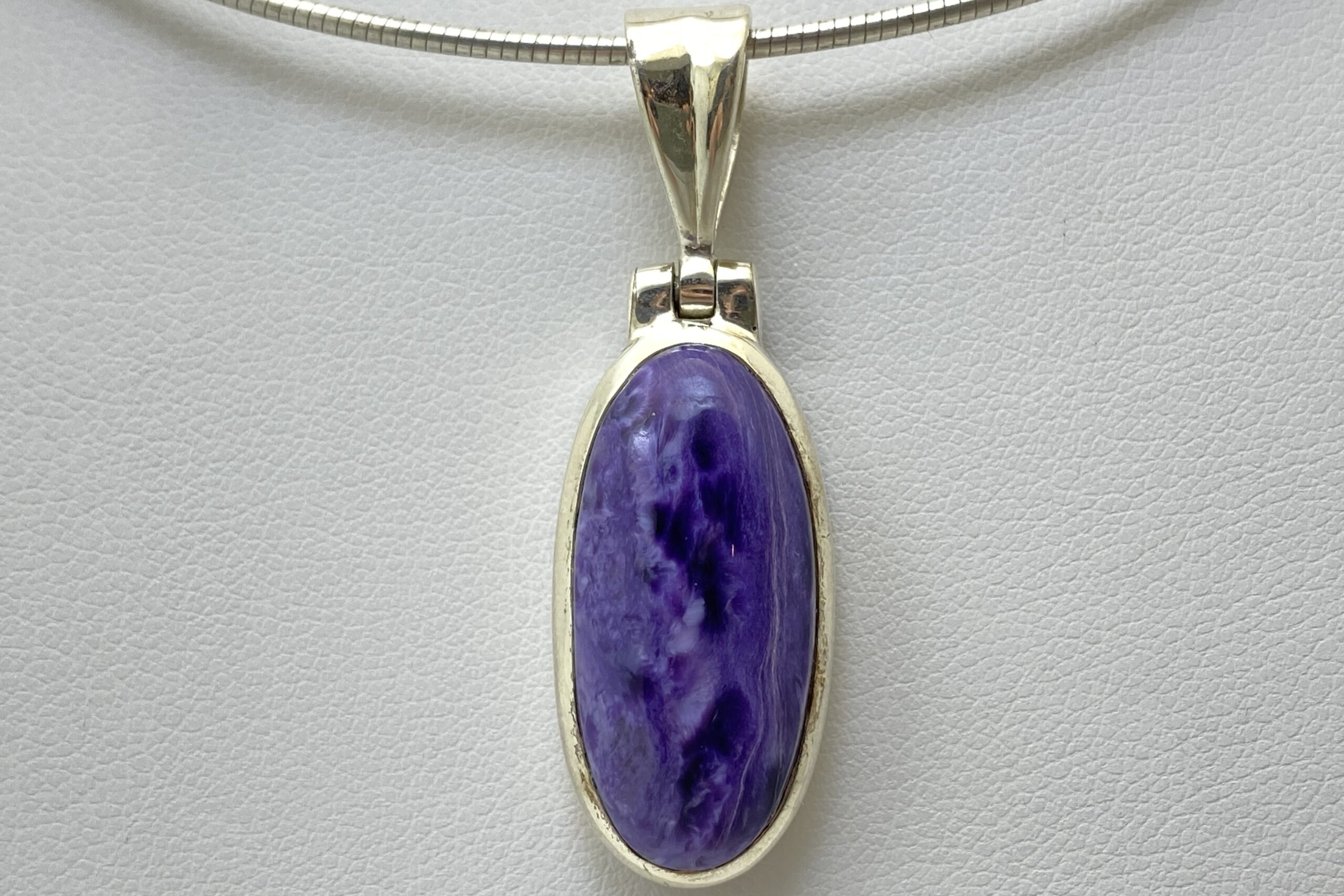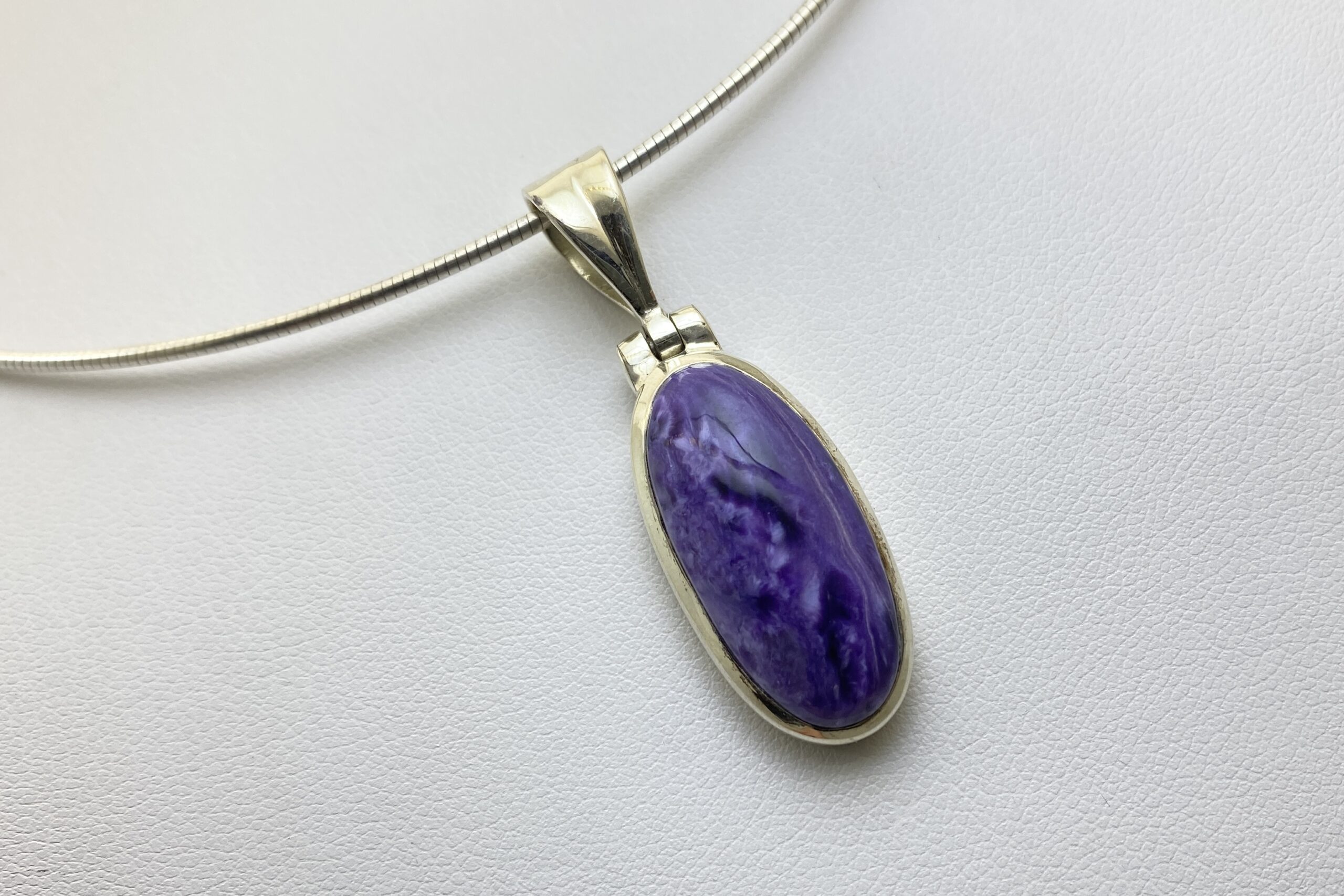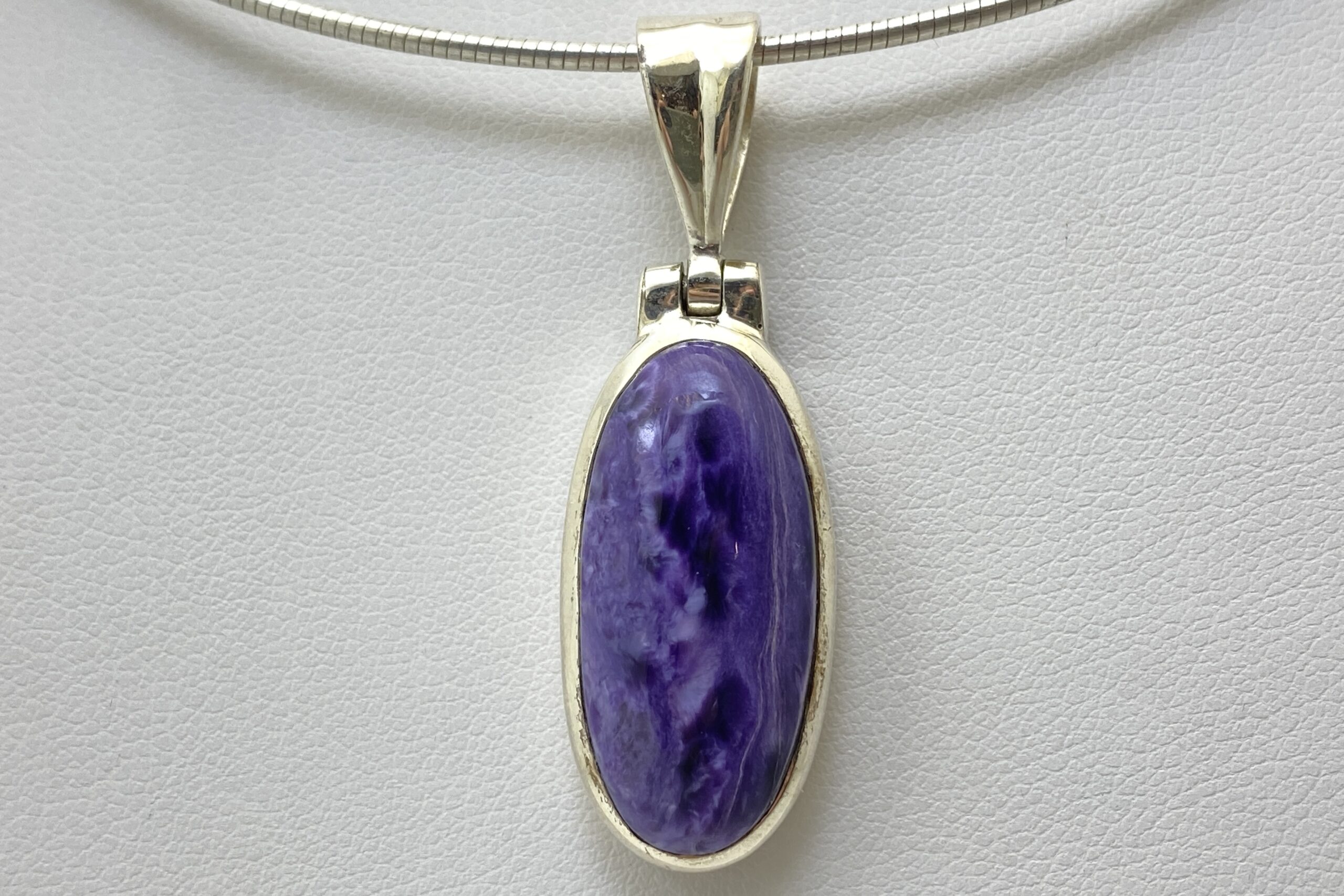 Nádherný unikátní přívěsek s kabošonem překrásného čaroitu se zajímavou přírodní kresbou.