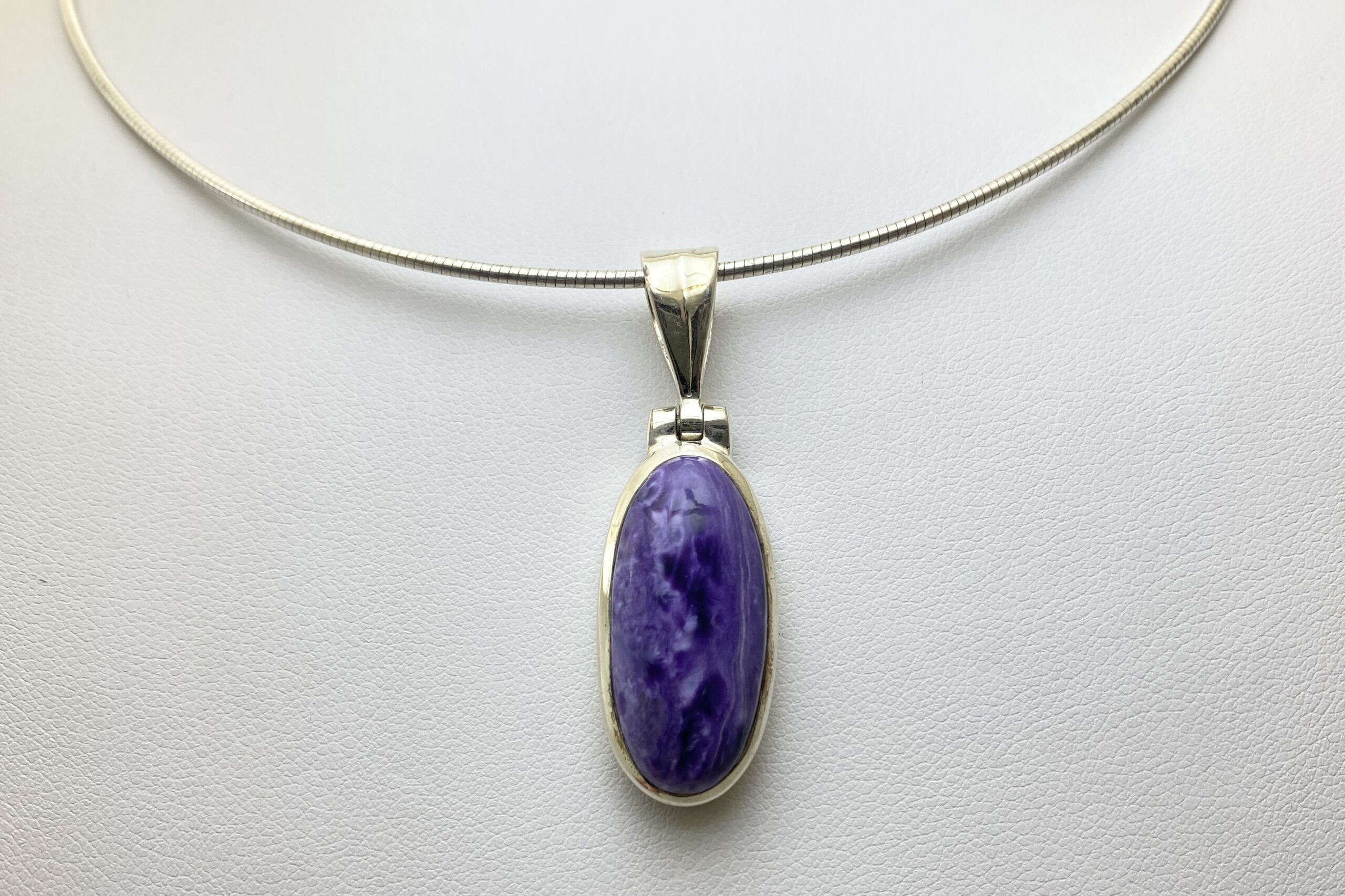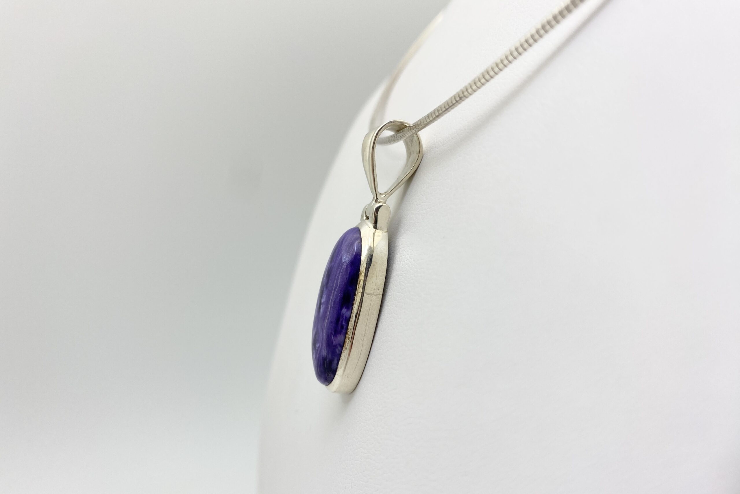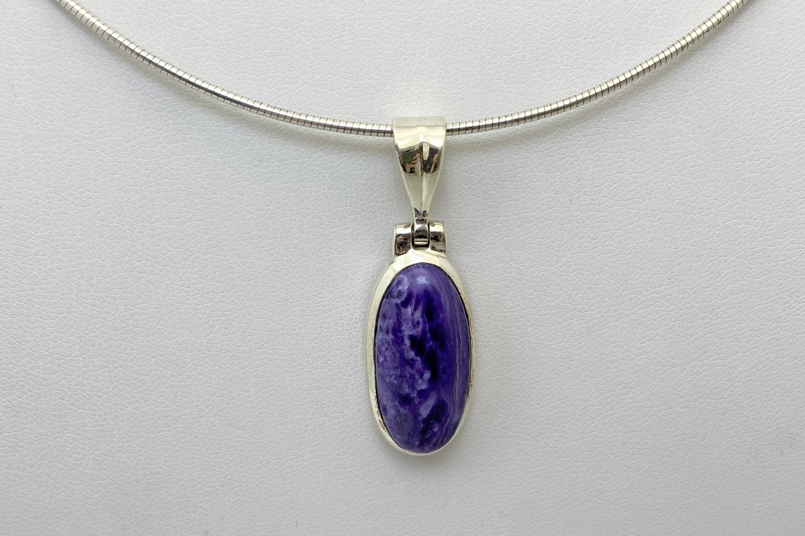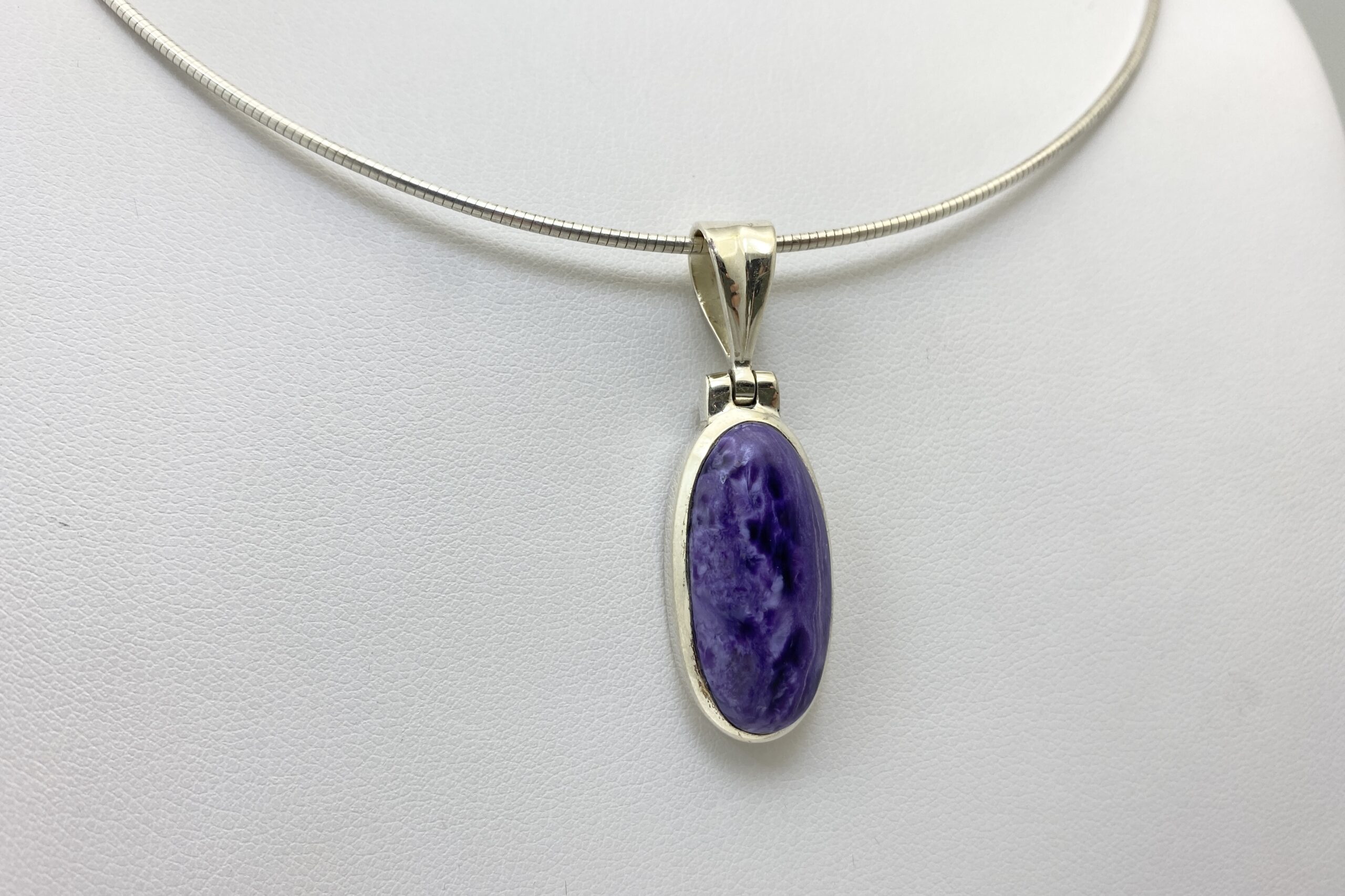 Nádherný unikátní přívěsek s kabošonem překrásného čaroitu se zajímavou přírodní kresbou.