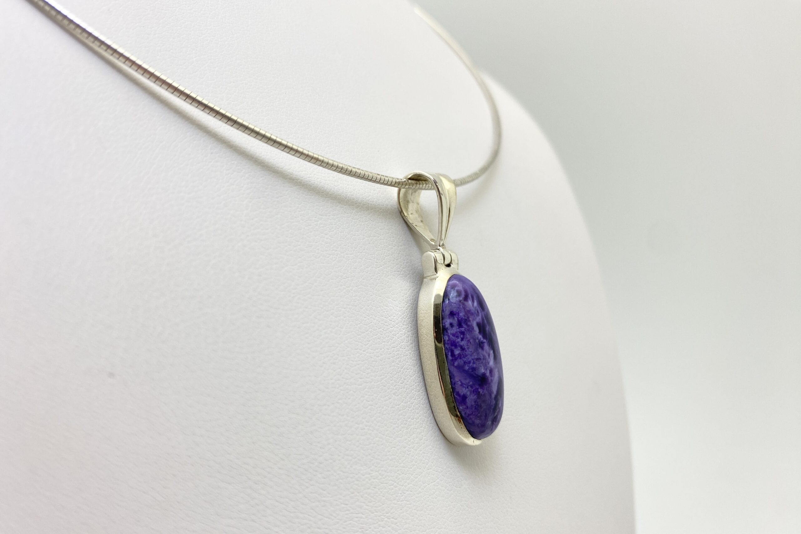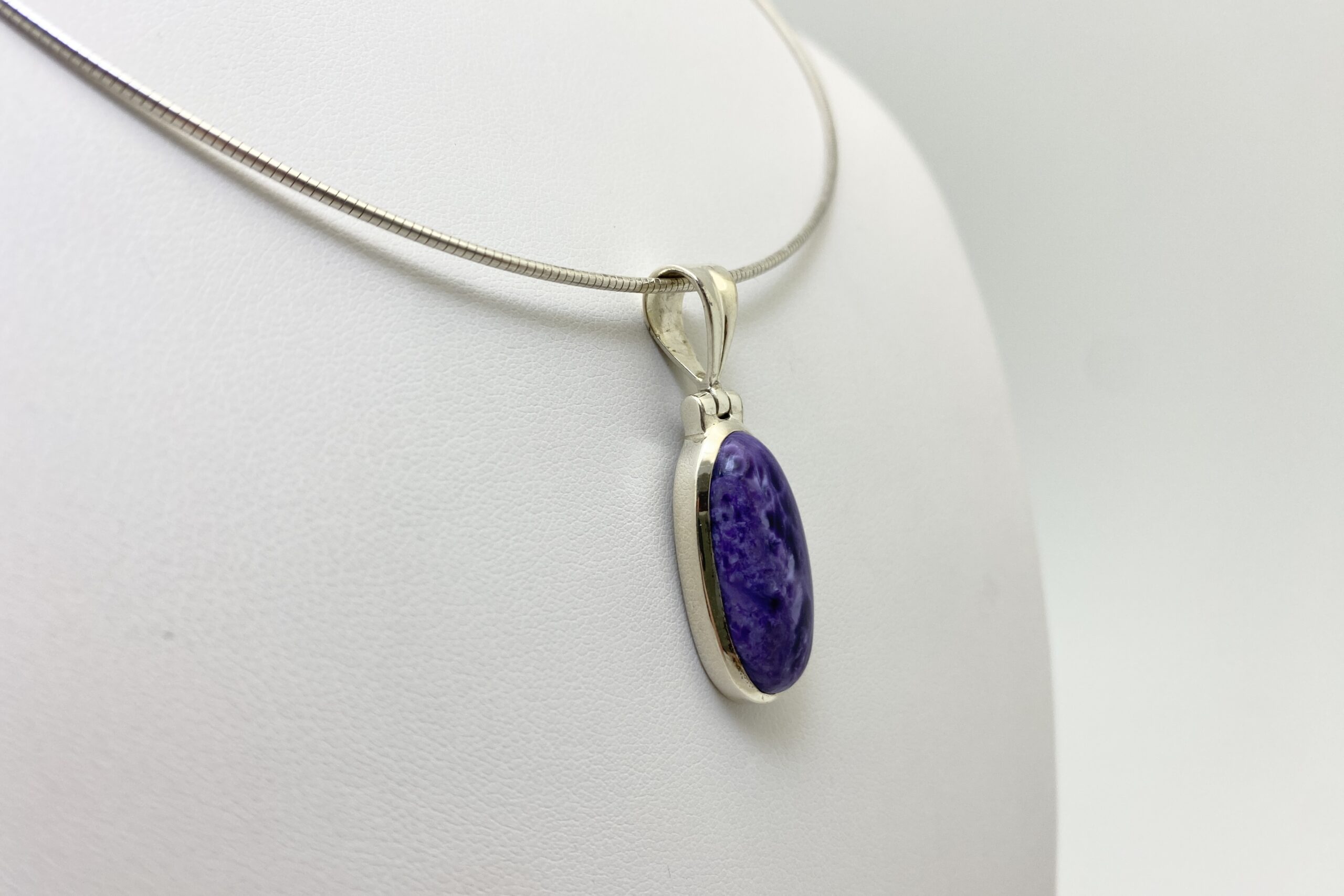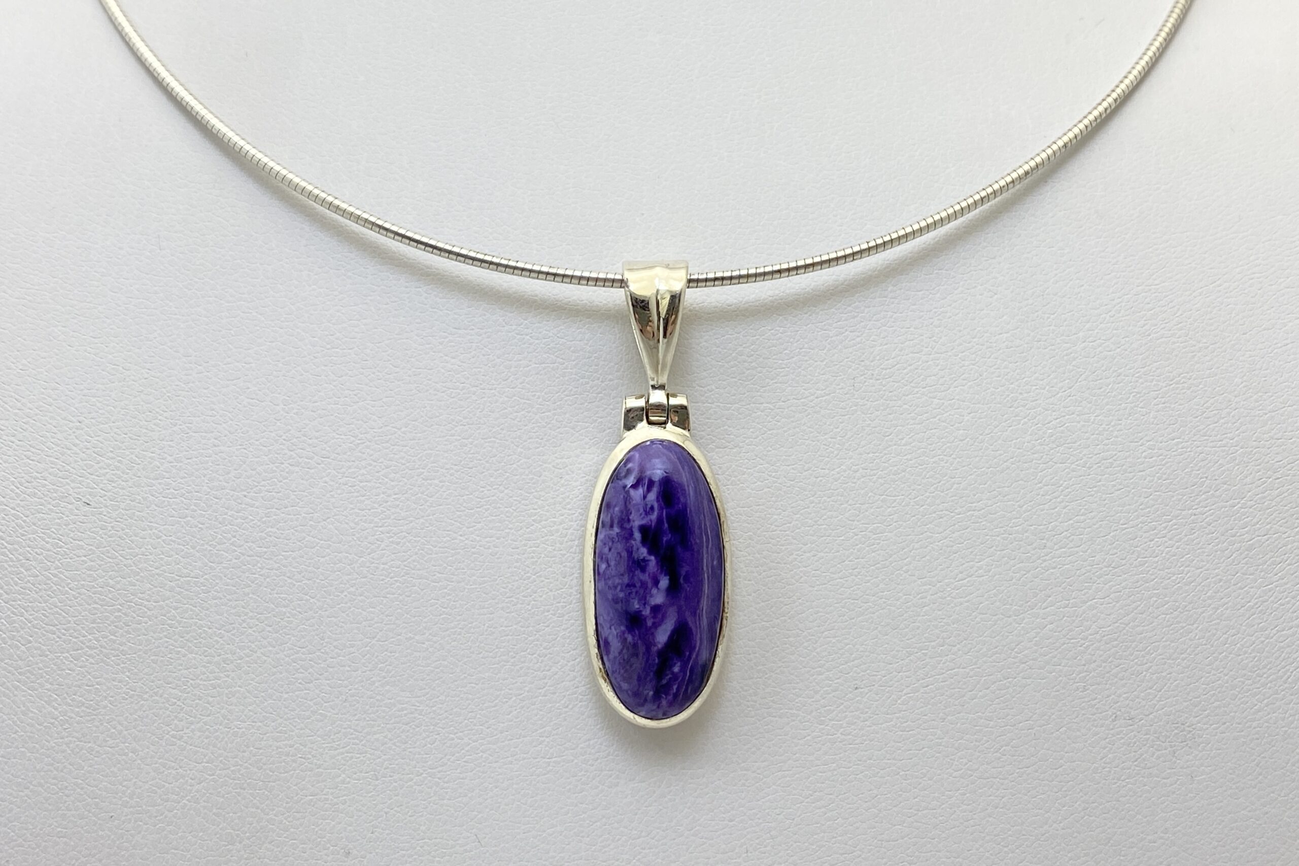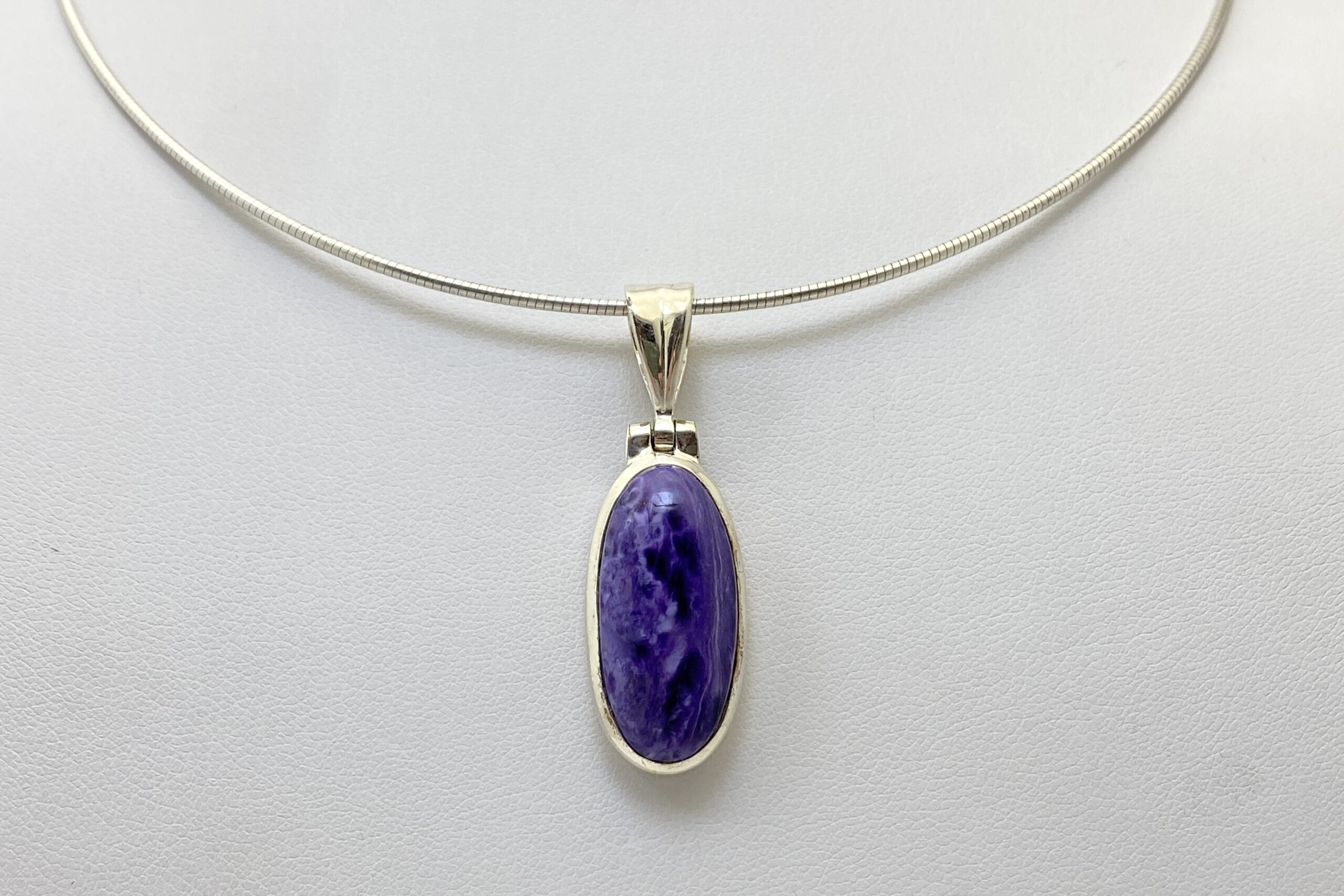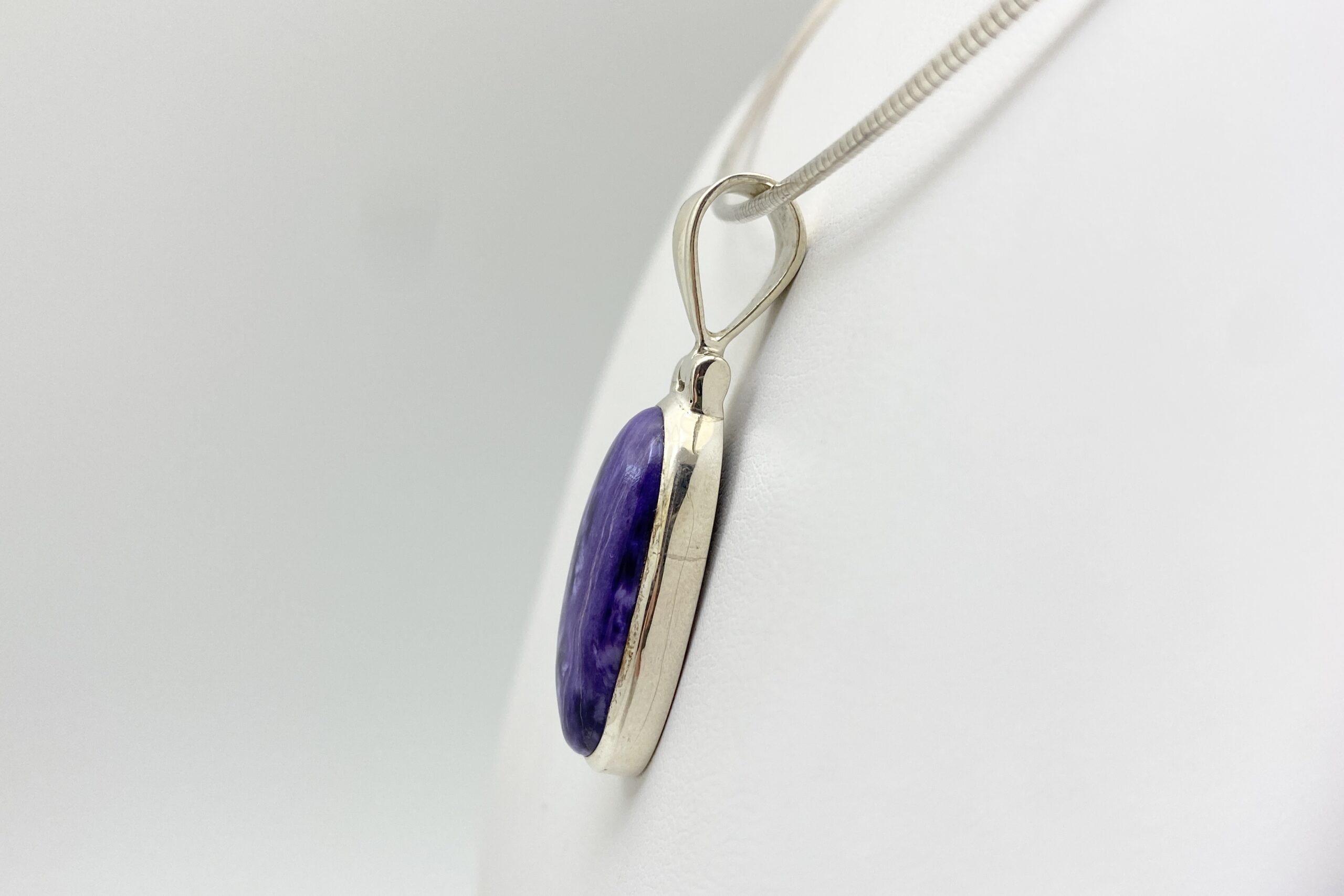 Nádherný unikátní přívěsek s kabošonem překrásného čaroitu se zajímavou přírodní kresbou.
