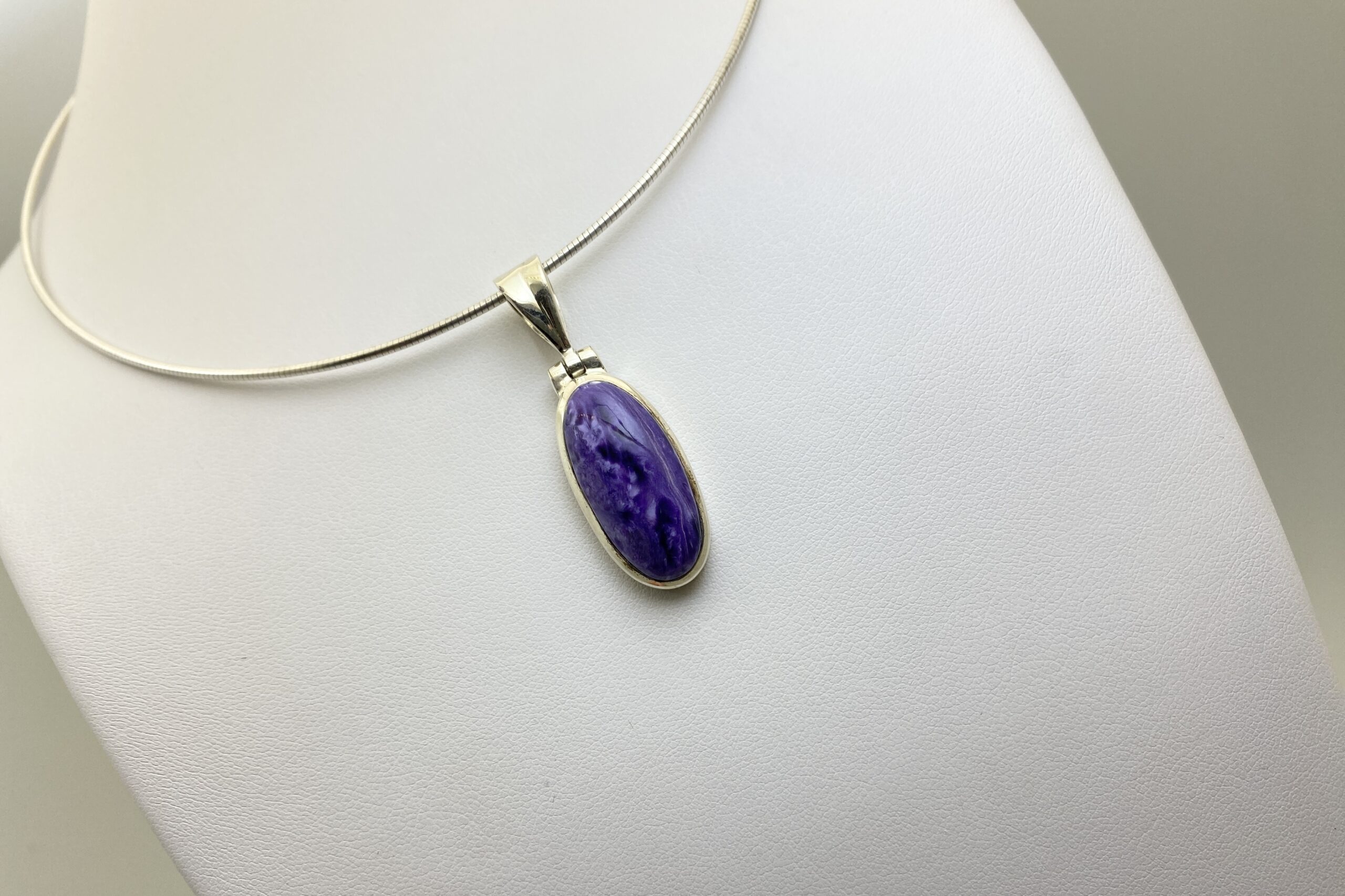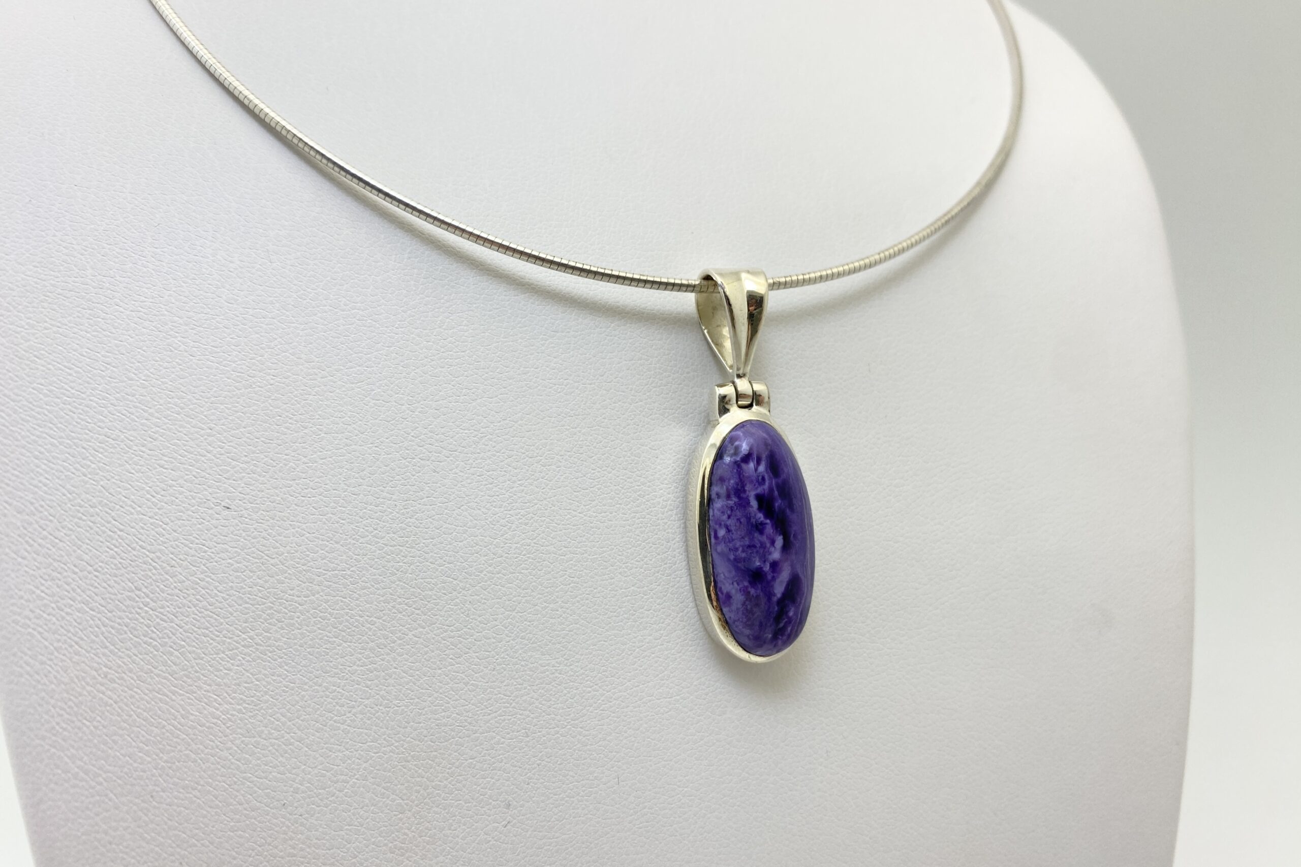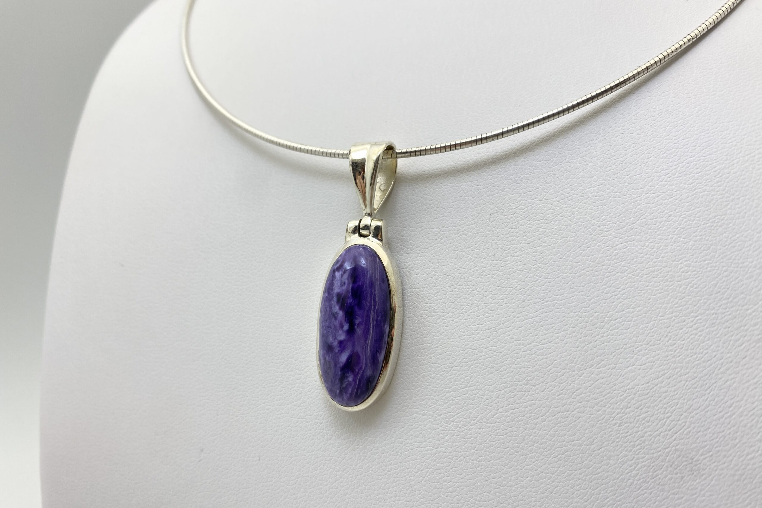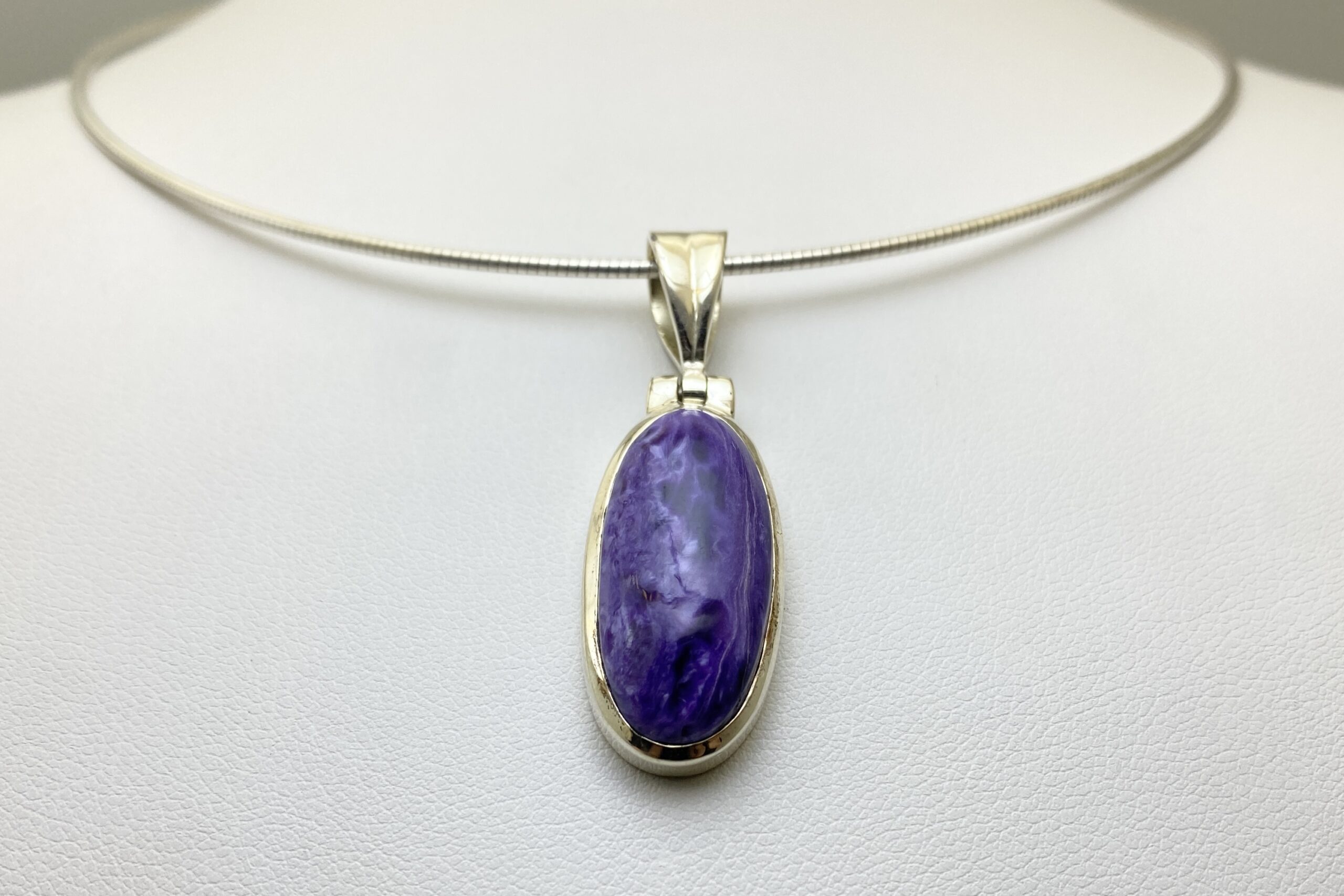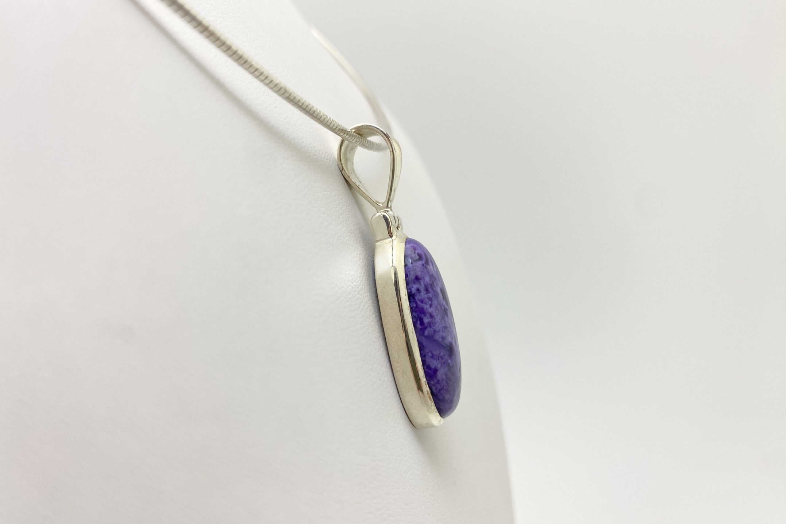 Nádherný unikátní přívěsek s kabošonem překrásného čaroitu se zajímavou přírodní kresbou.