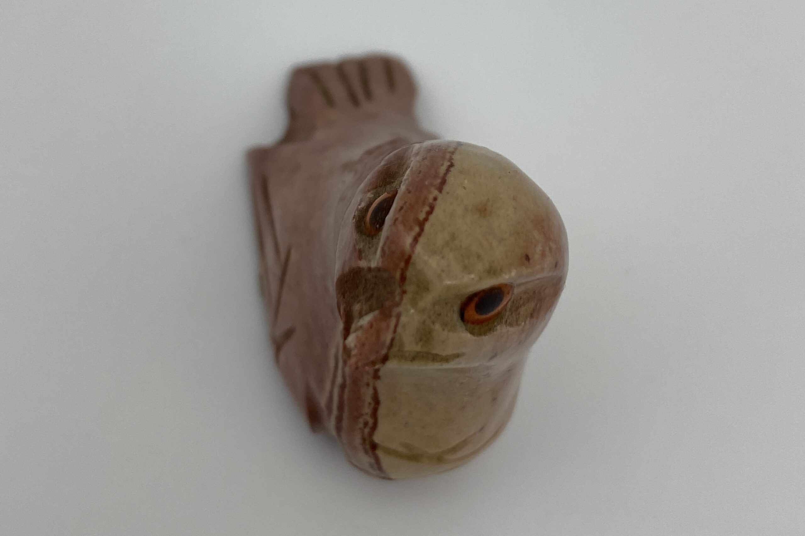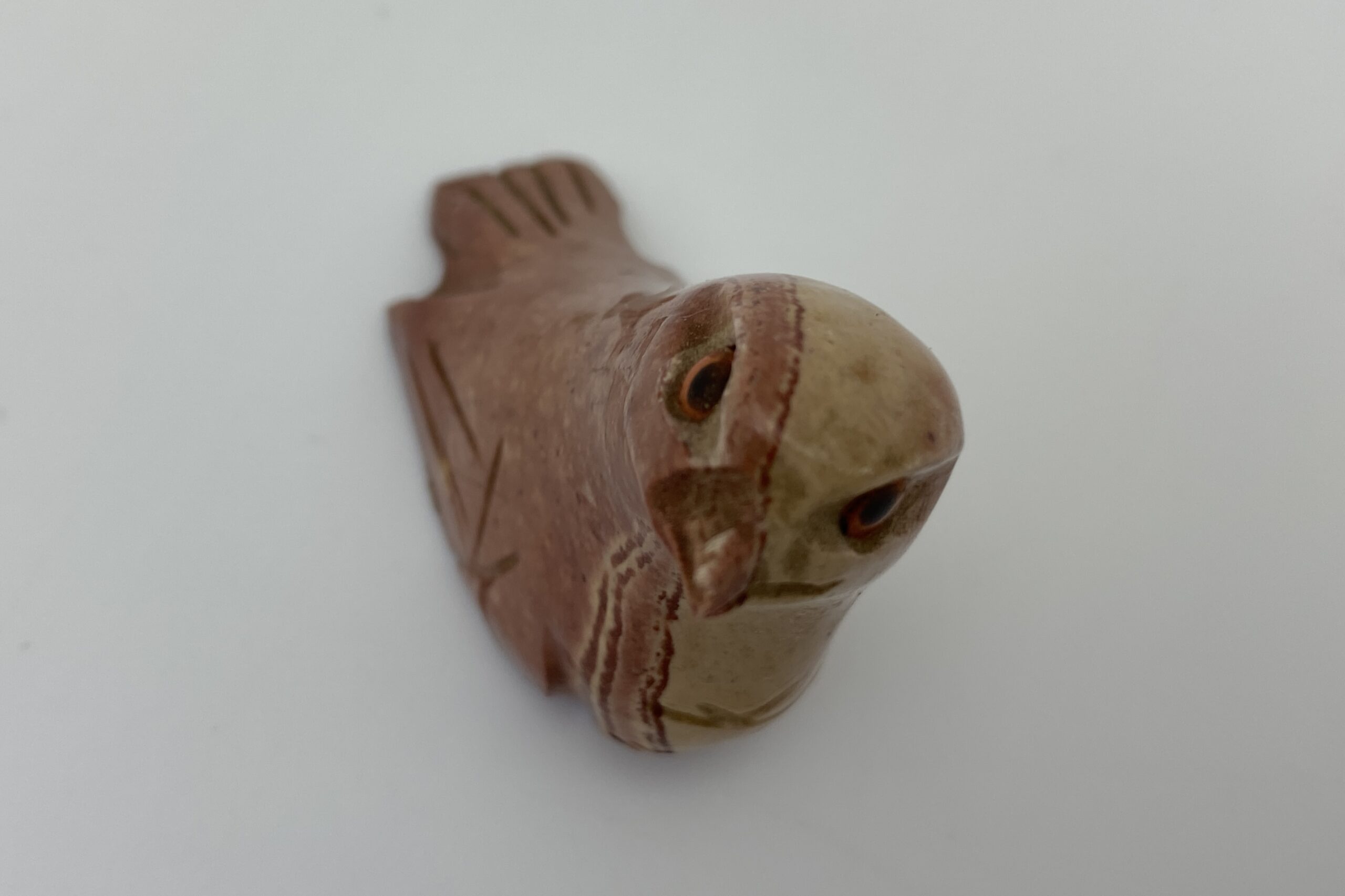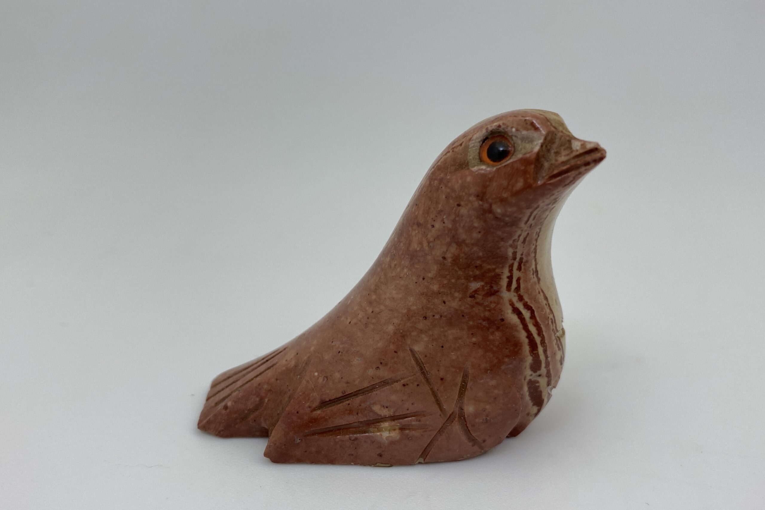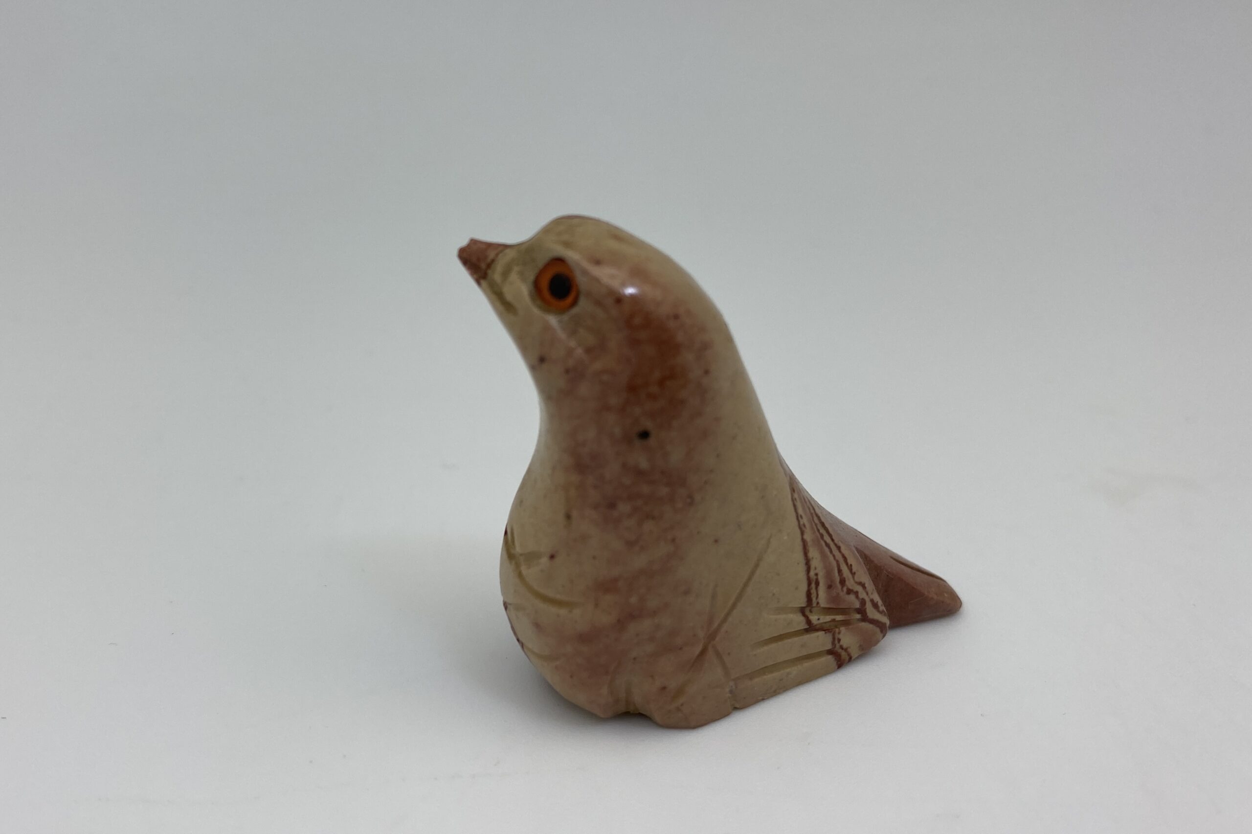 Překrásná soška ptáčka vyřezaná z mastku, o výšce 4 cm, délce 5 cm, šířce 2 cm a váze 37 g.