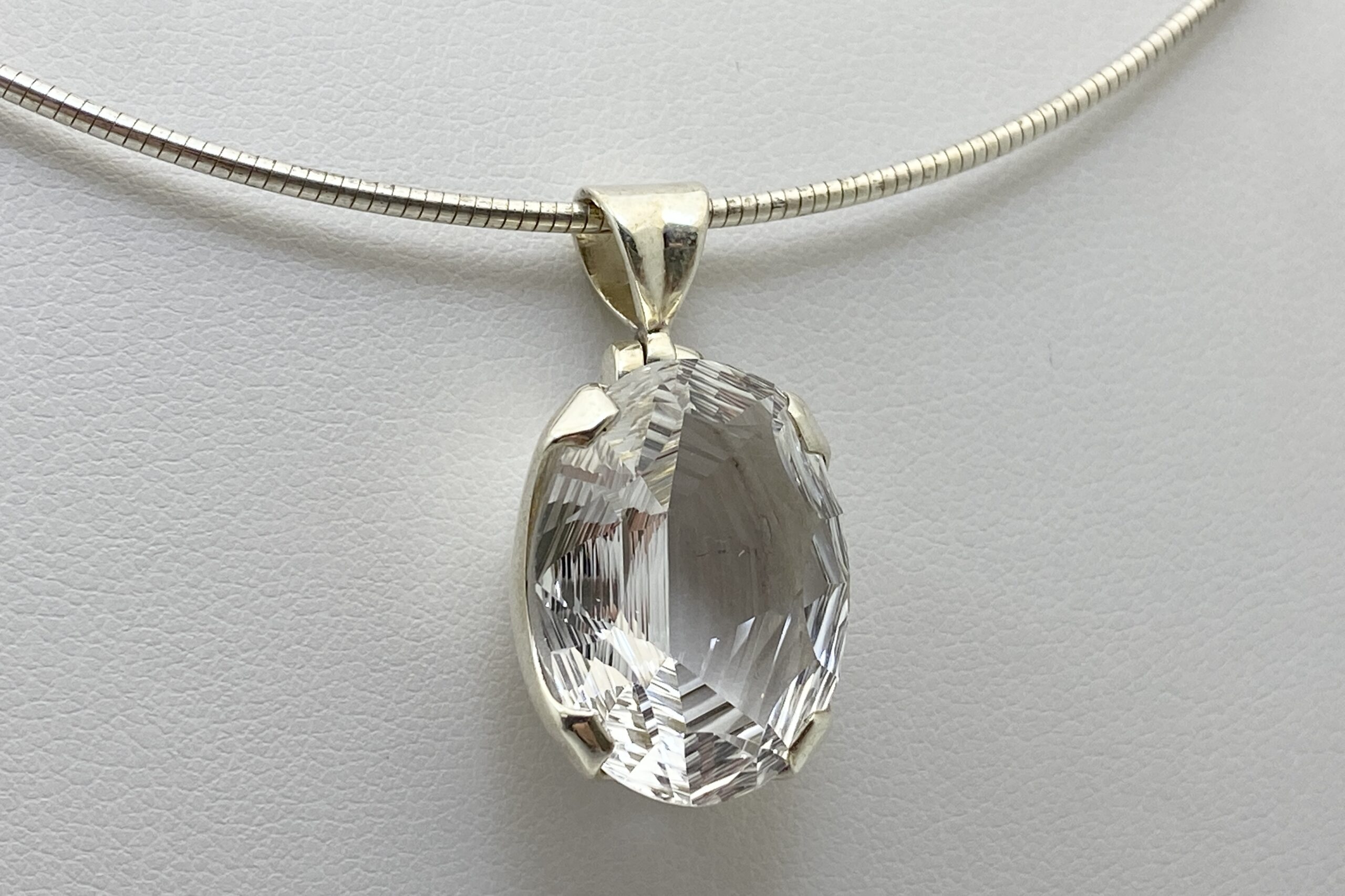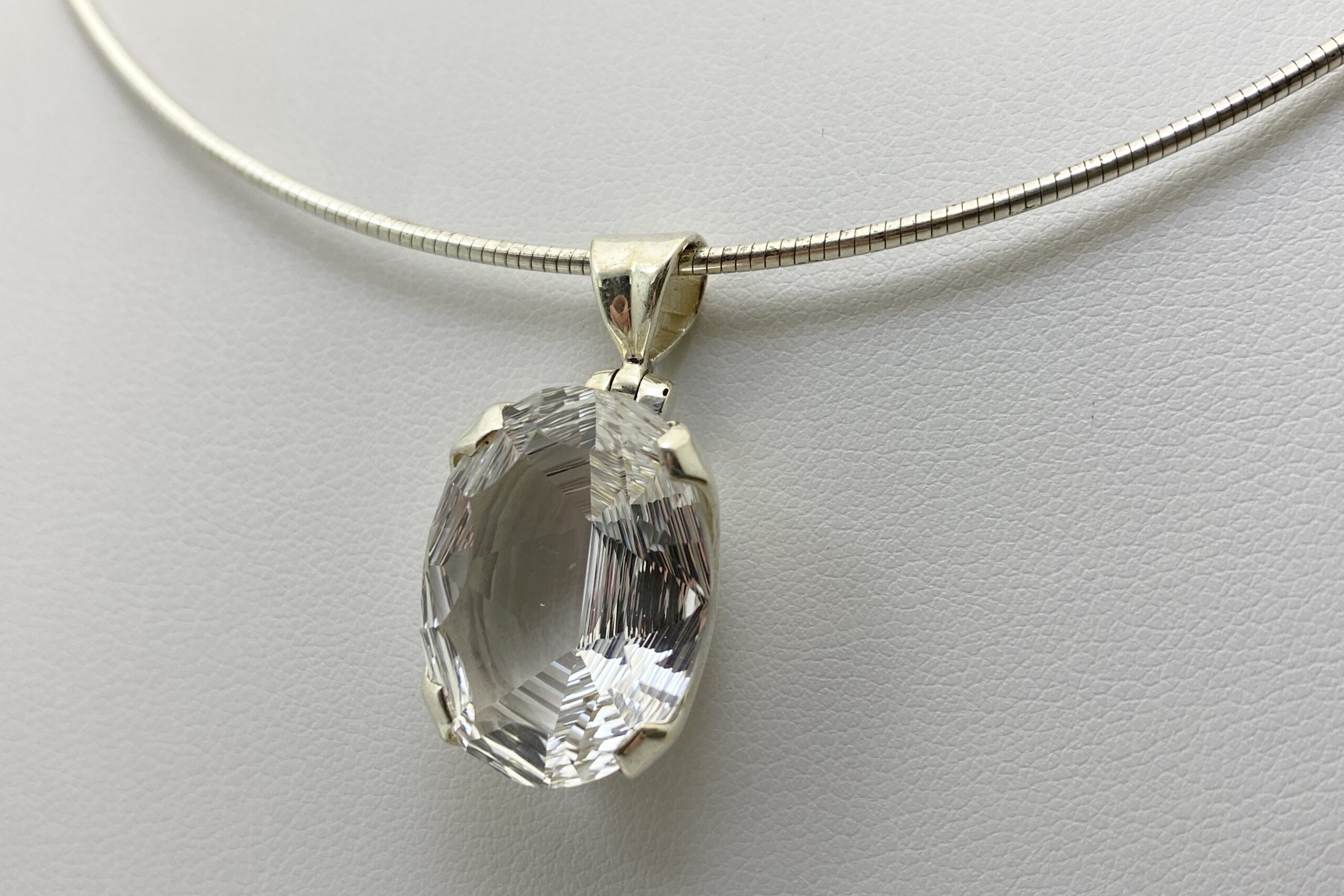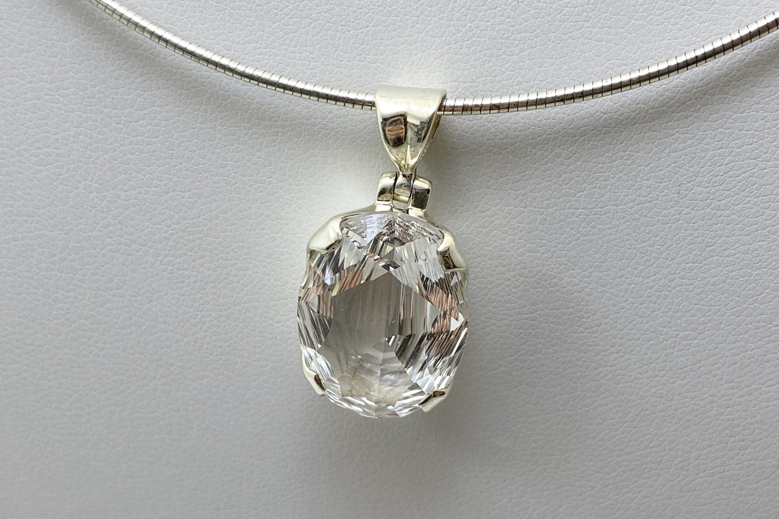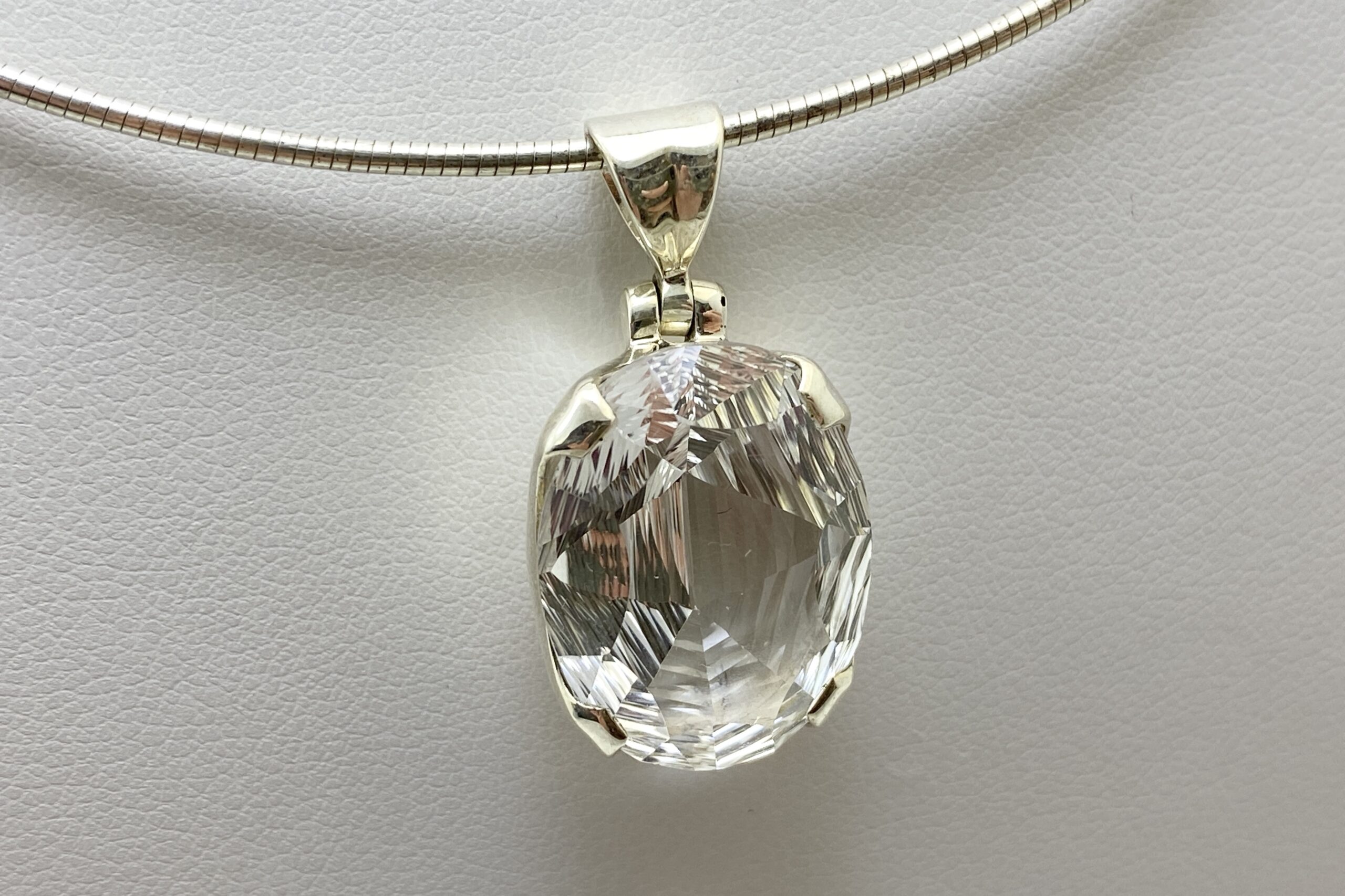 Nádherný přívěsek s překrásně broušeným křišťálem. Rozměry kamene jsou 20 x 15 x 9 mm. Stříbro 925/1000, celková hmotnost 8,1 g.