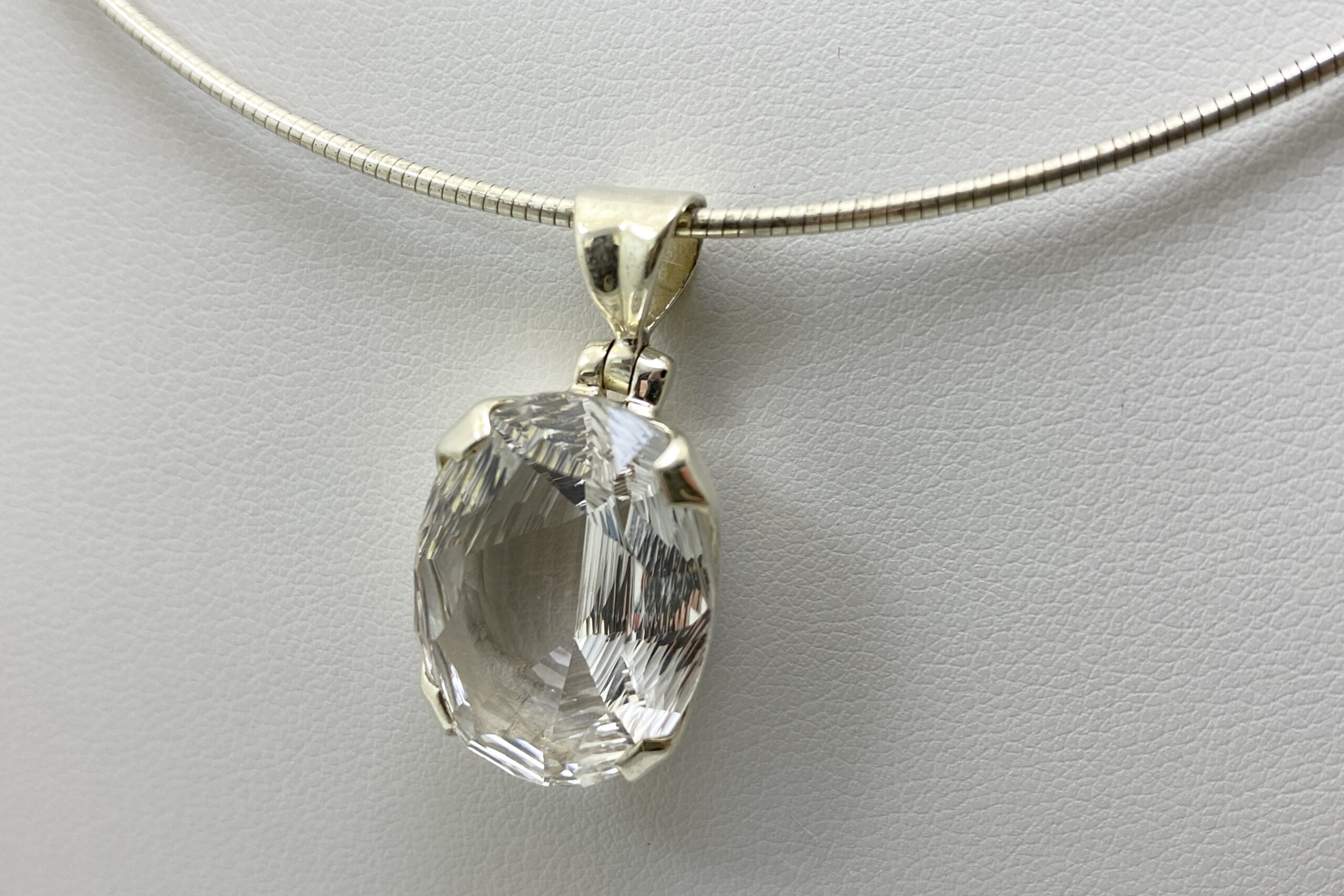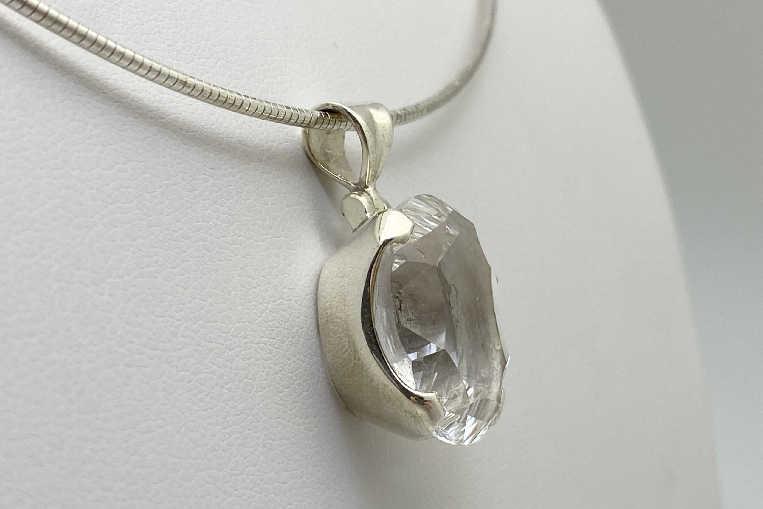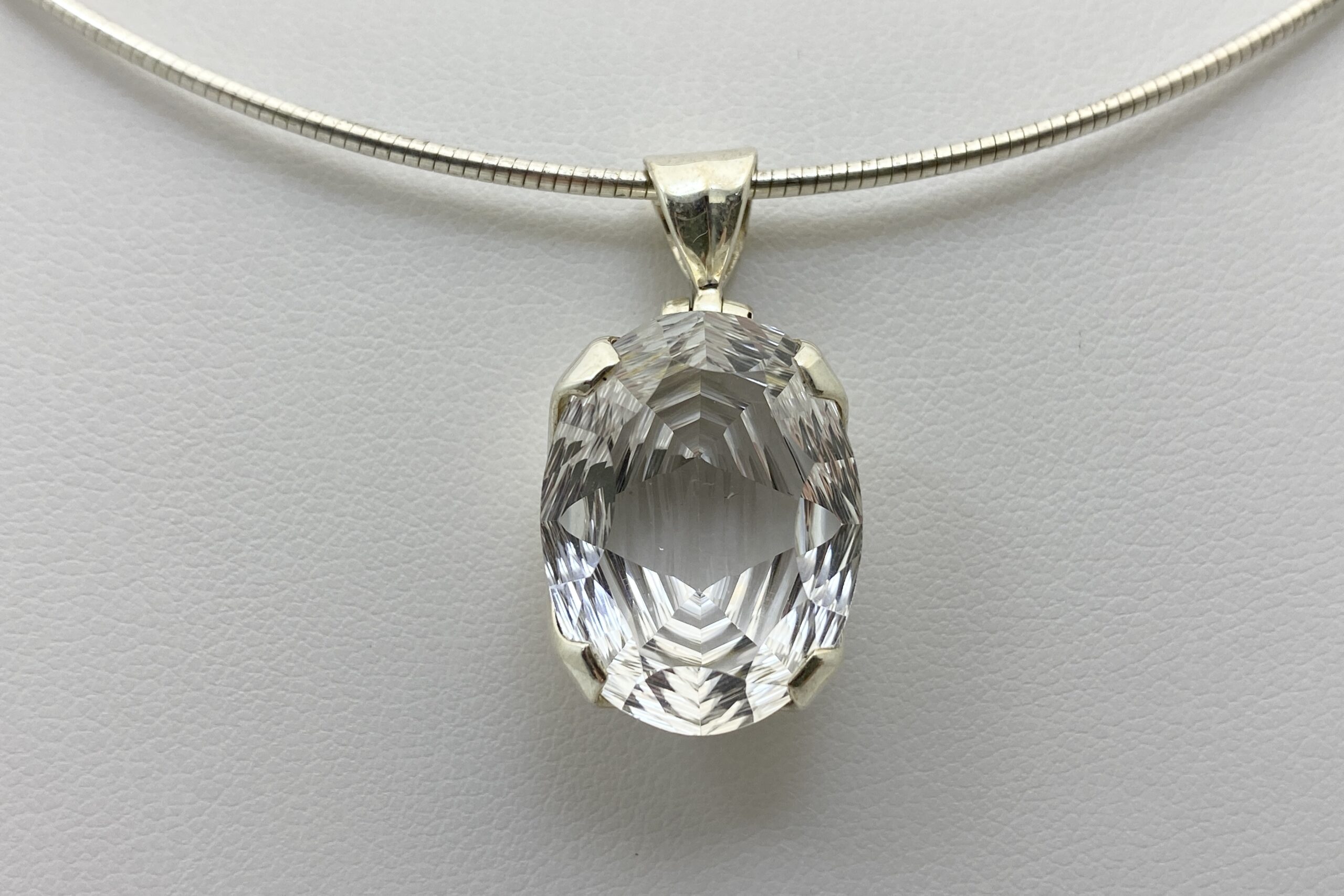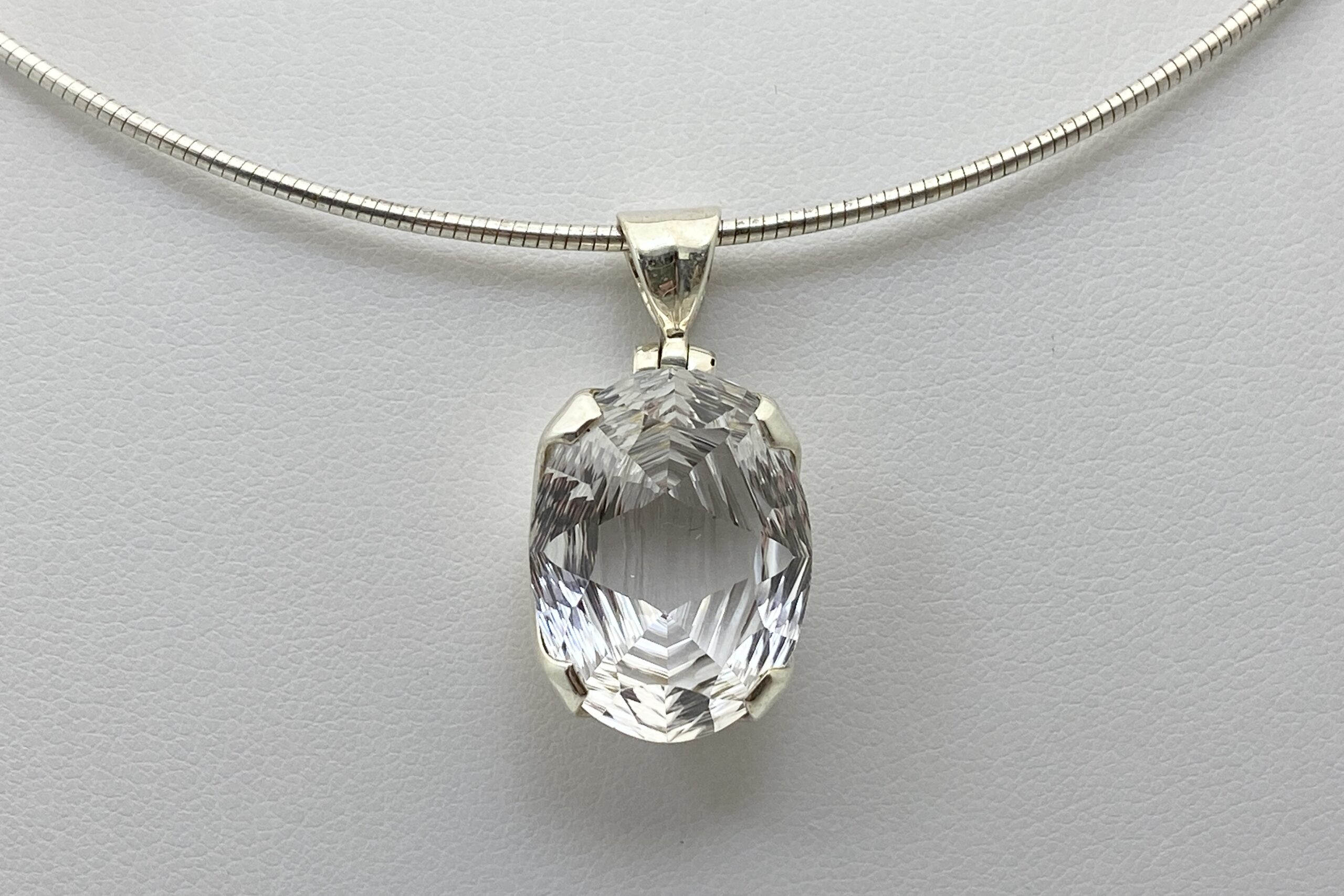 Nádherný přívěsek s překrásně broušeným křišťálem. Rozměry kamene jsou 20 x 15 x 9 mm. Stříbro 925/1000, celková hmotnost 8,1 g.