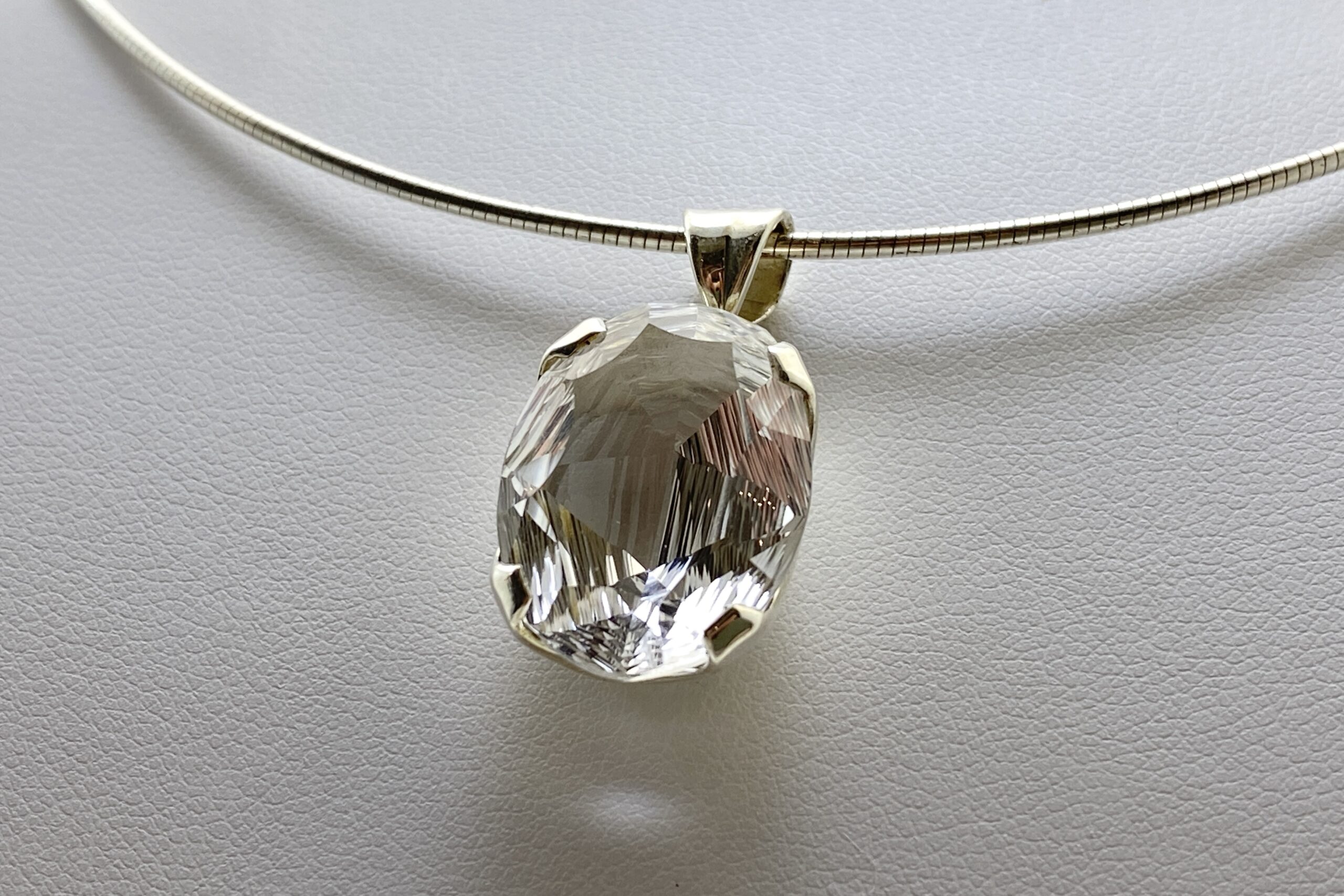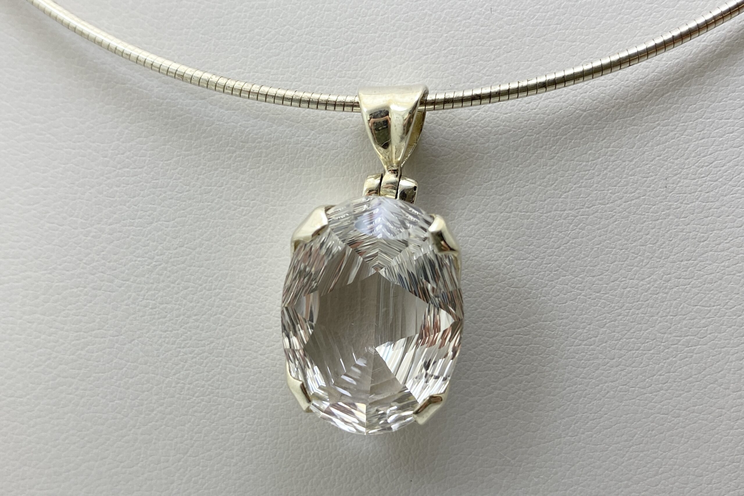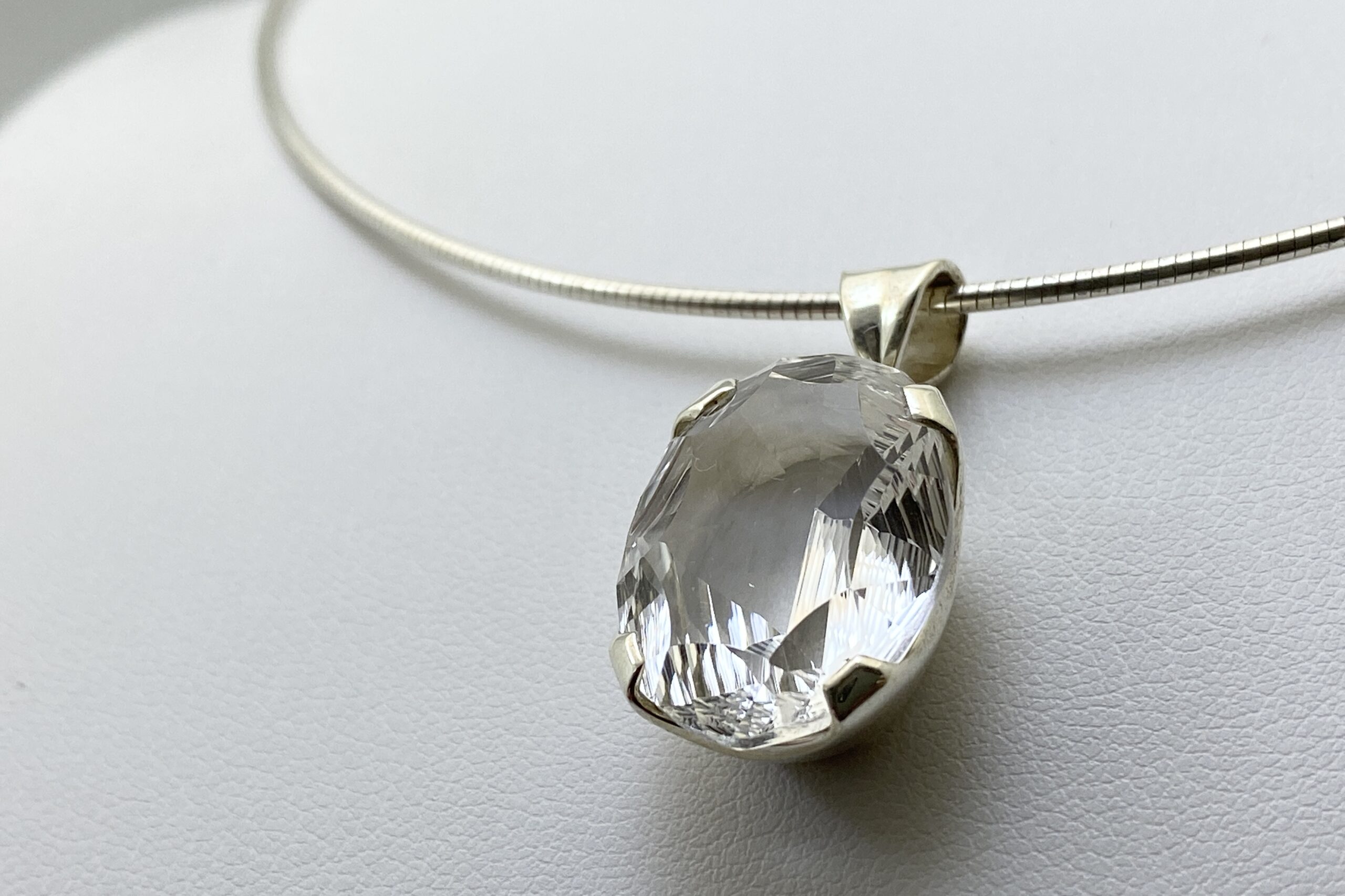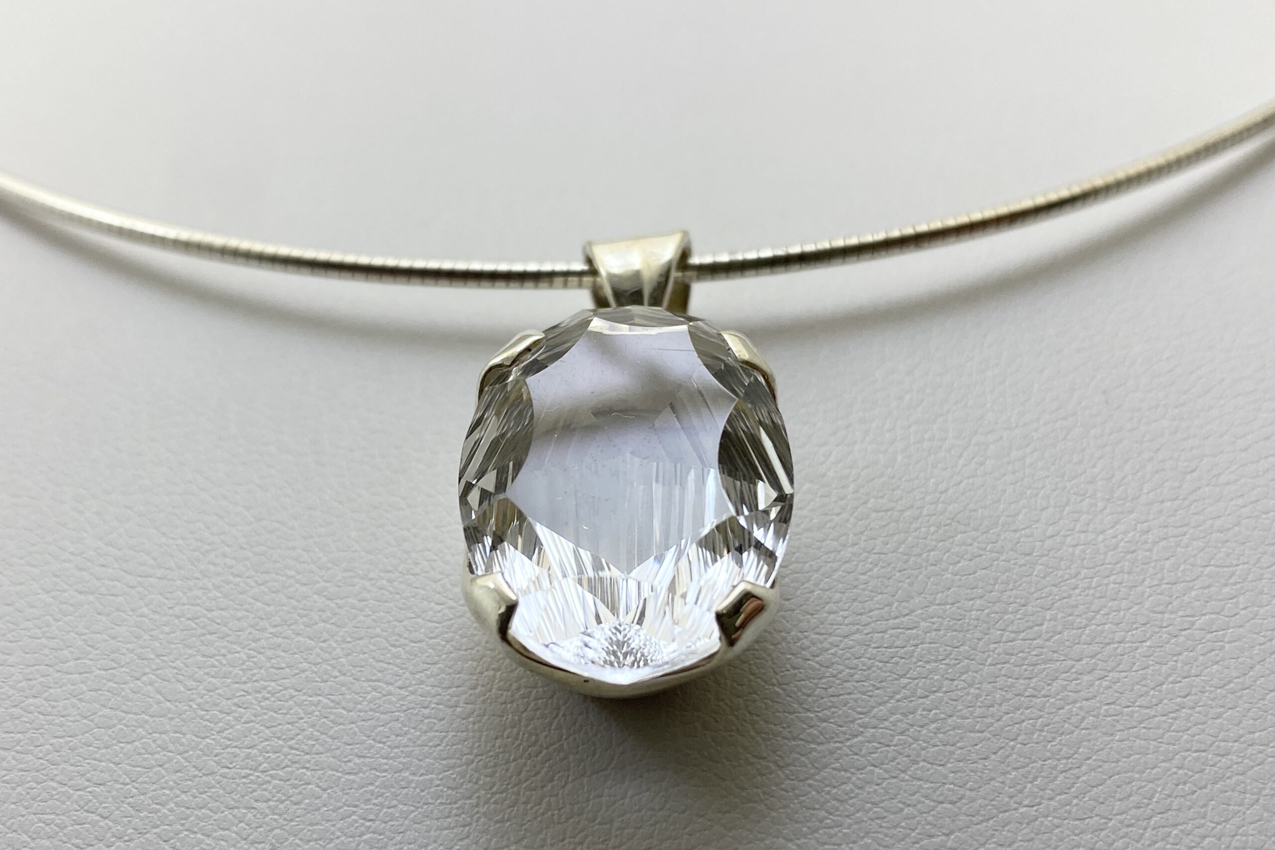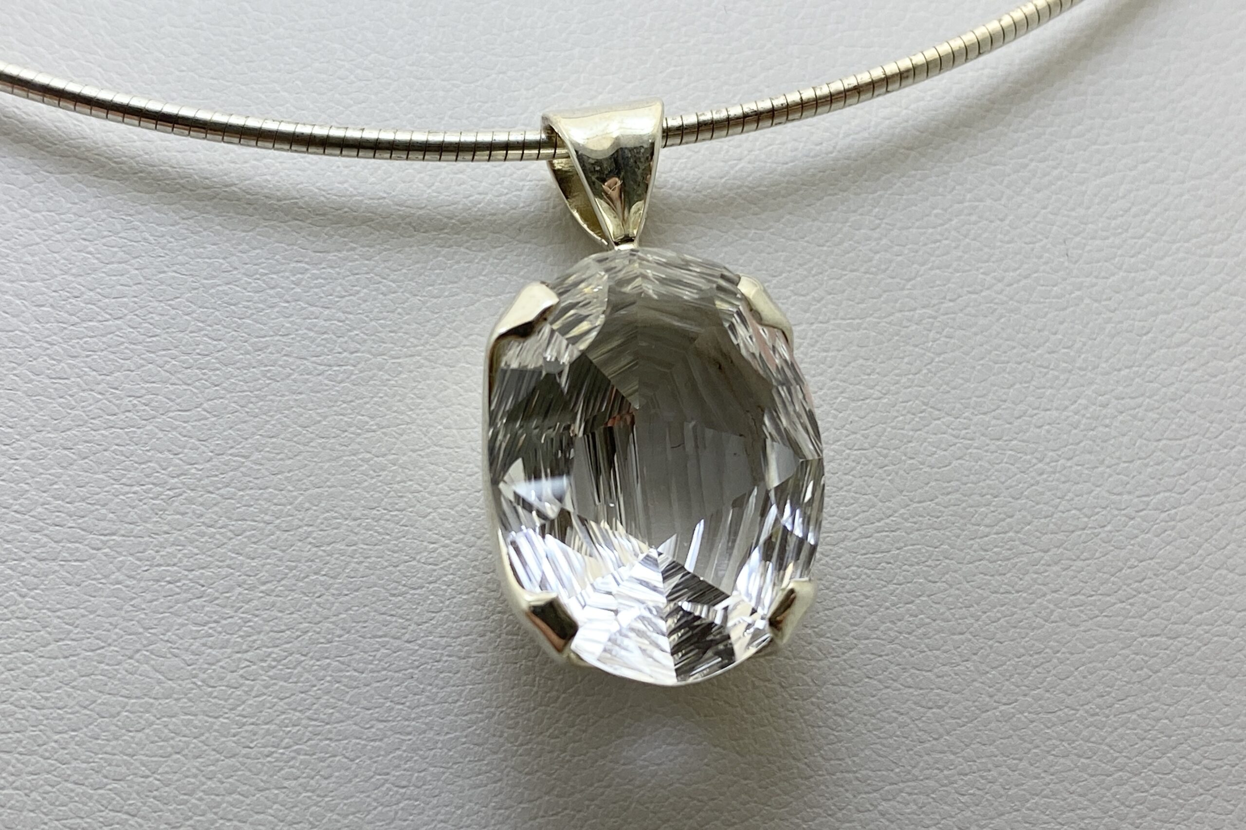 Nádherný přívěsek s překrásně broušeným křišťálem. Rozměry kamene jsou 20 x 15 x 9 mm. Stříbro 925/1000, celková hmotnost 8,1 g.