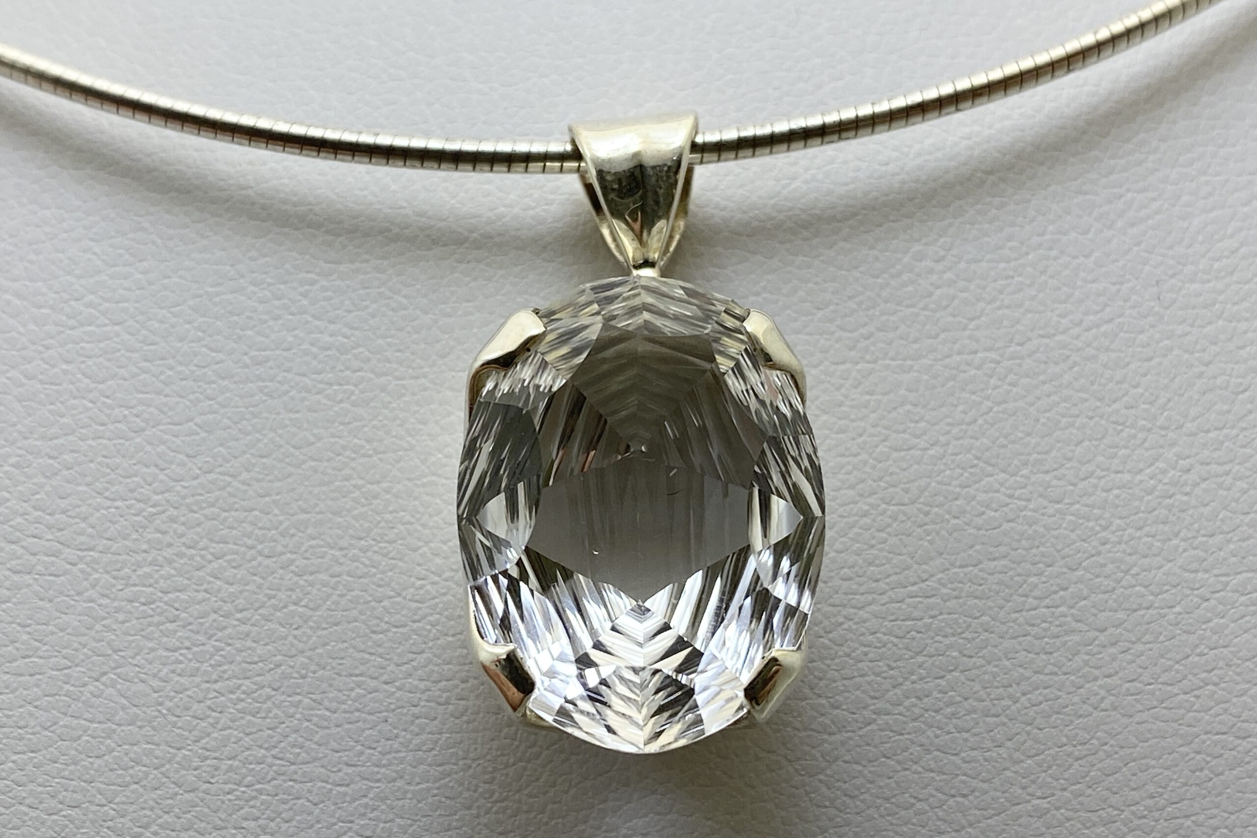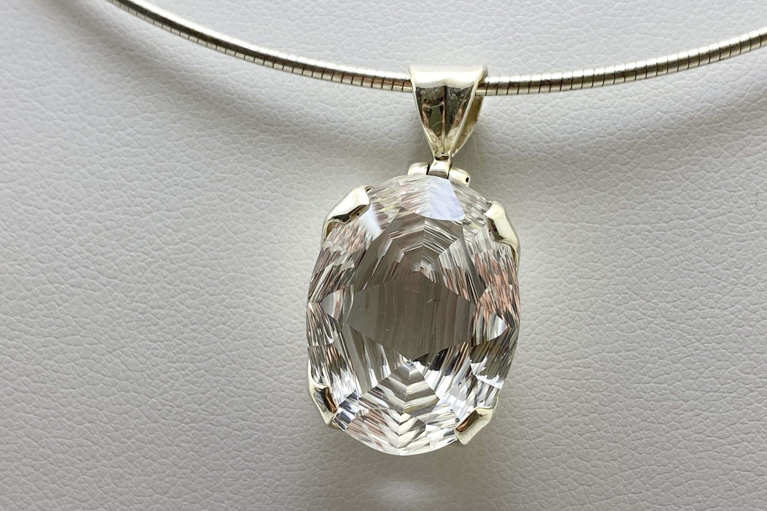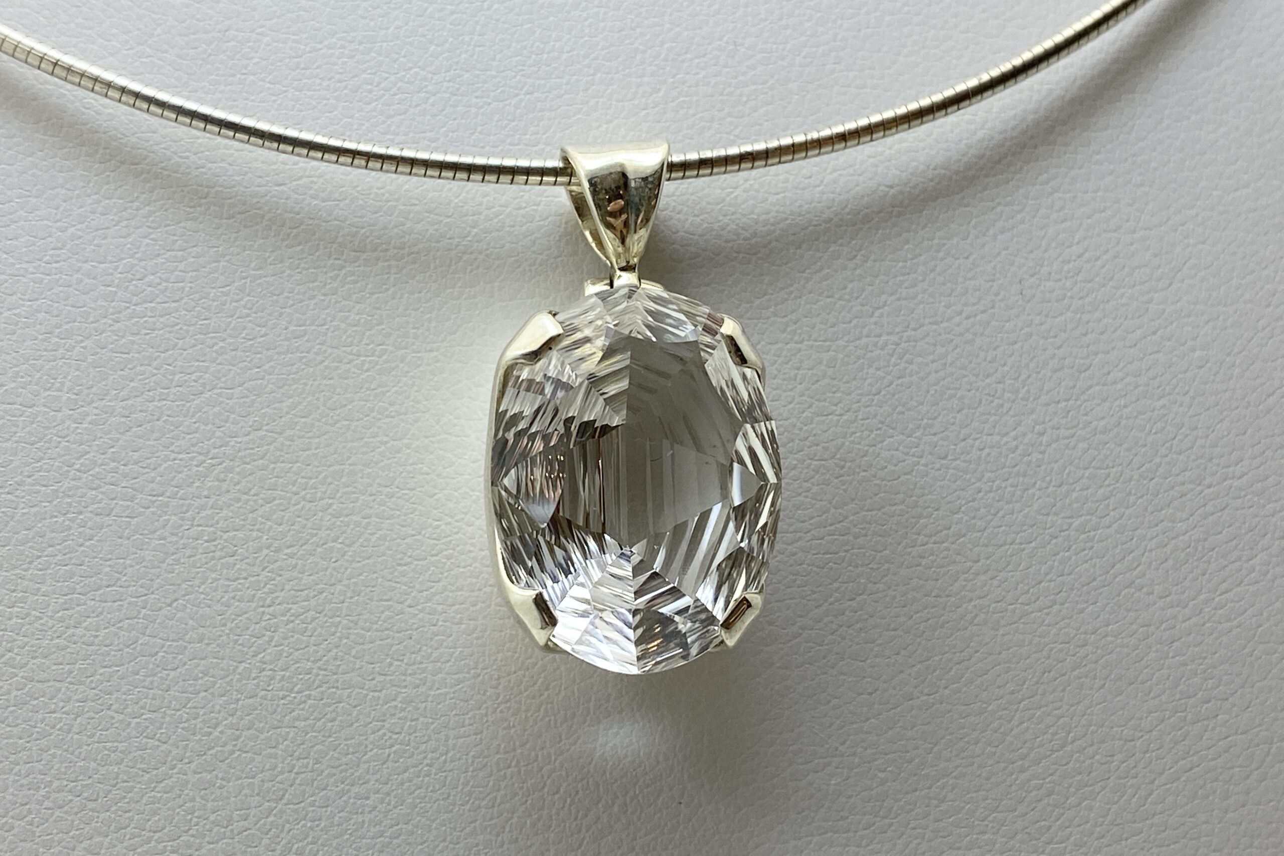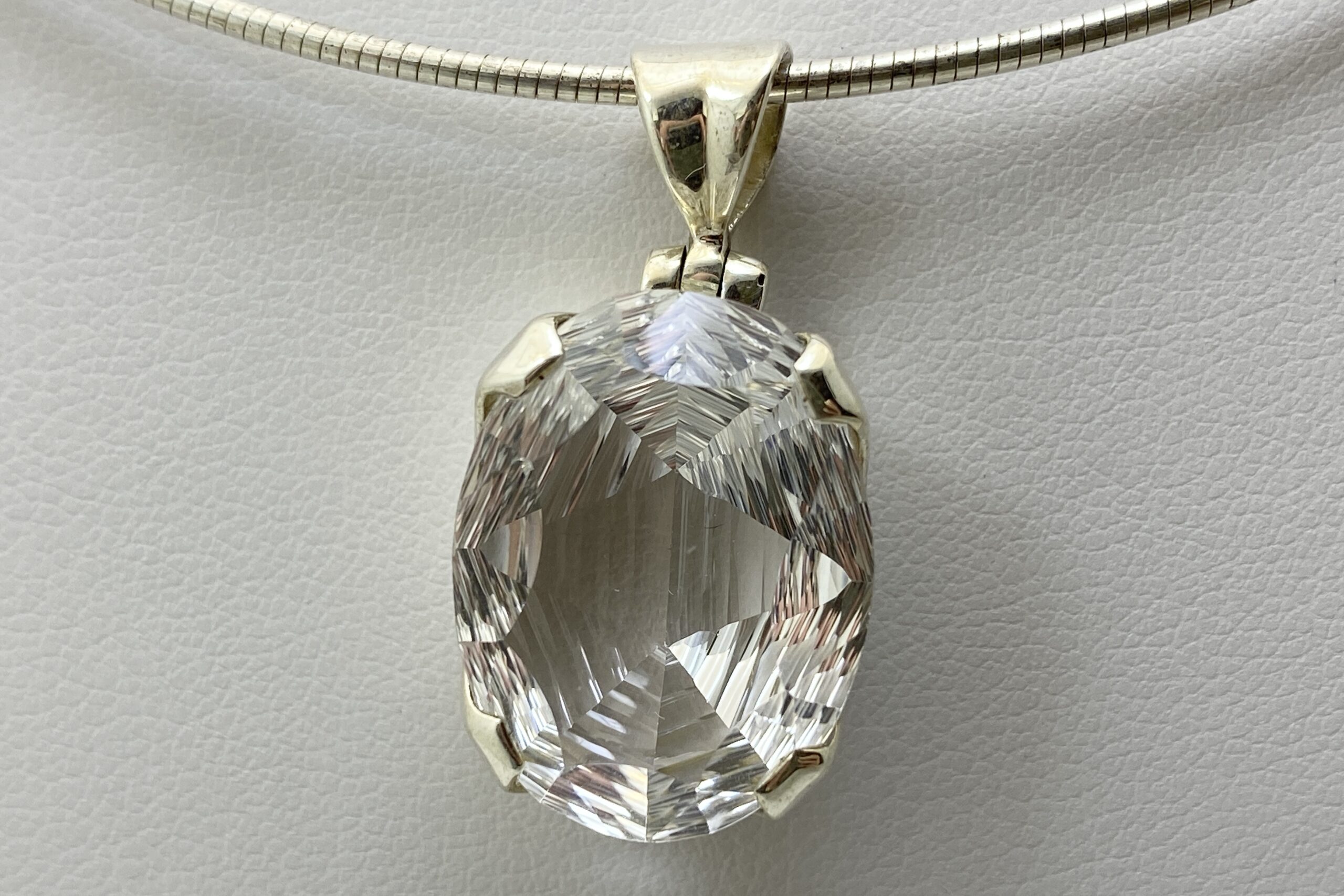 Nádherný přívěsek s překrásně broušeným křišťálem. Rozměry kamene jsou 20 x 15 x 9 mm. Stříbro 925/1000, celková hmotnost 8,1 g.