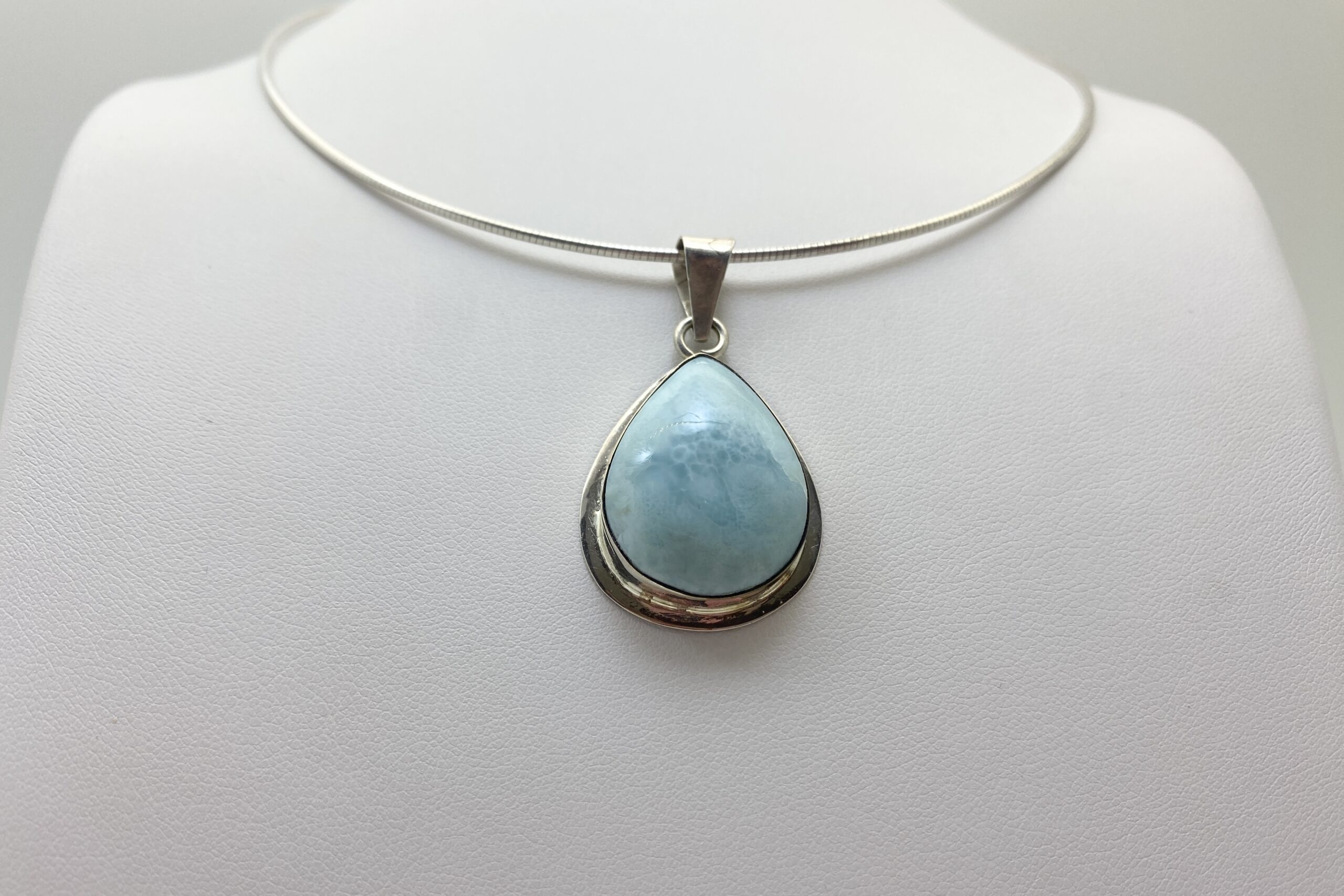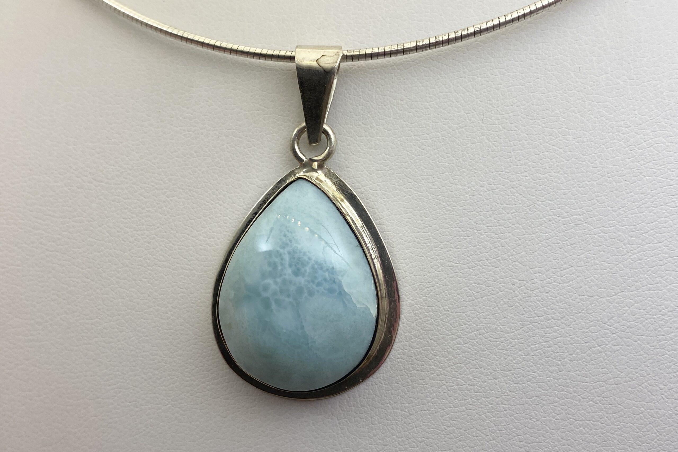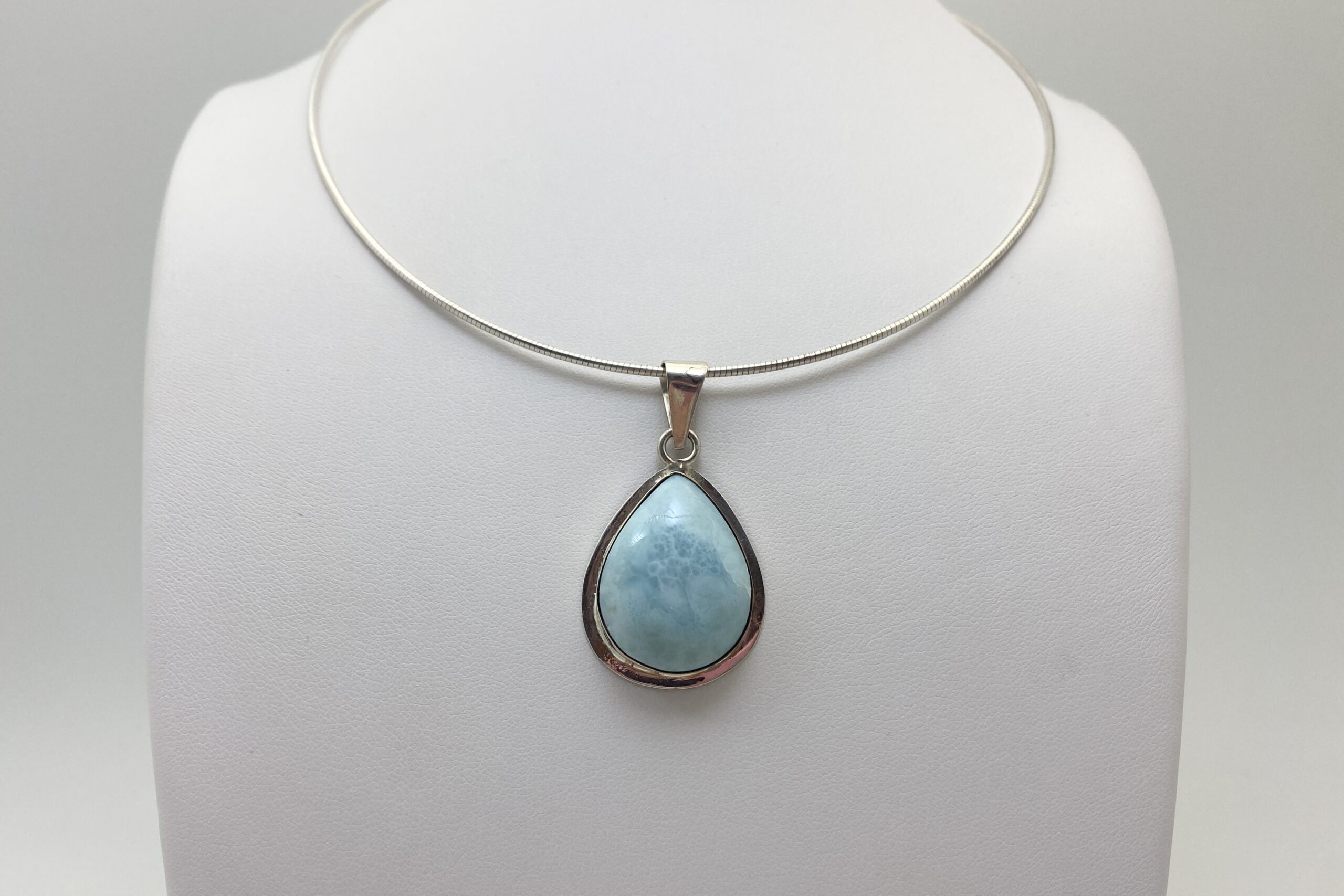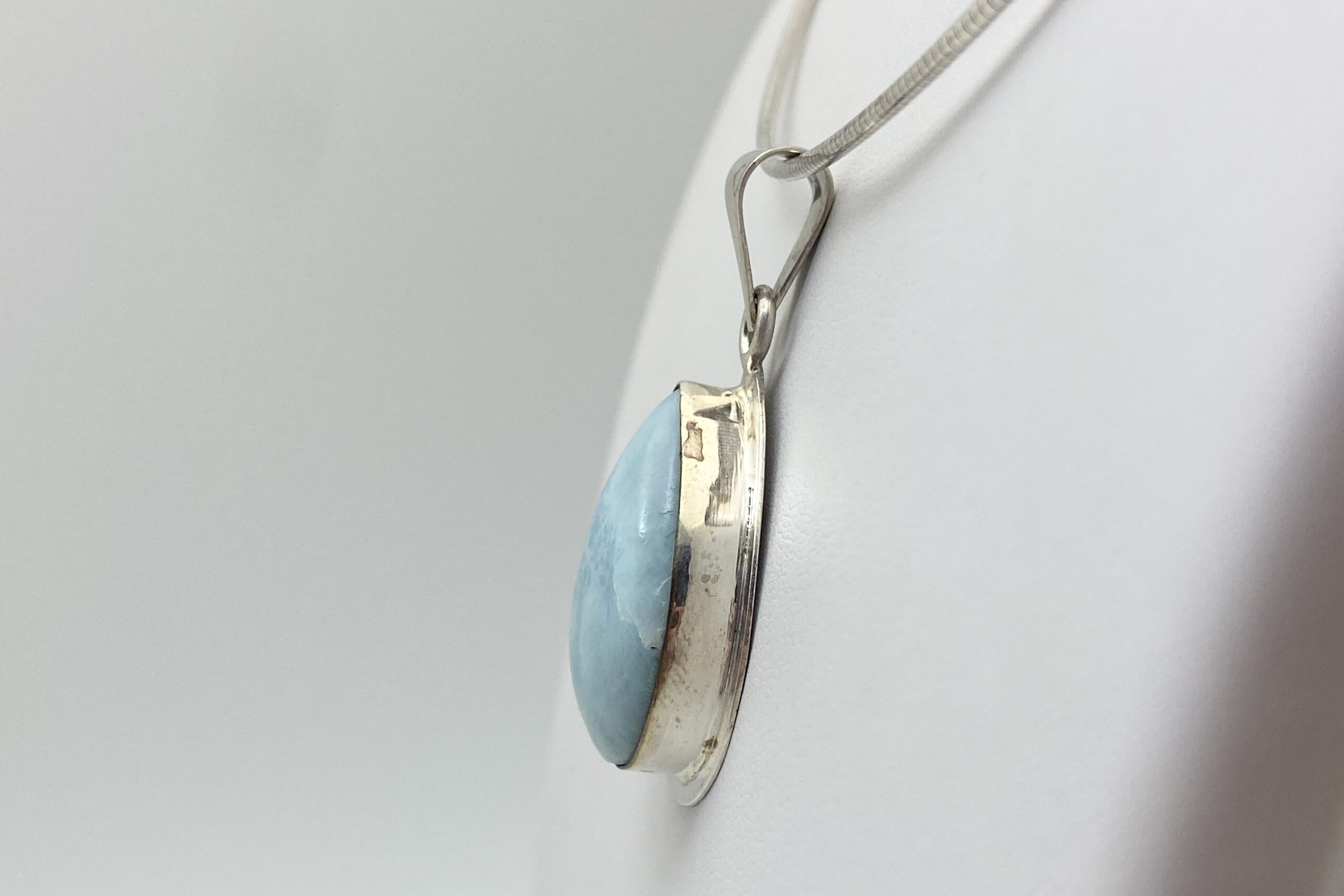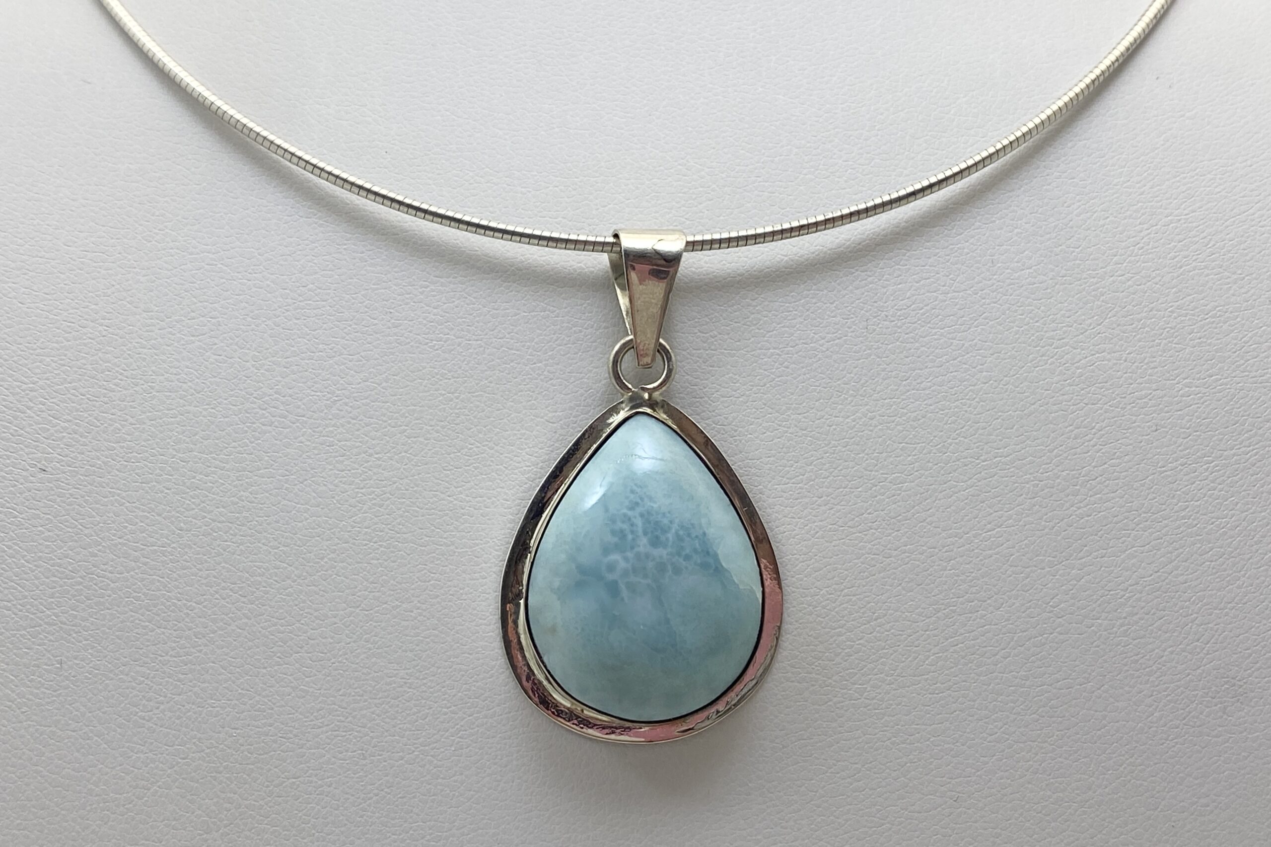 Unikátní přívěsek s překrásným kabošonem z nebesky modrého larimaru z Dominikánské republiky.