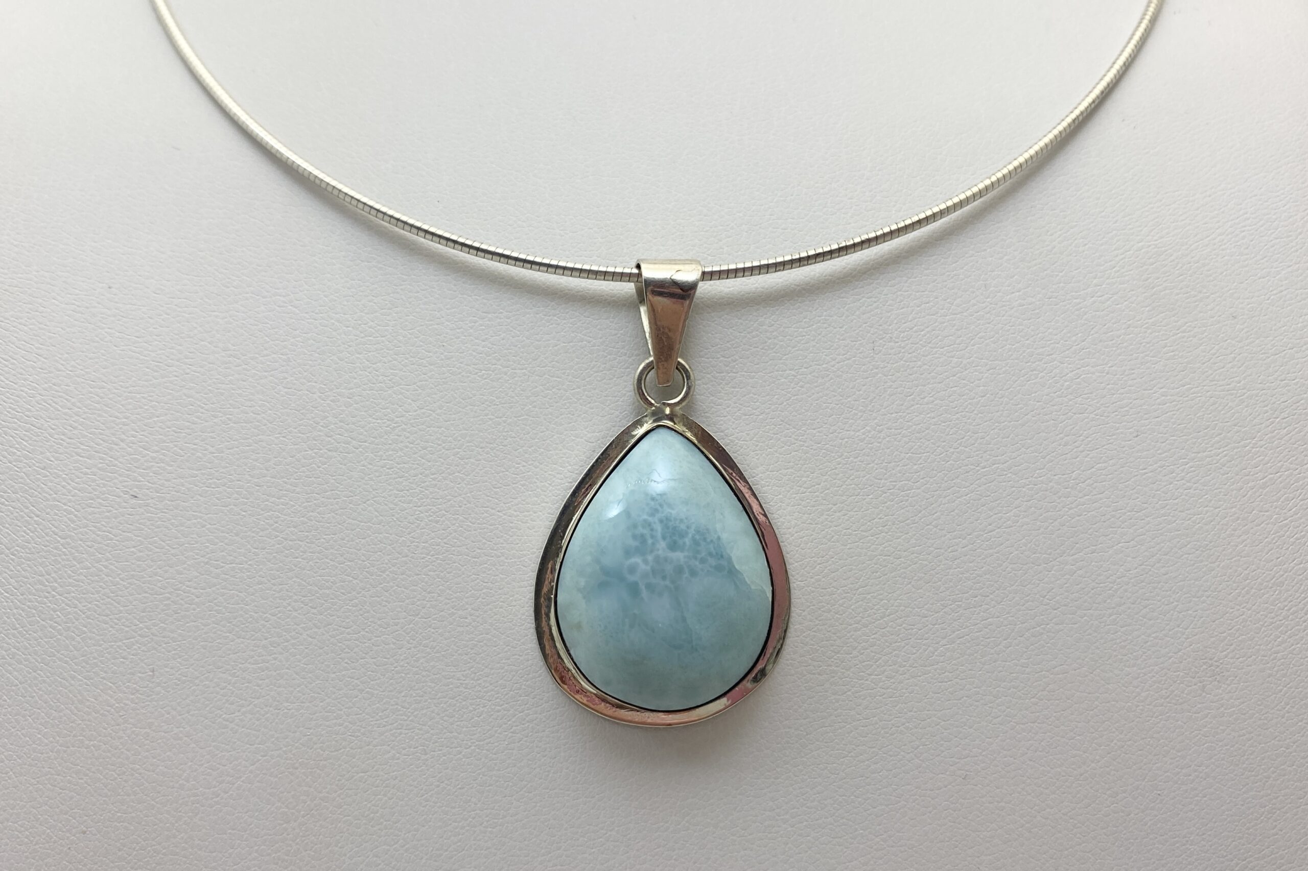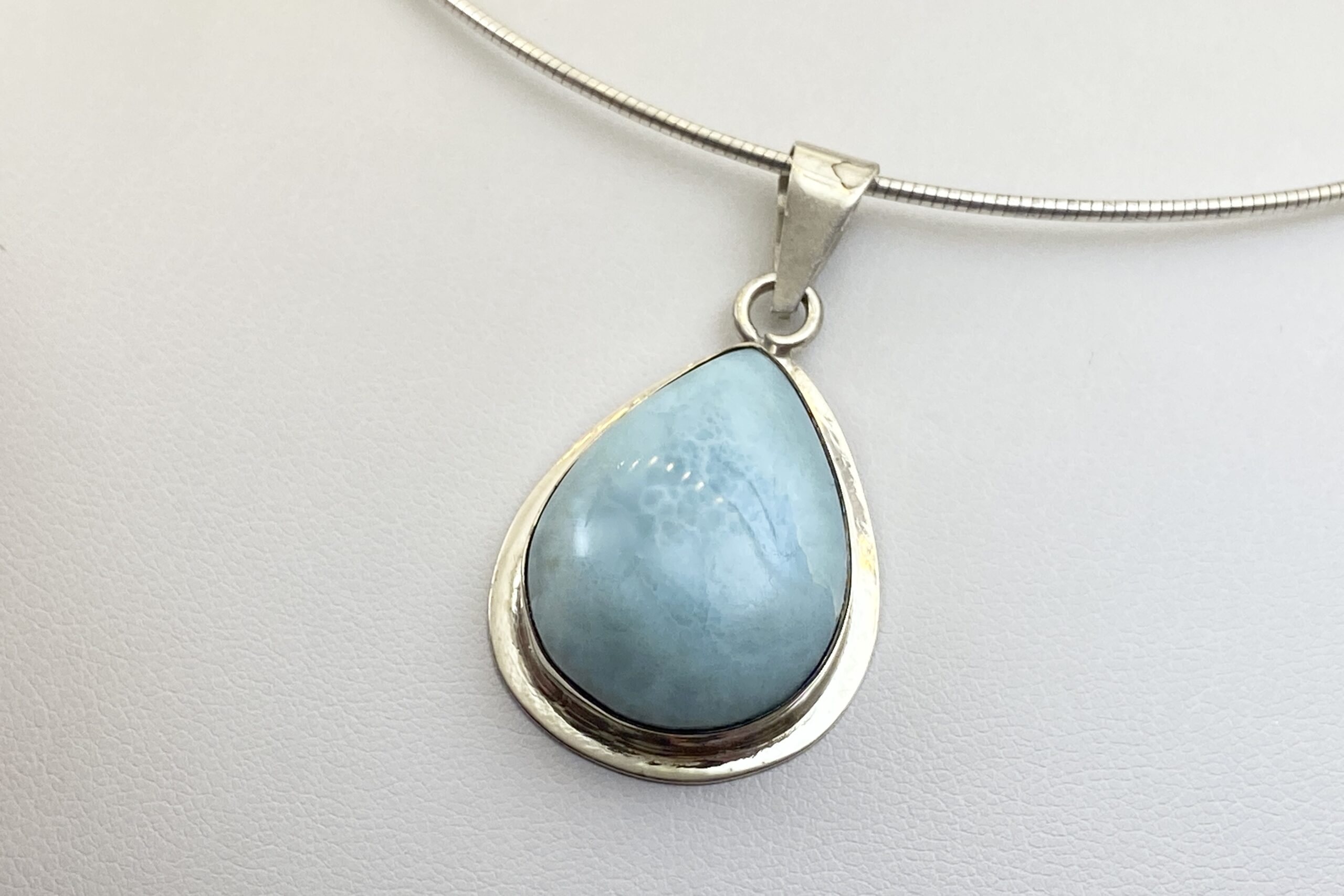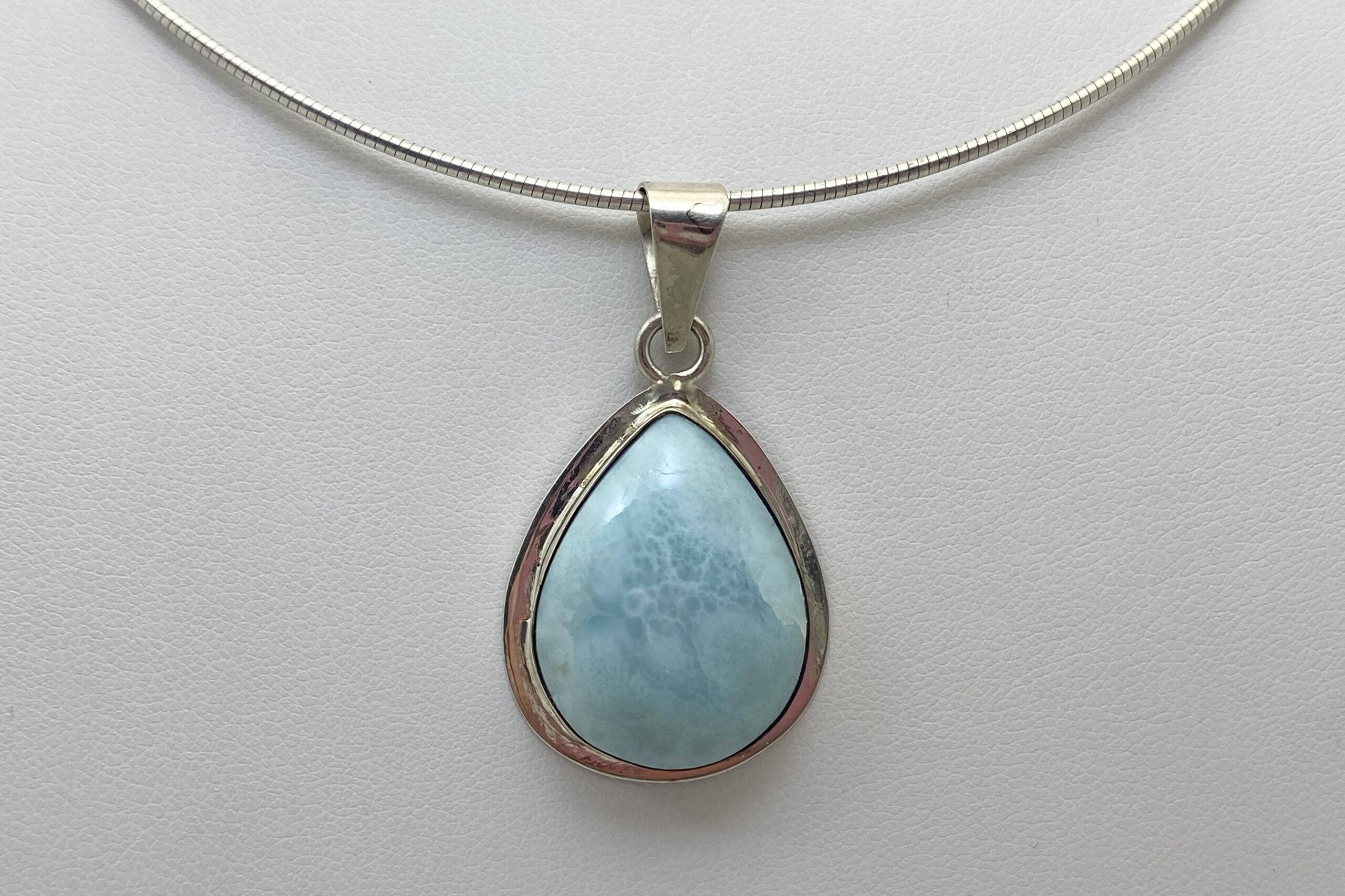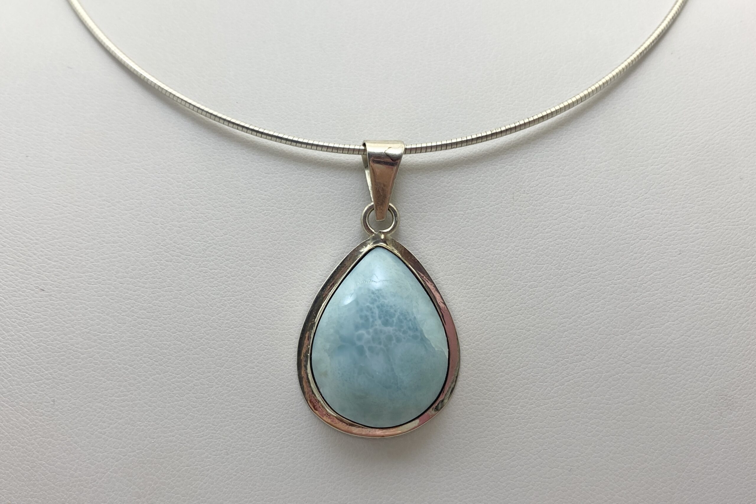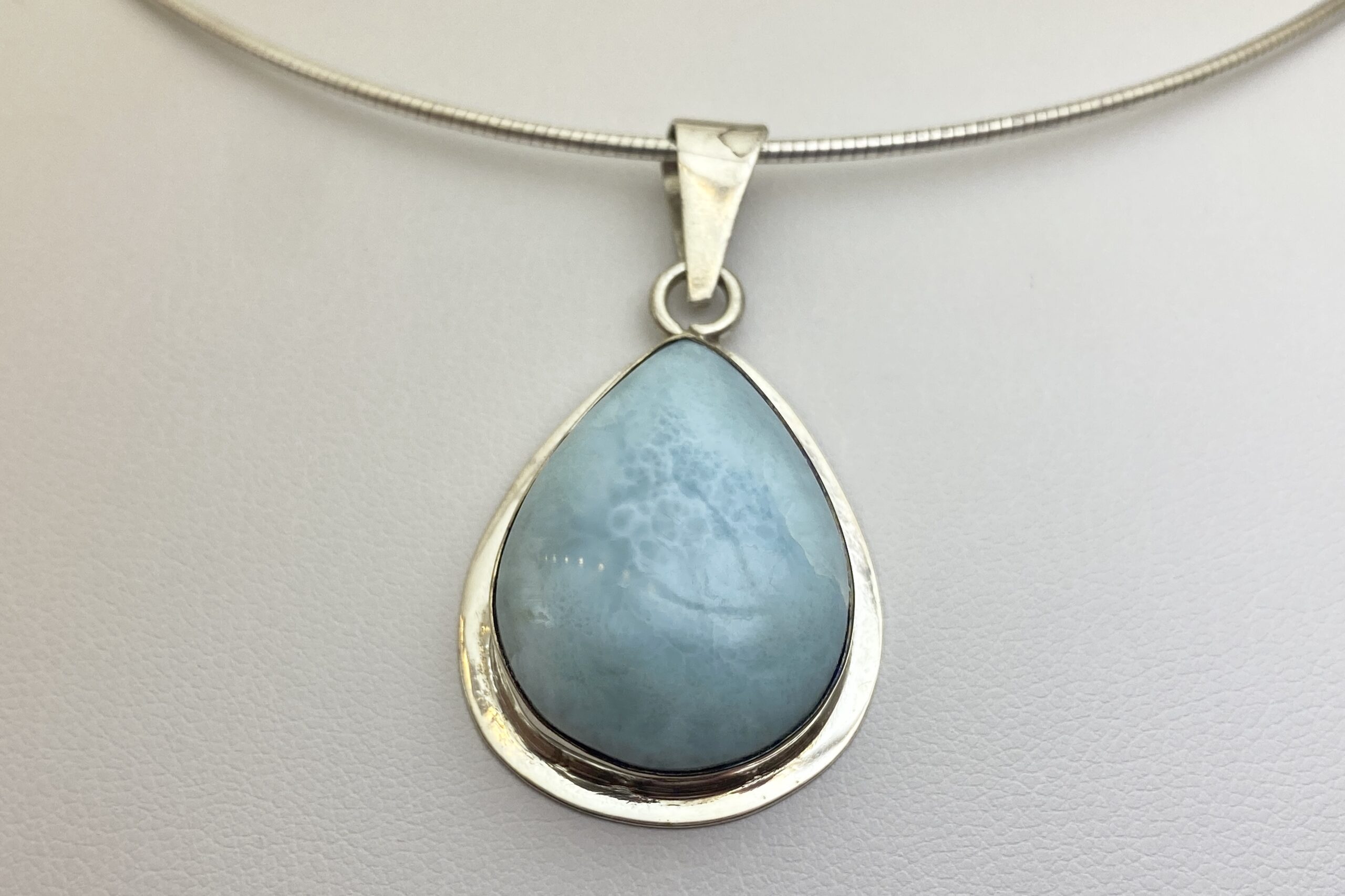 Unikátní přívěsek s překrásným kabošonem z nebesky modrého larimaru z Dominikánské republiky.