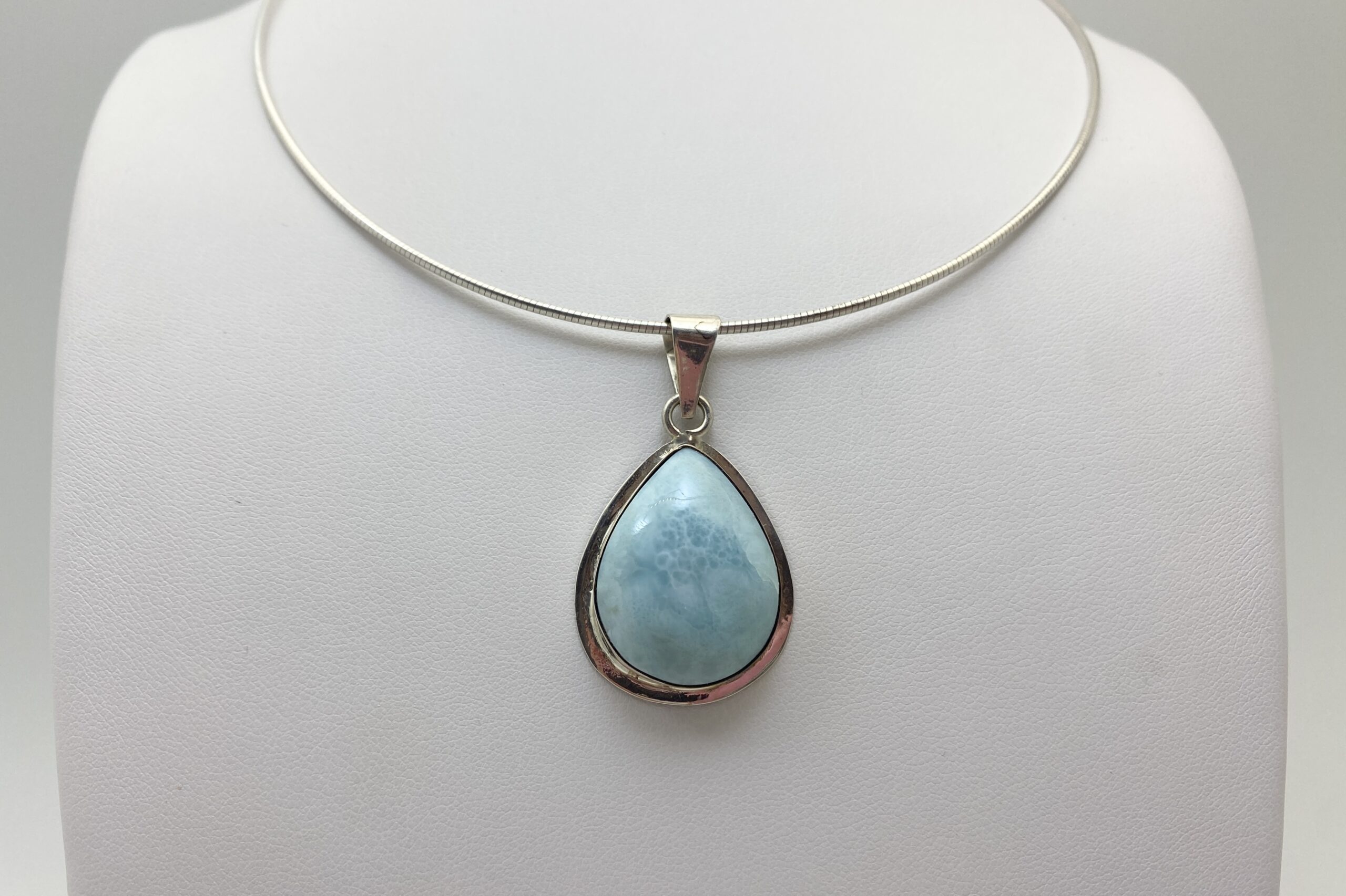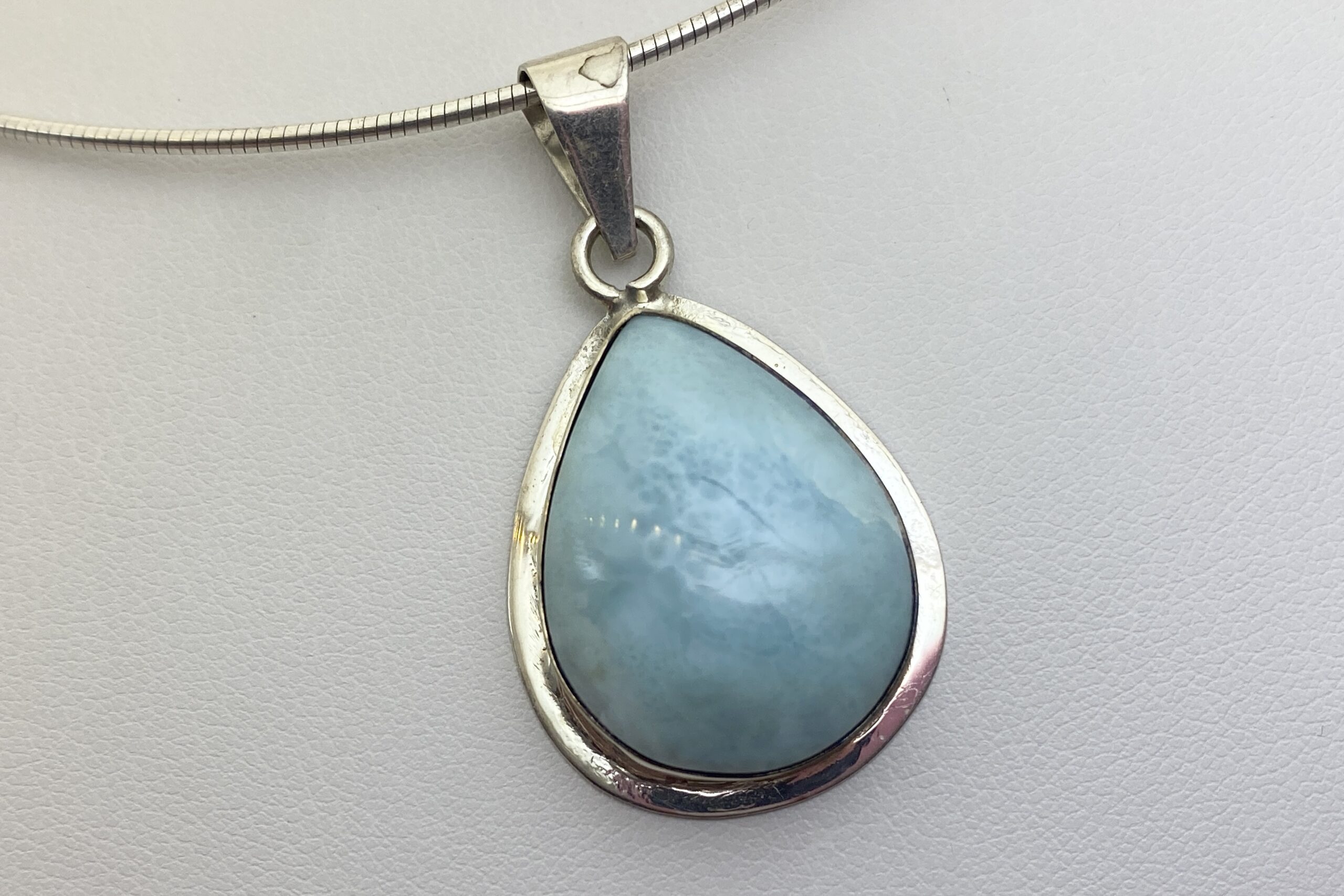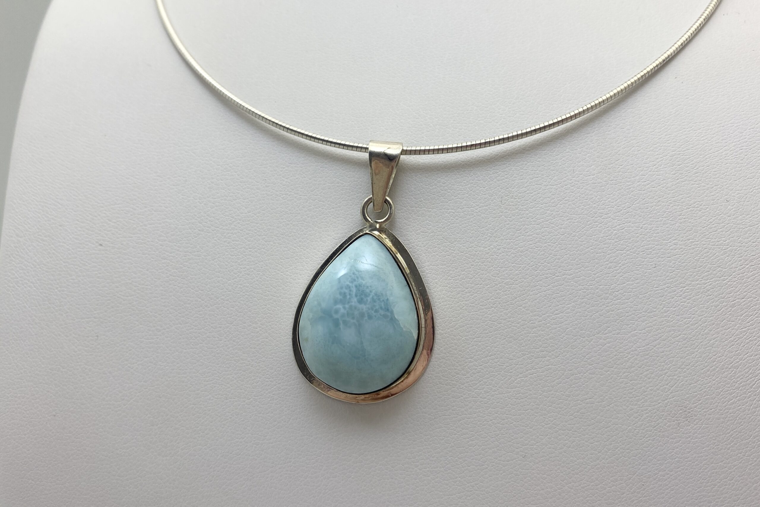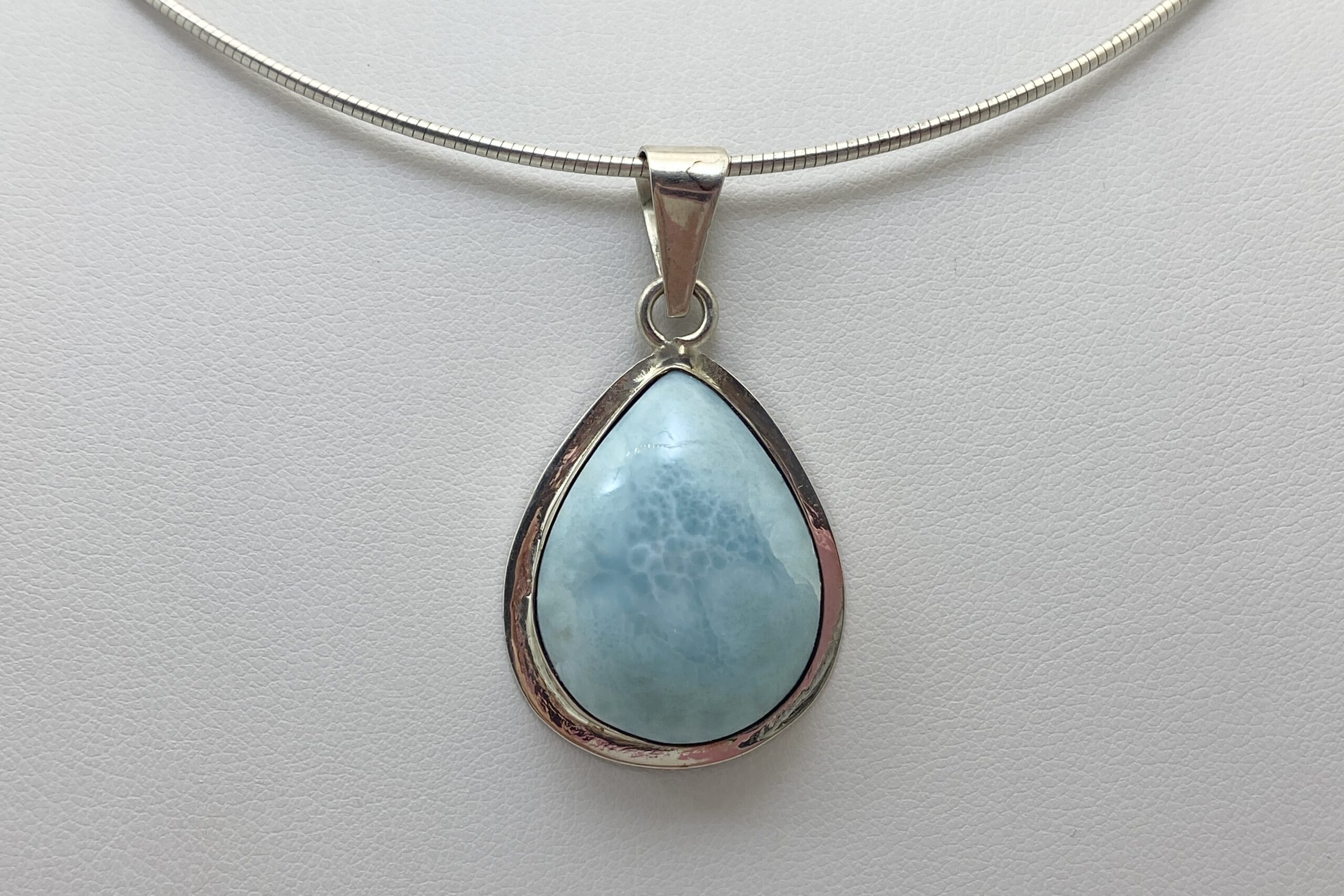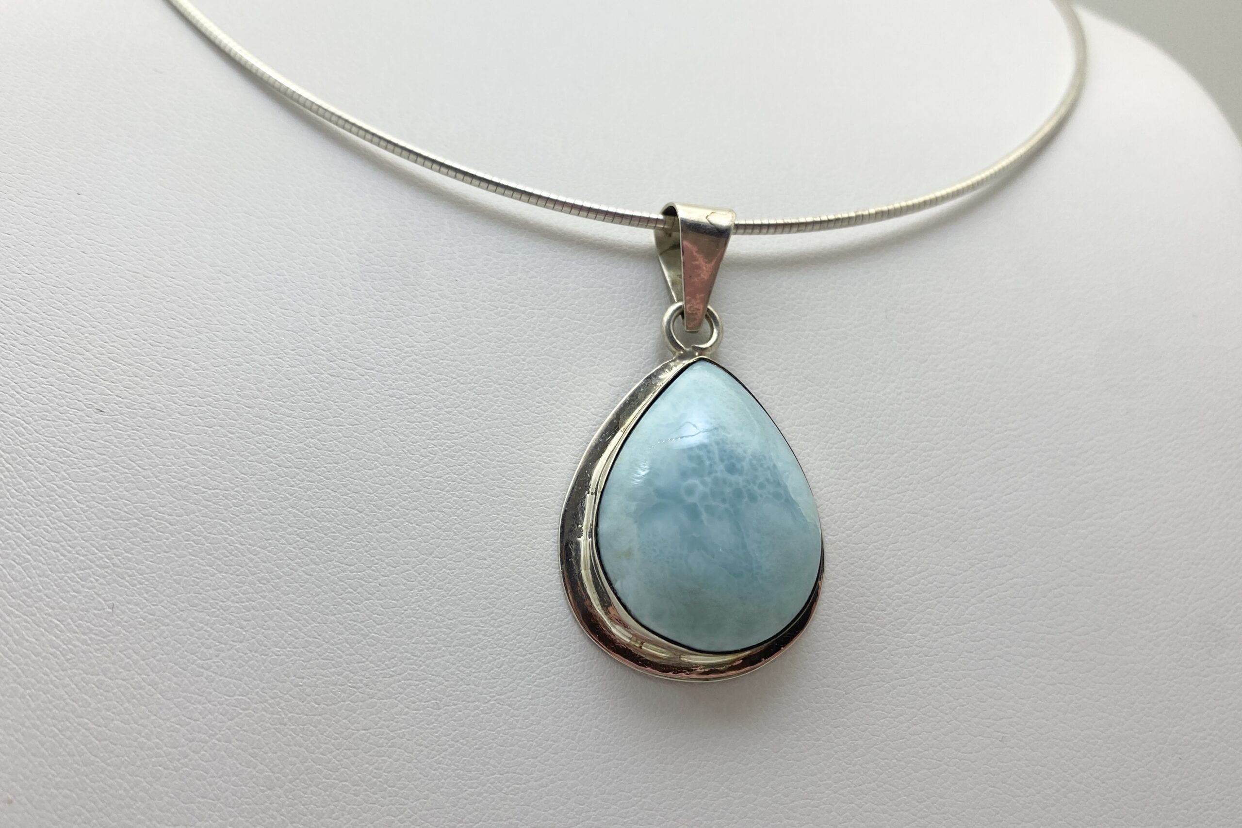 Unikátní přívěsek s překrásným kabošonem z nebesky modrého larimaru z Dominikánské republiky.