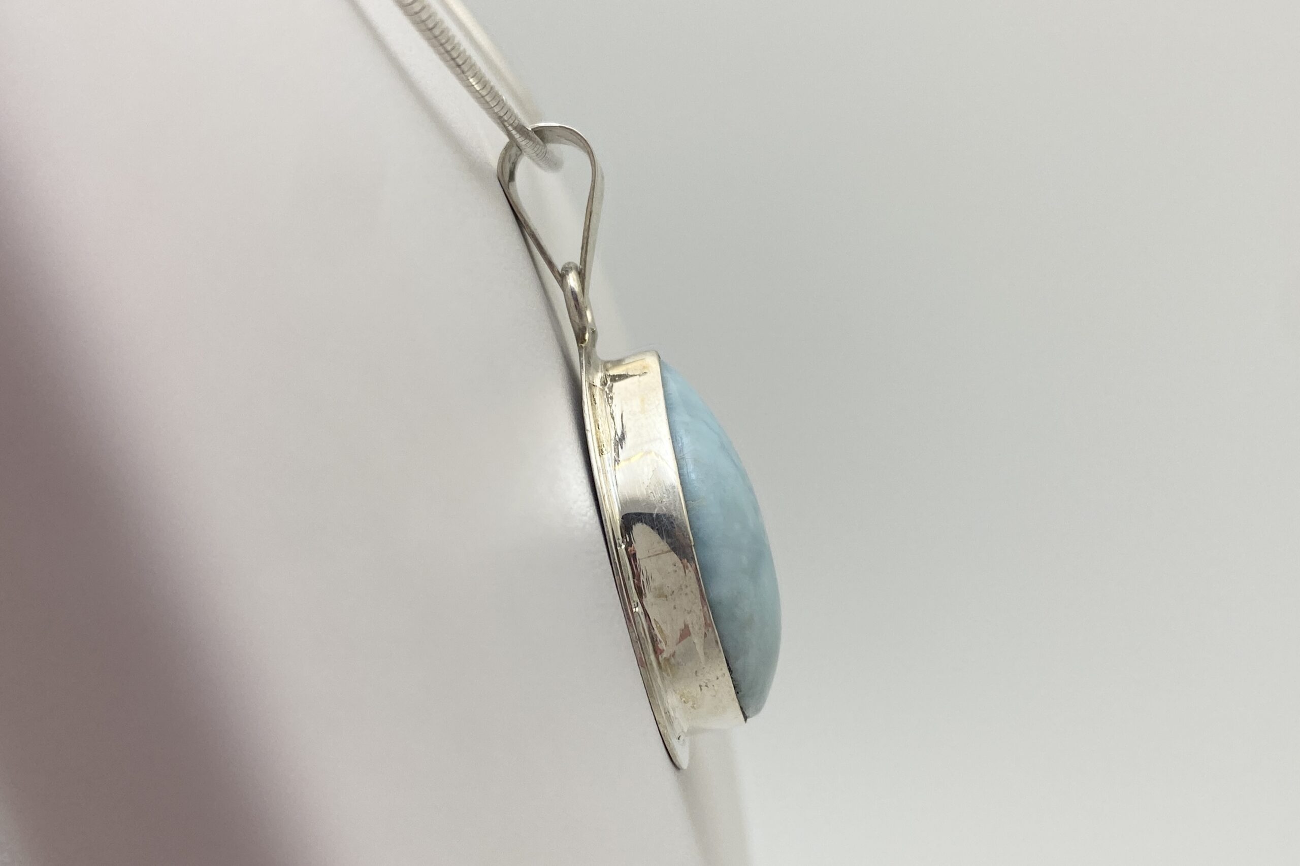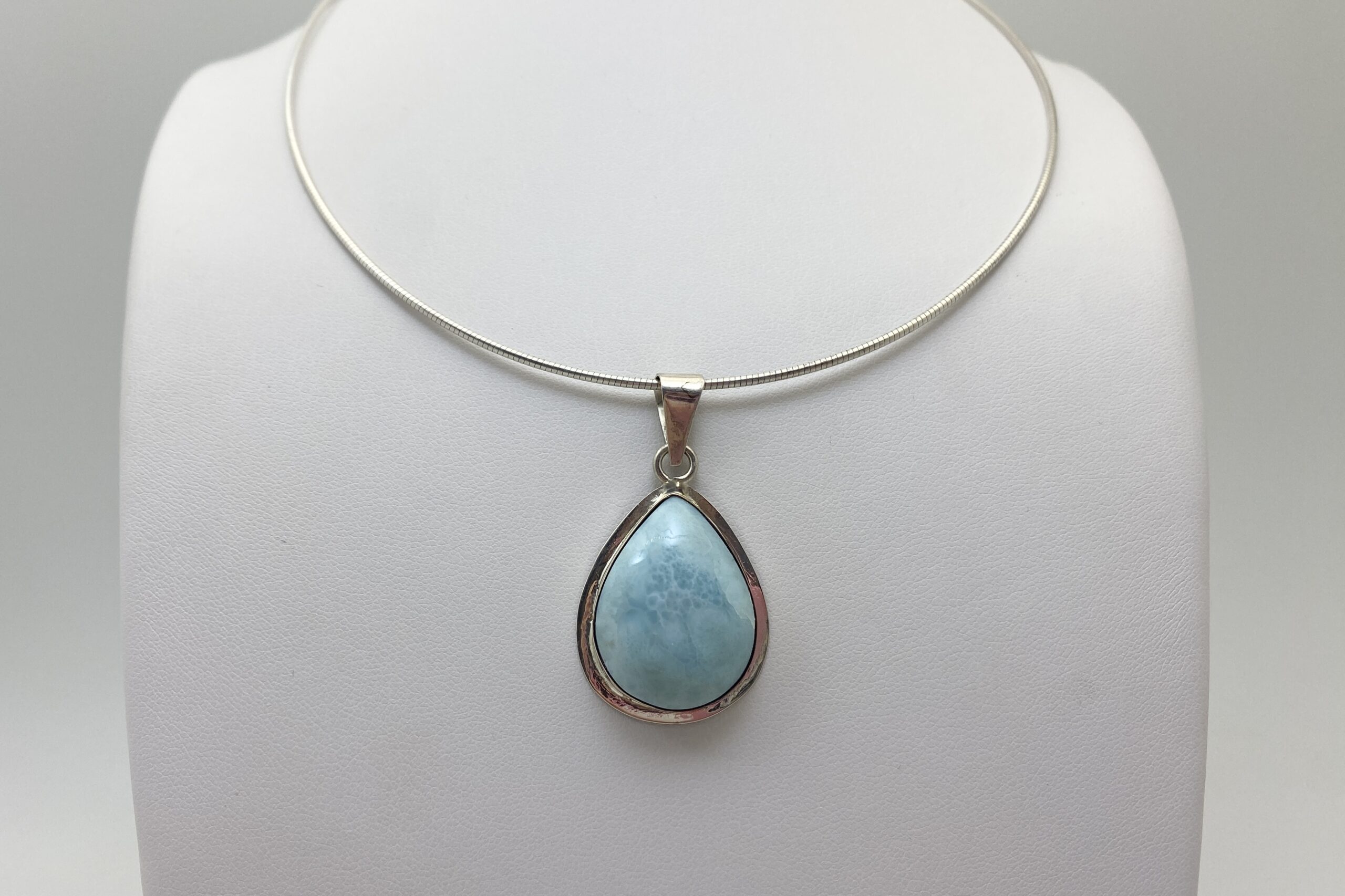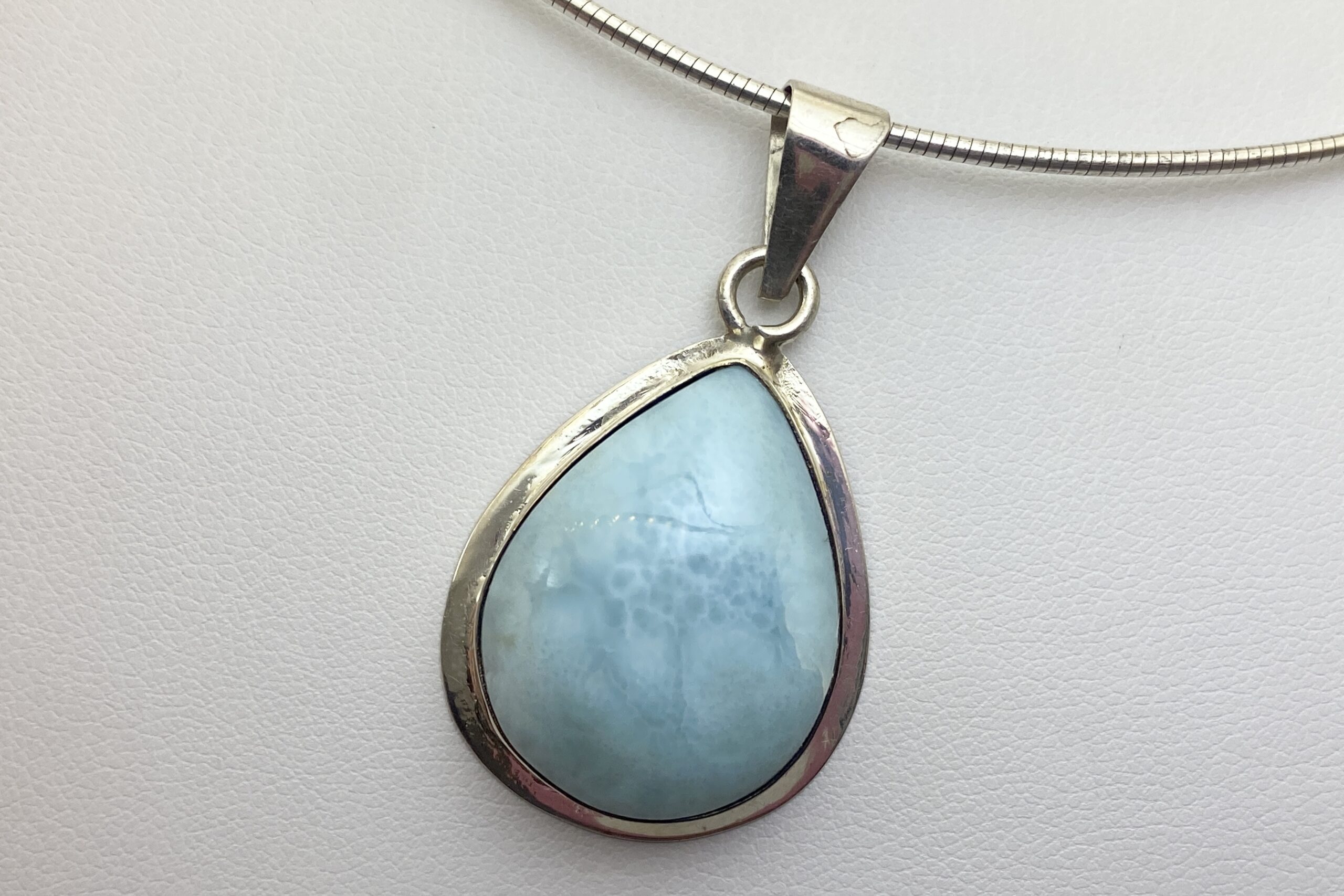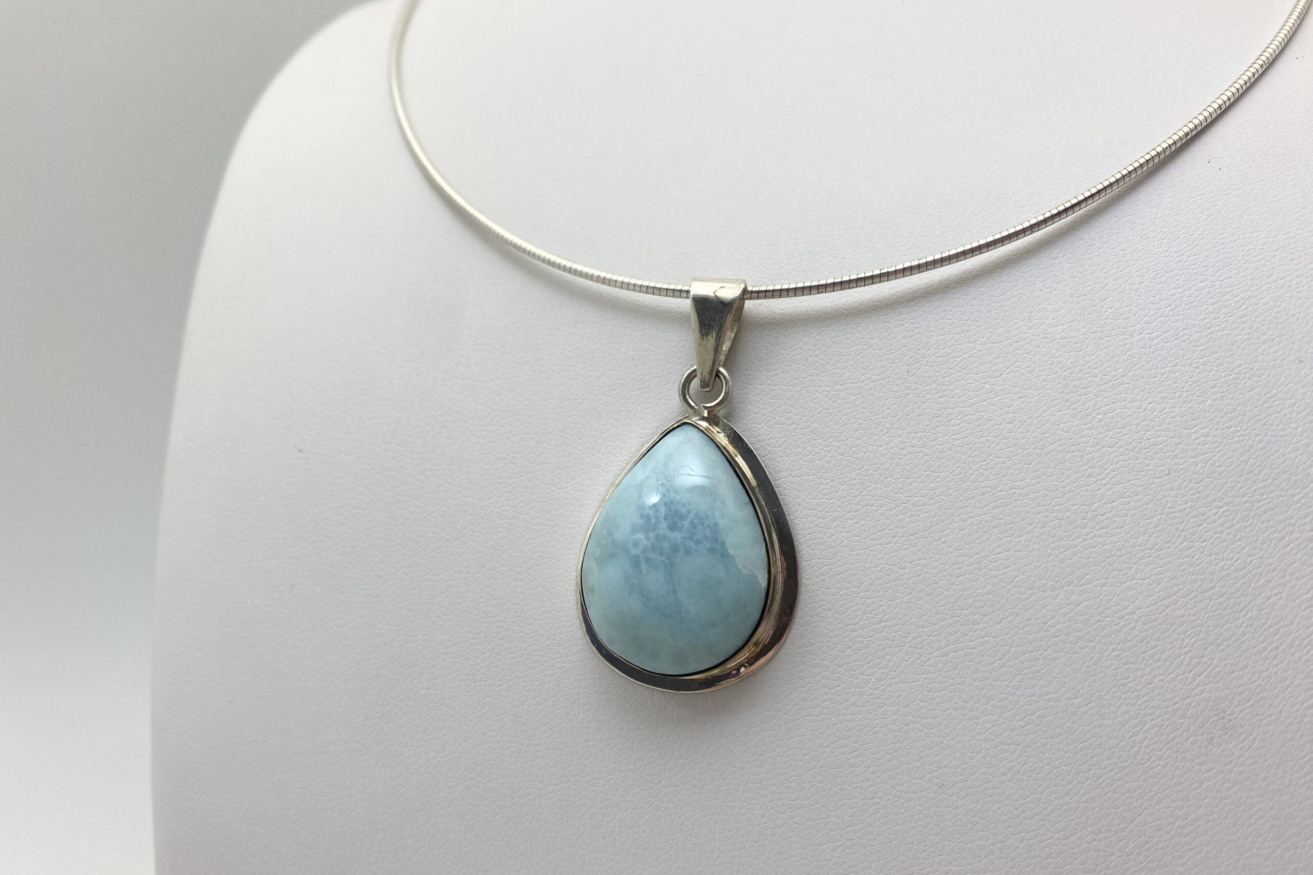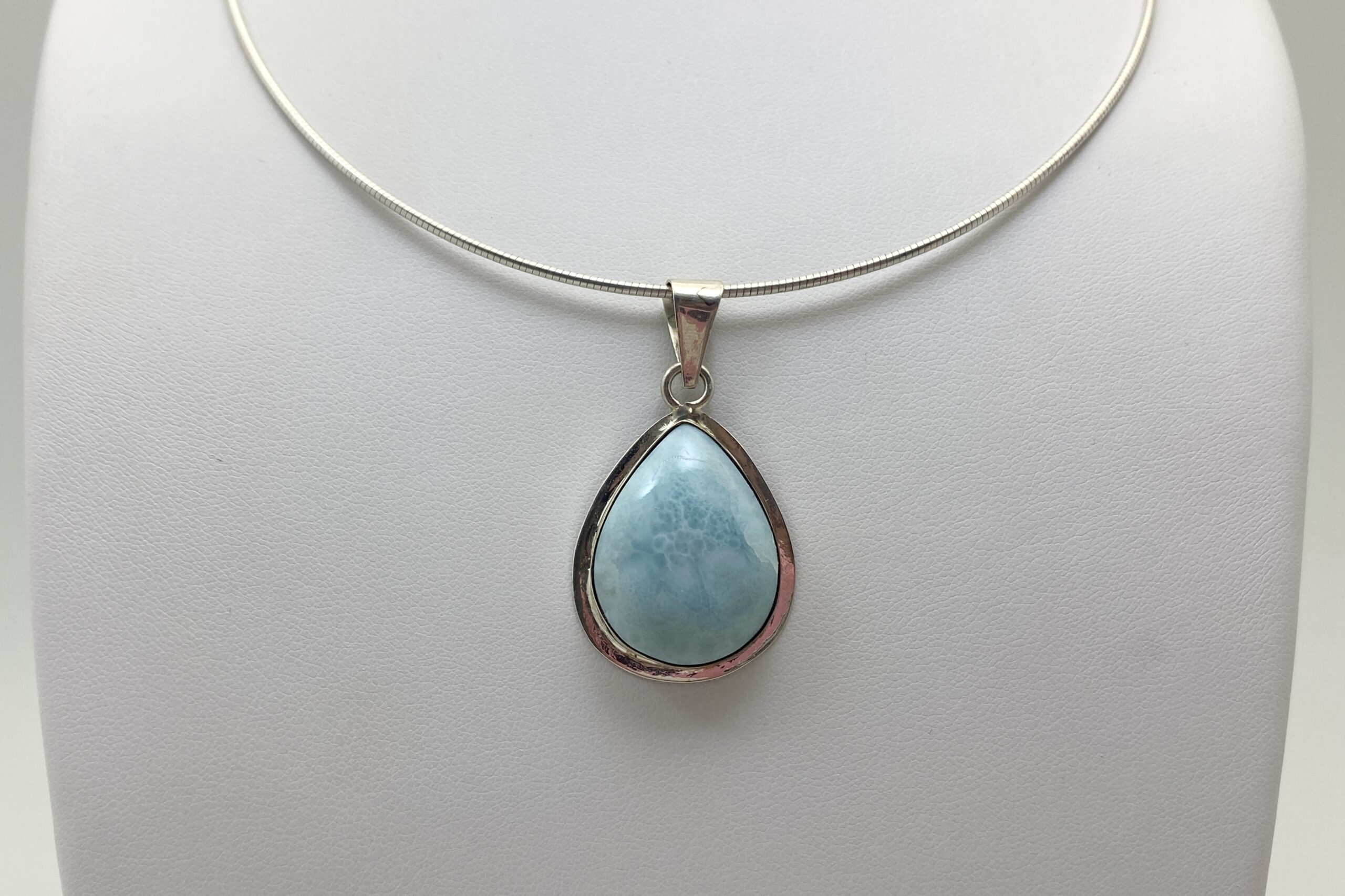 Unikátní přívěsek s překrásným kabošonem z nebesky modrého larimaru z Dominikánské republiky.