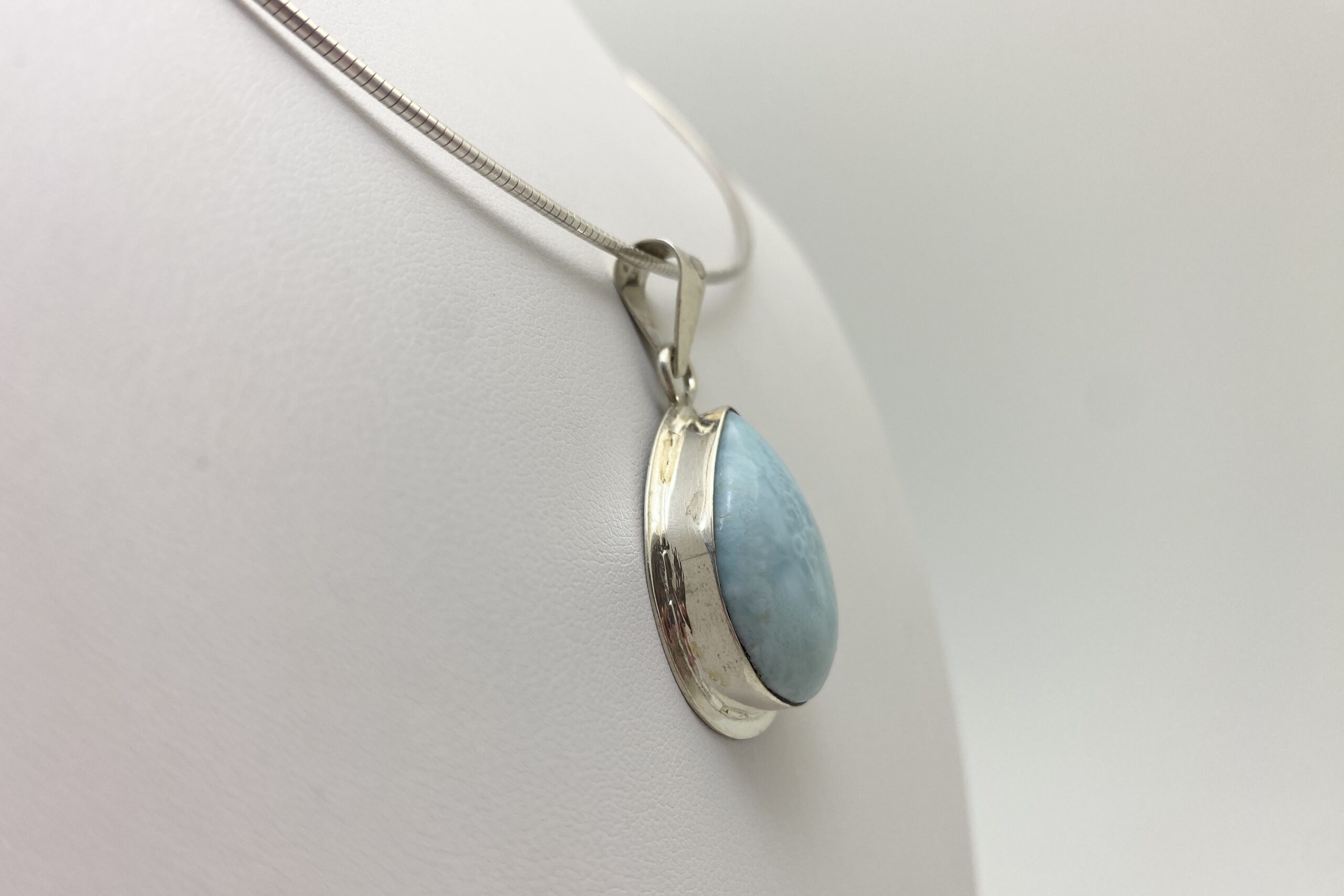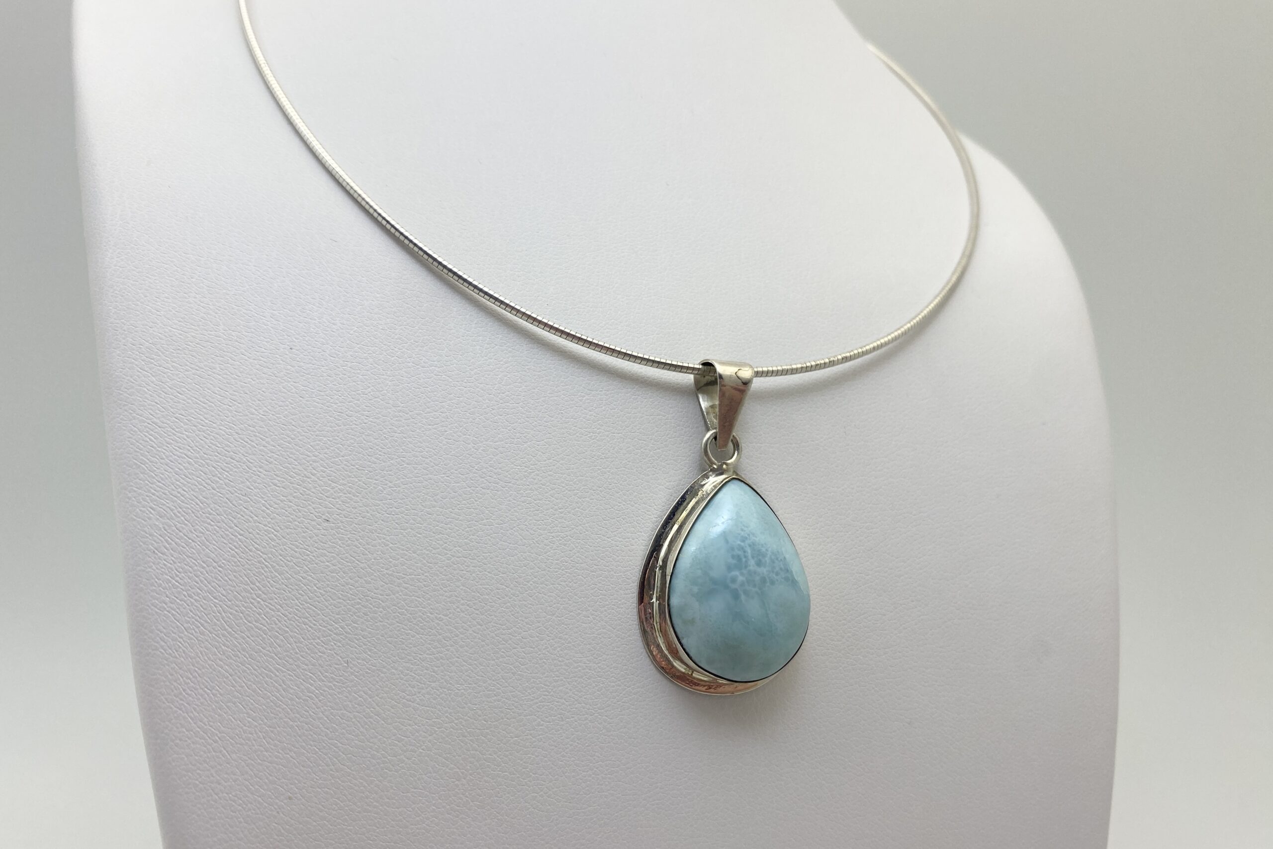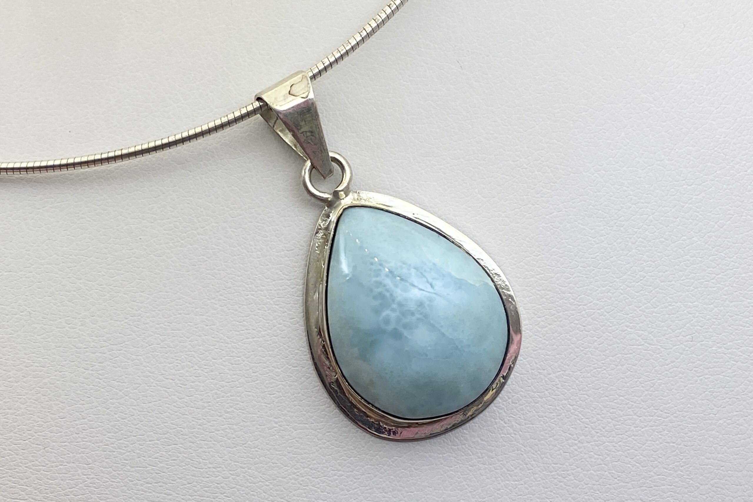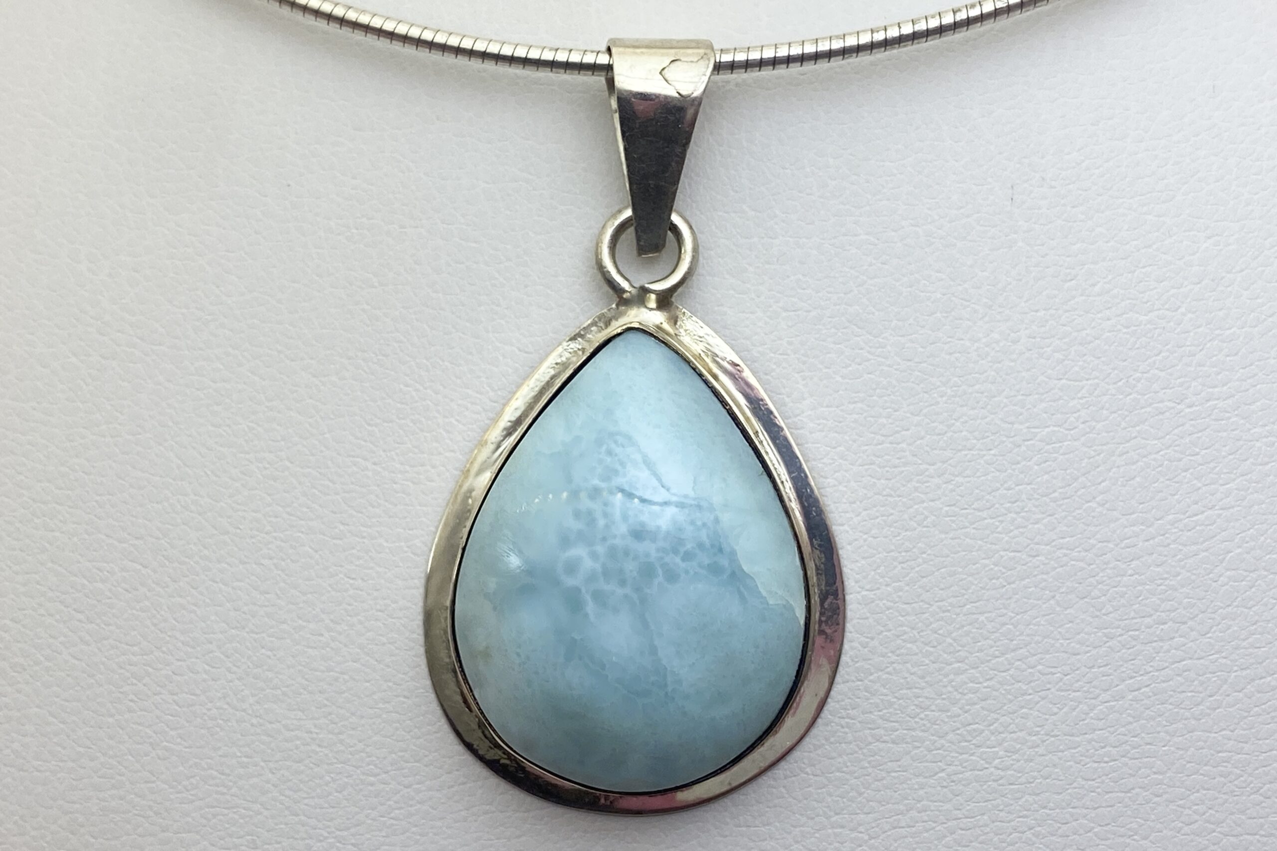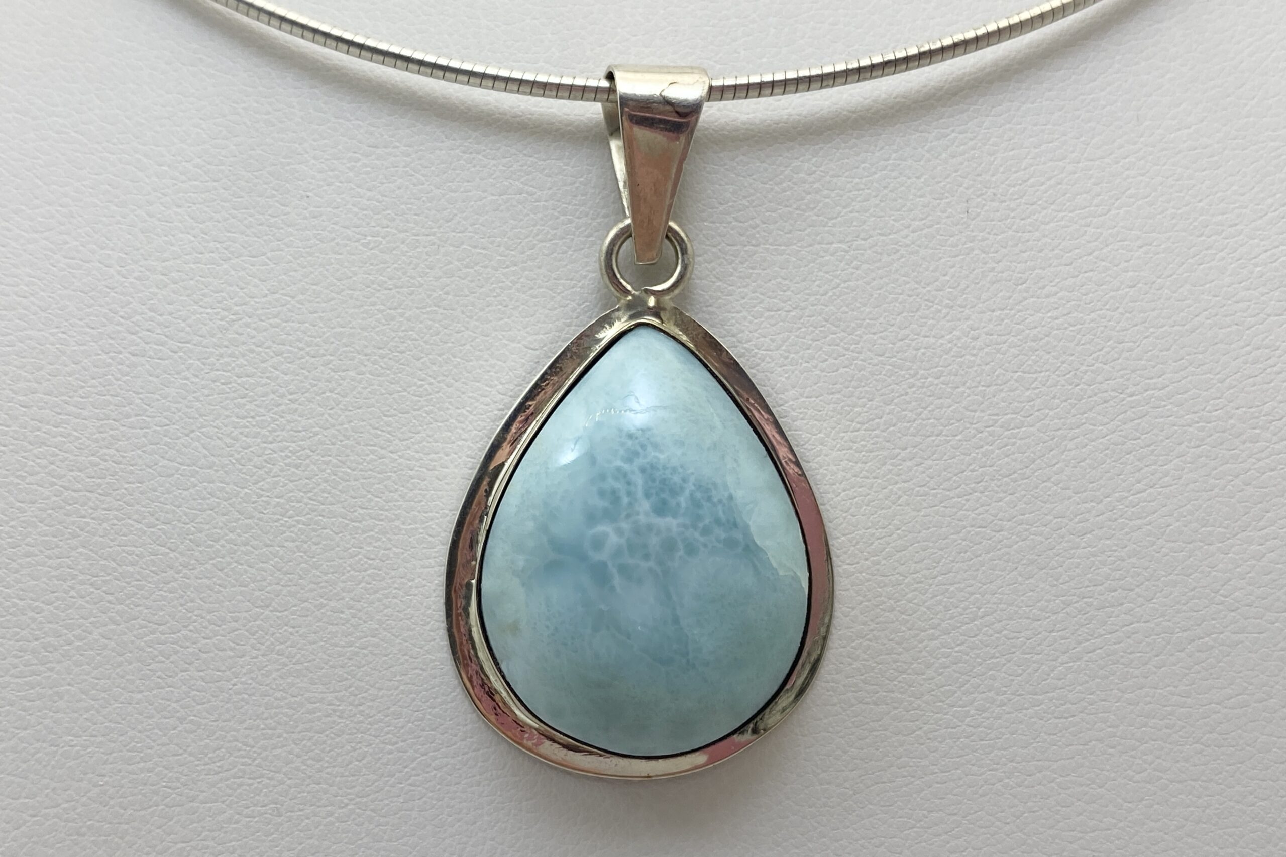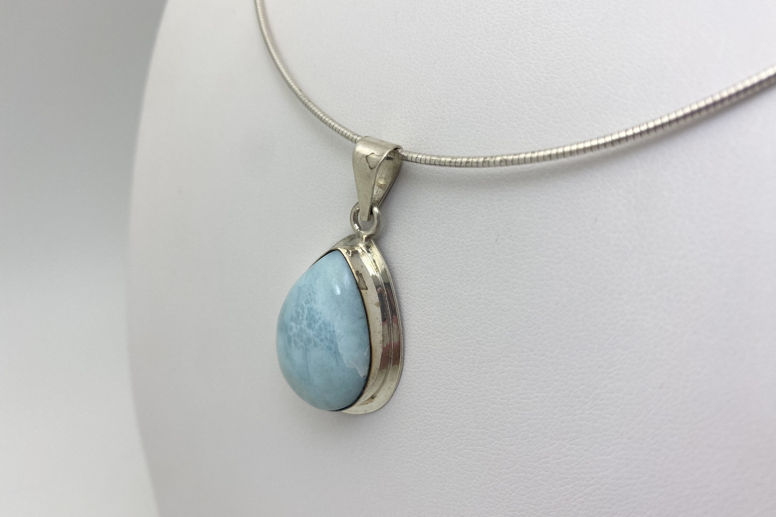 Unikátní přívěsek s překrásným kabošonem z nebesky modrého larimaru z Dominikánské republiky.