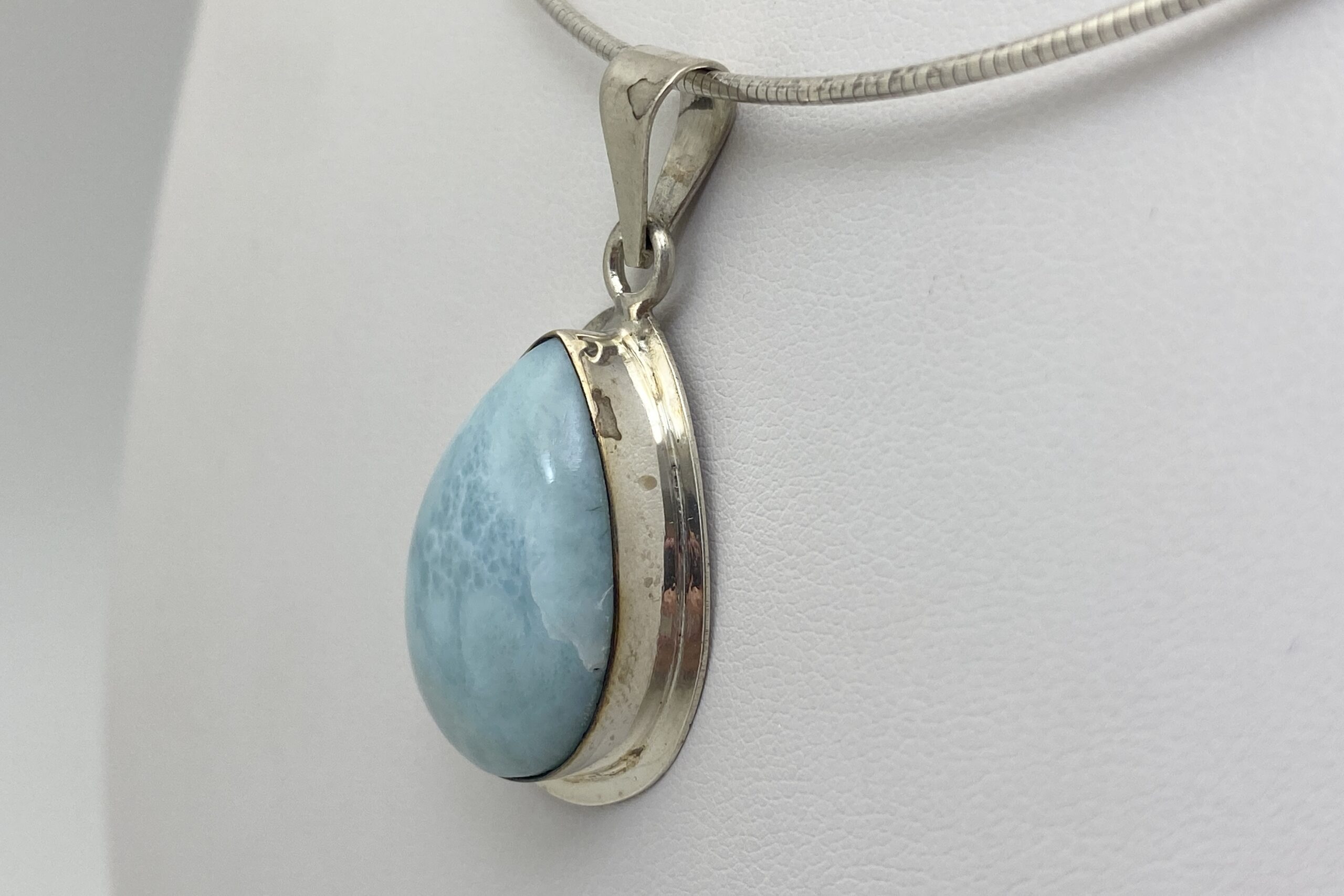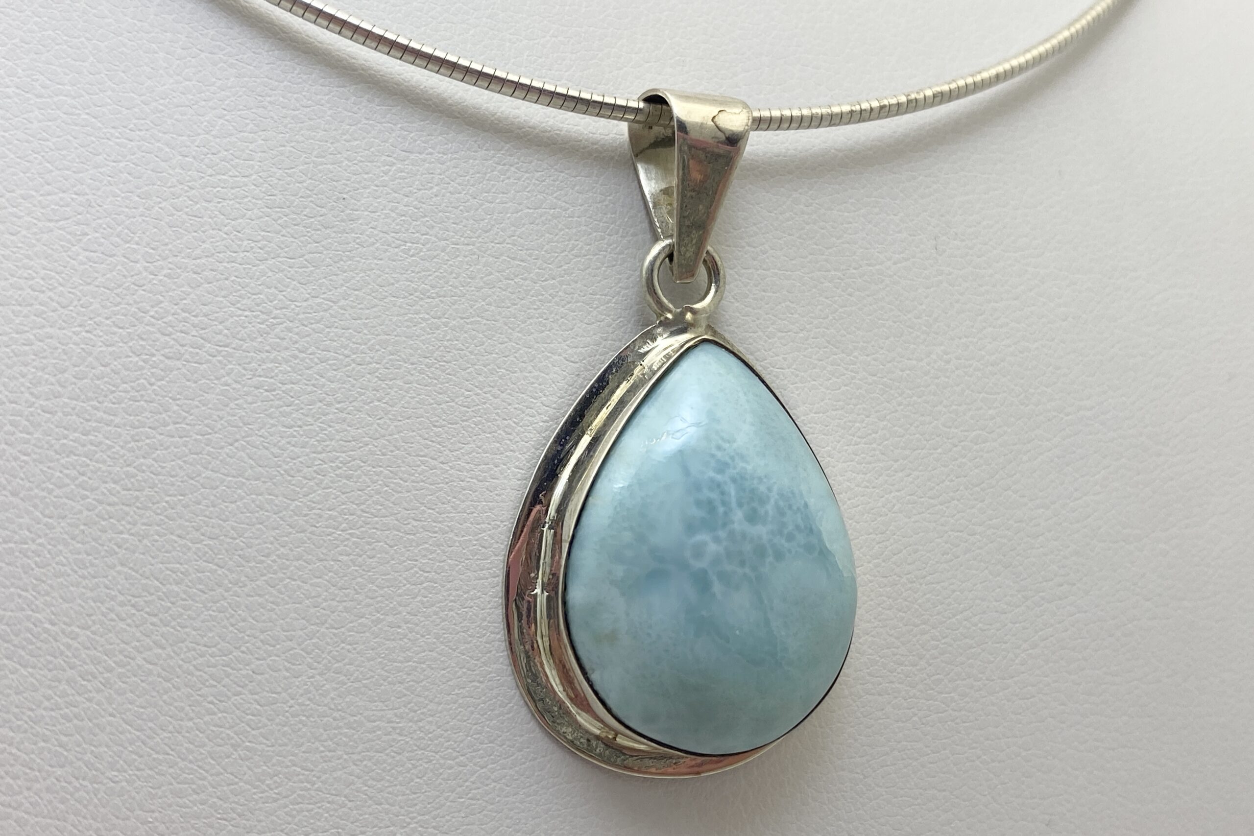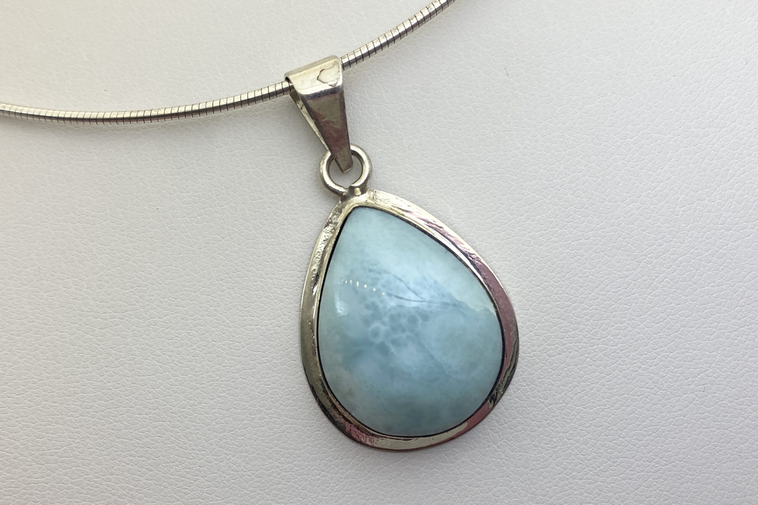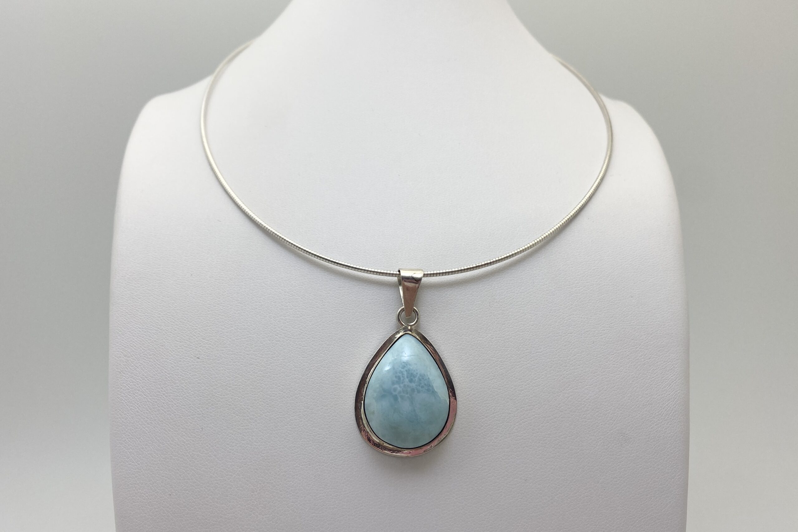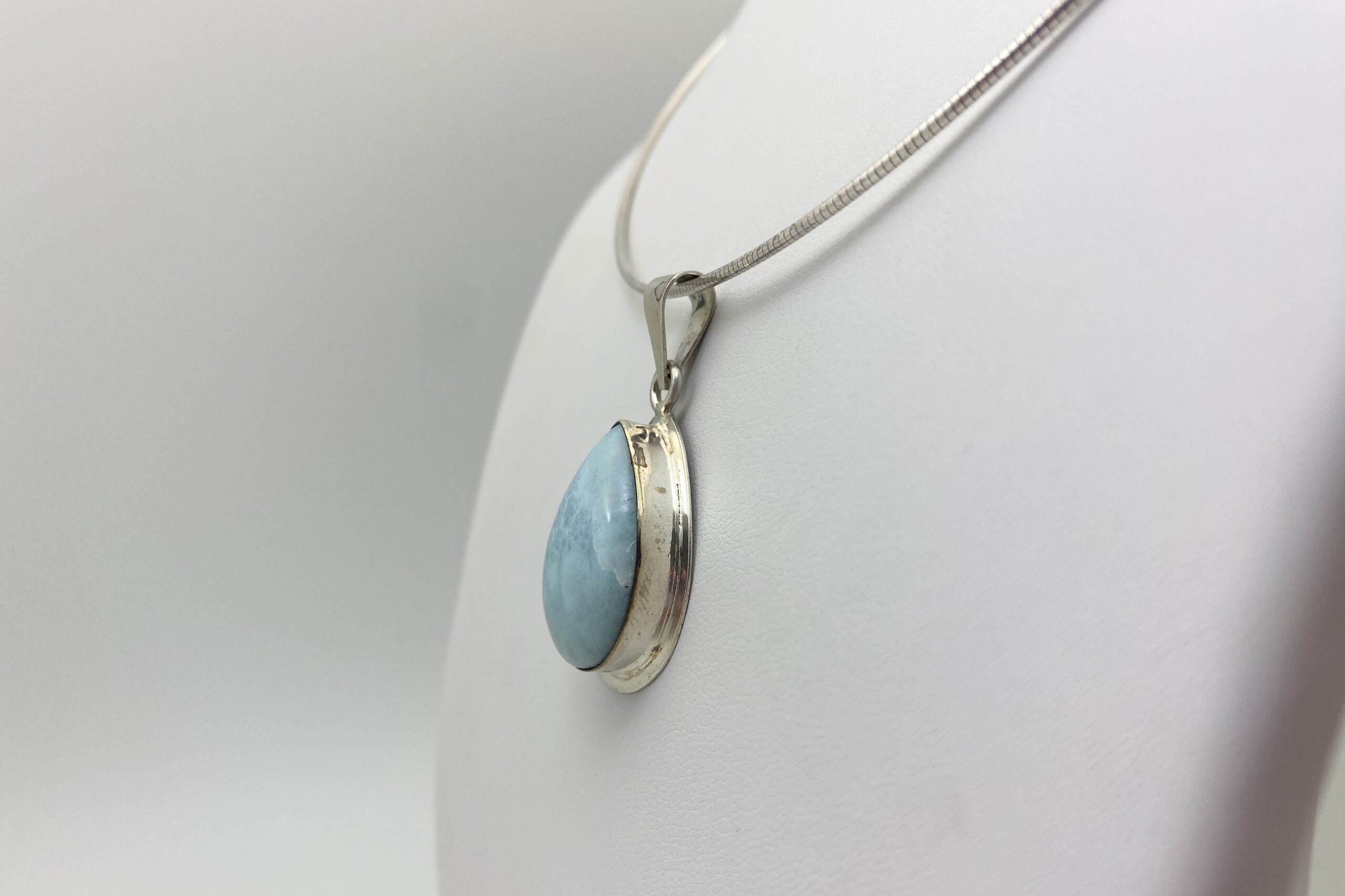 Unikátní přívěsek s překrásným kabošonem z nebesky modrého larimaru z Dominikánské republiky.