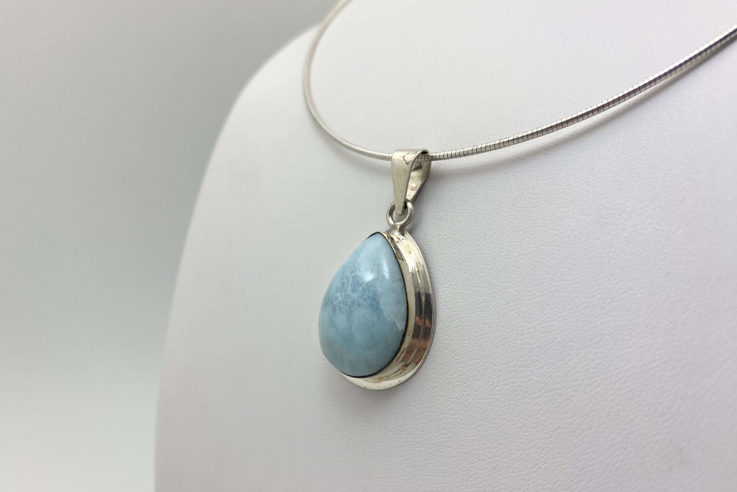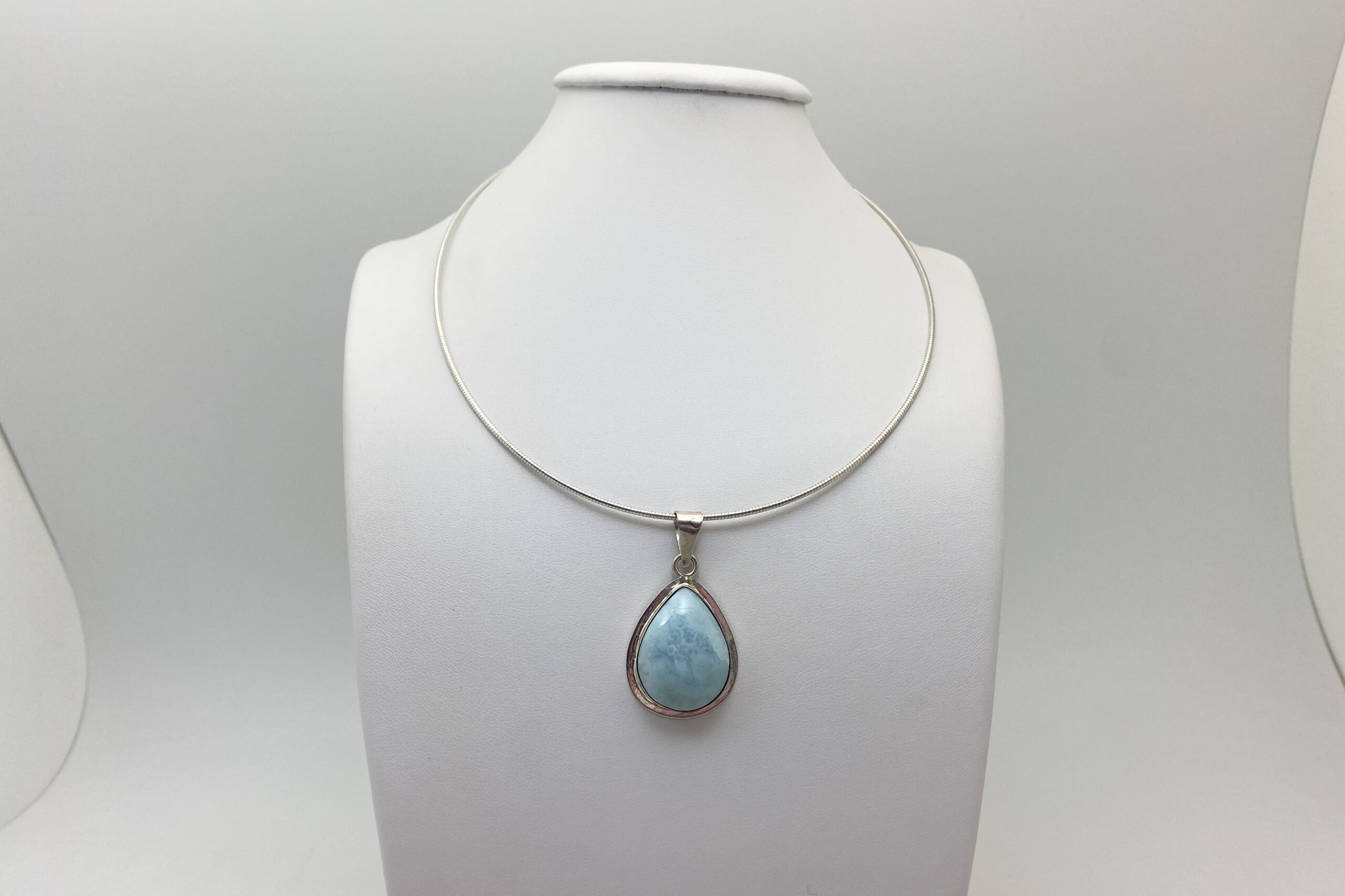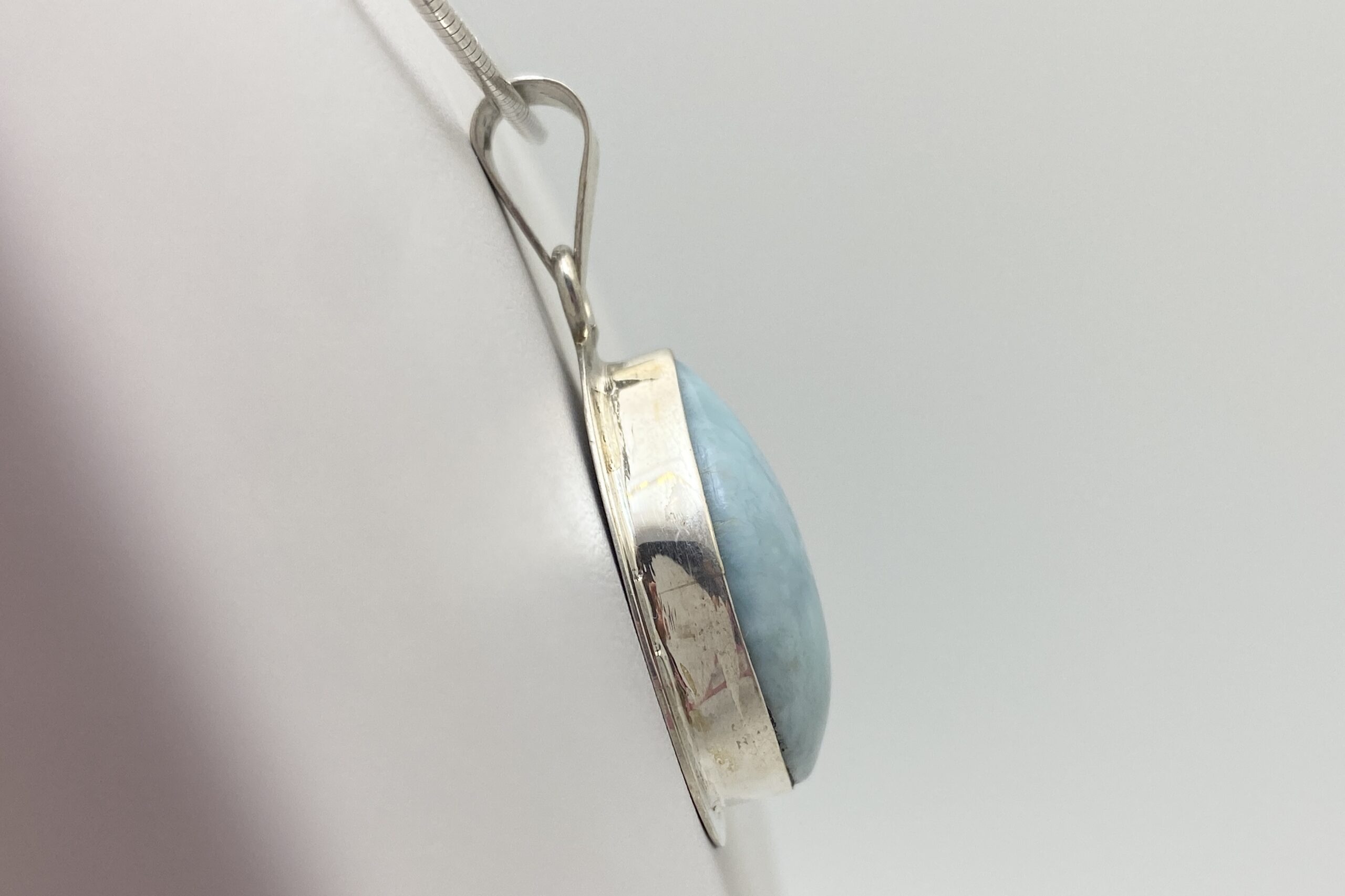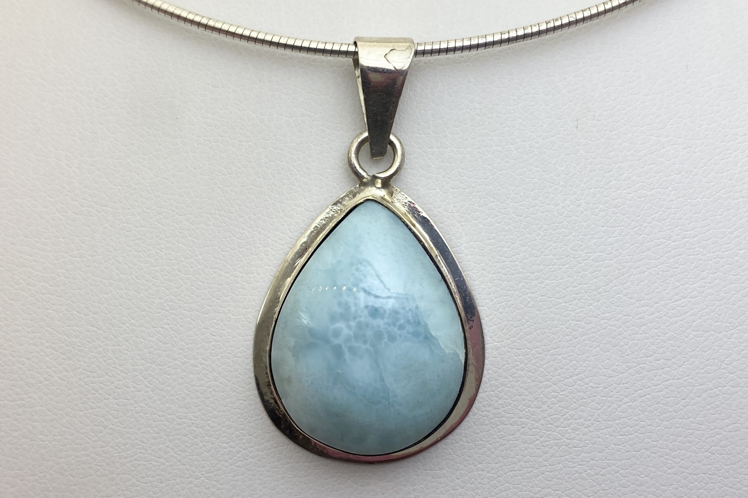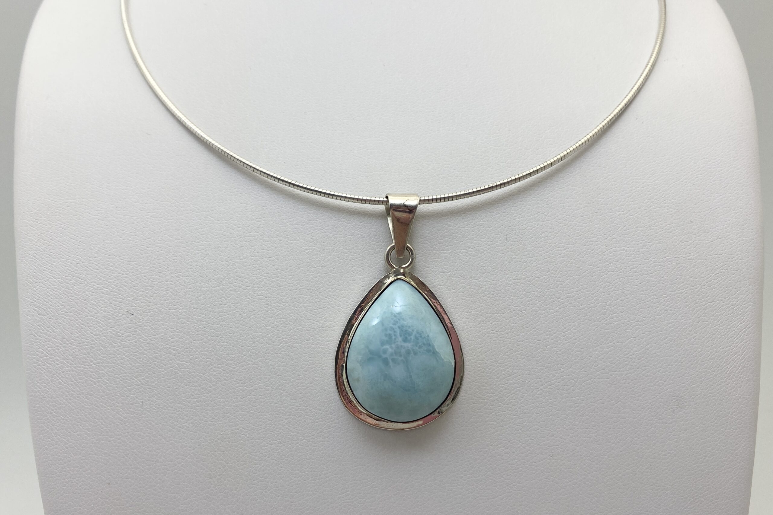 Unikátní přívěsek s překrásným kabošonem z nebesky modrého larimaru z Dominikánské republiky.
