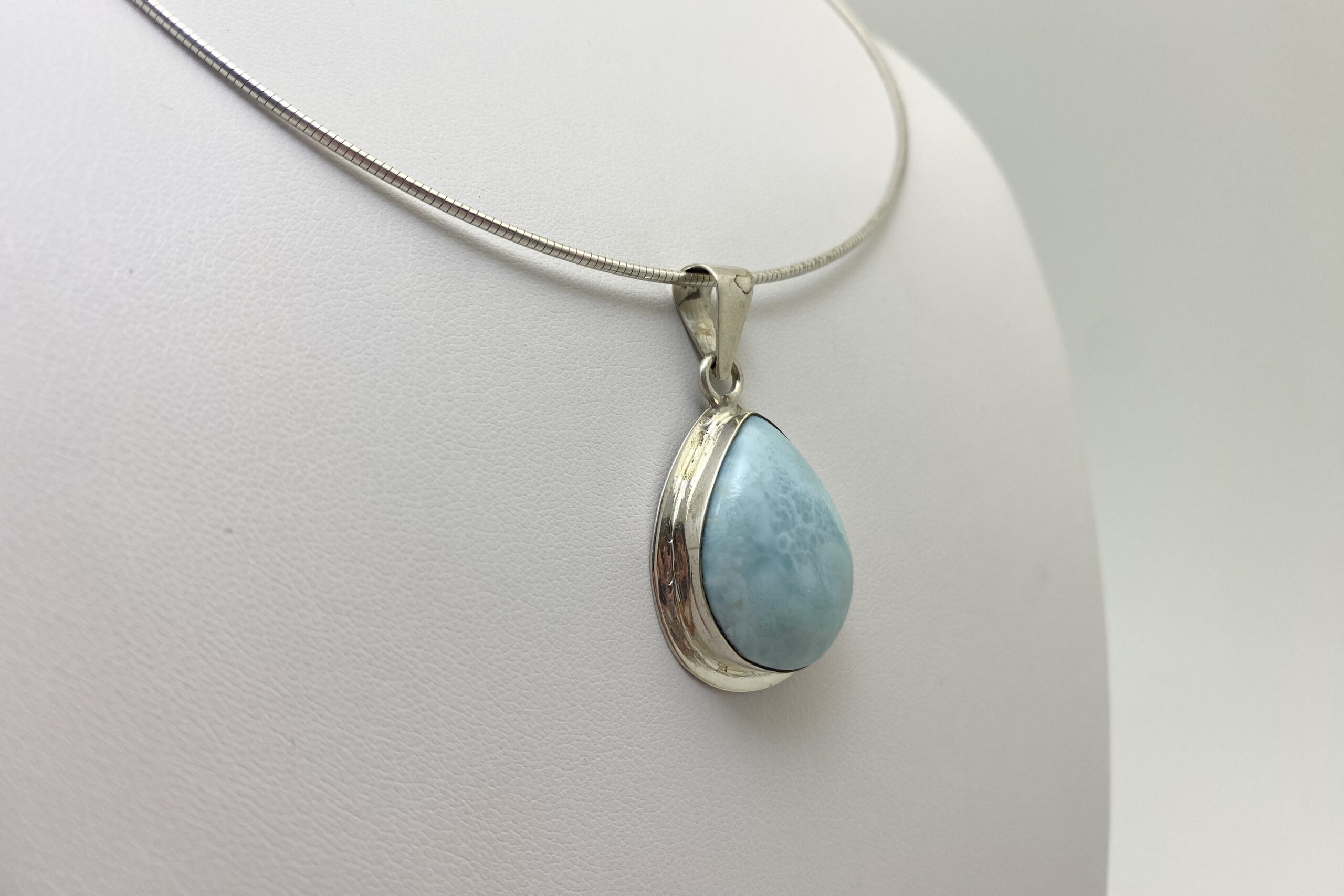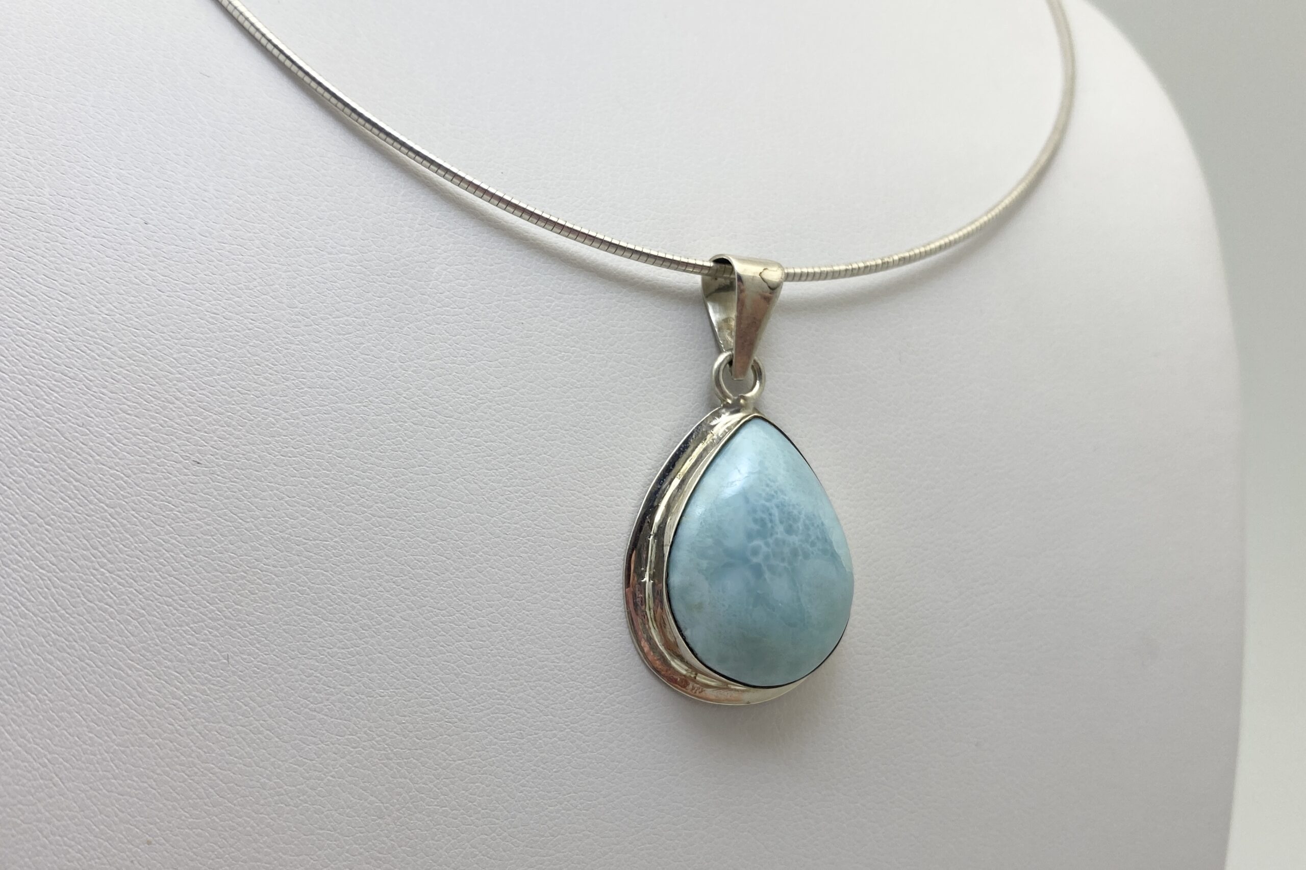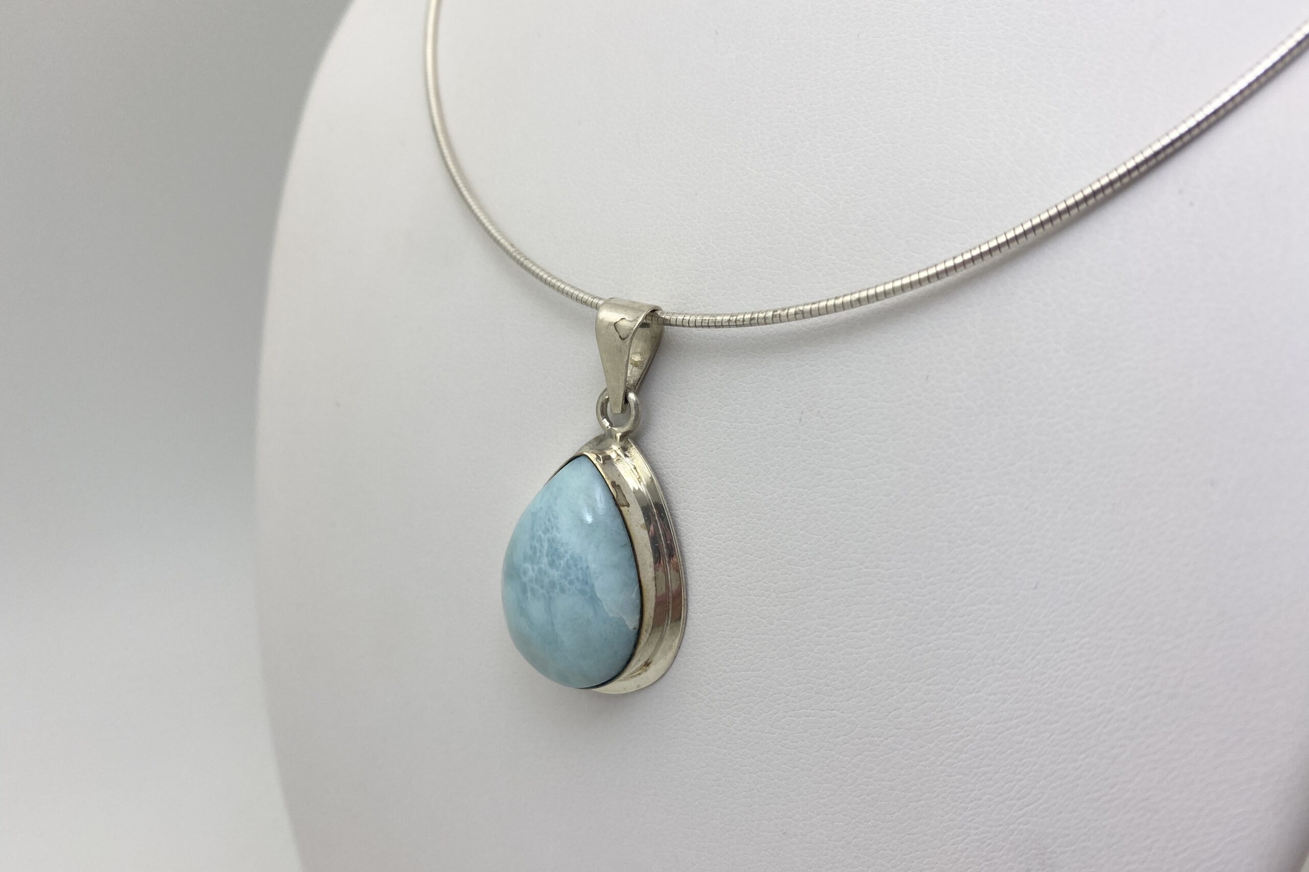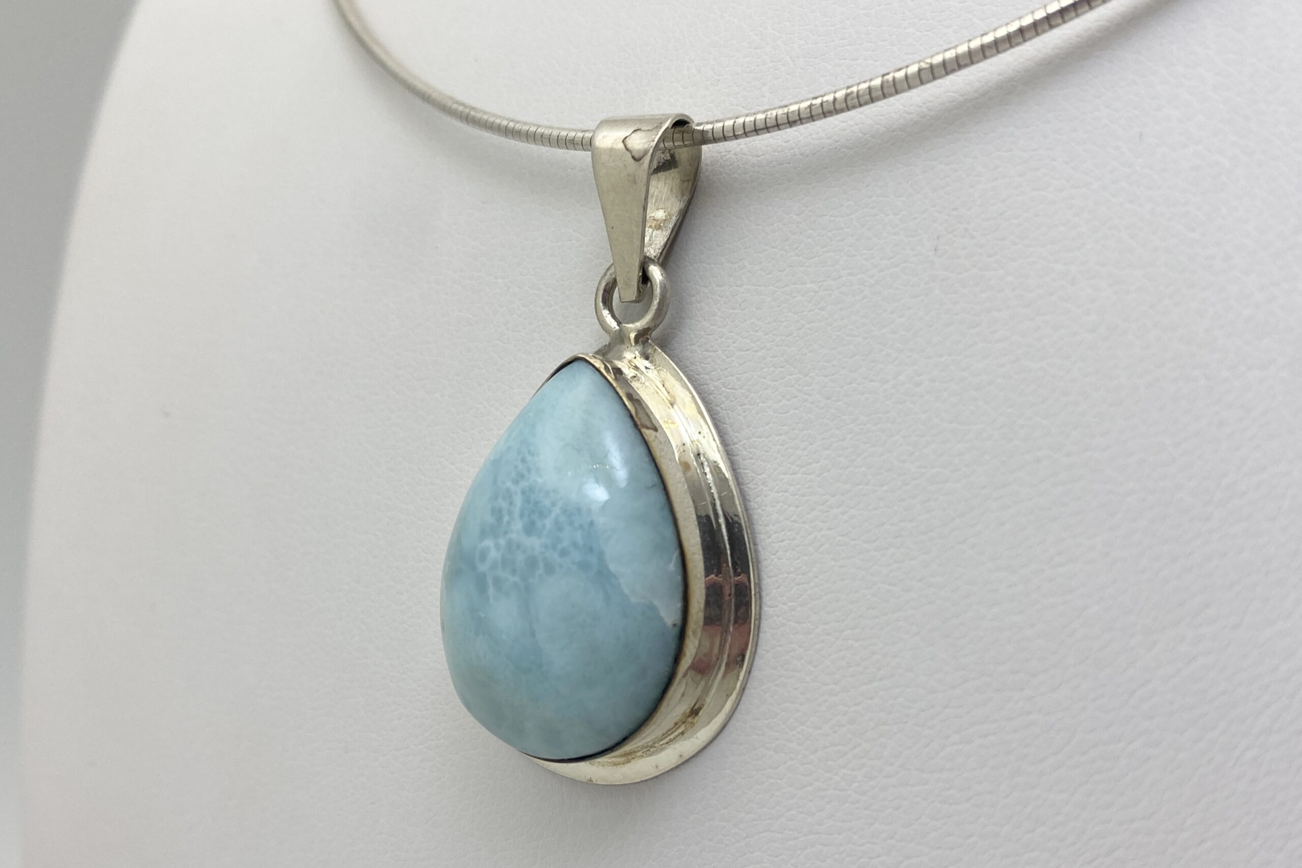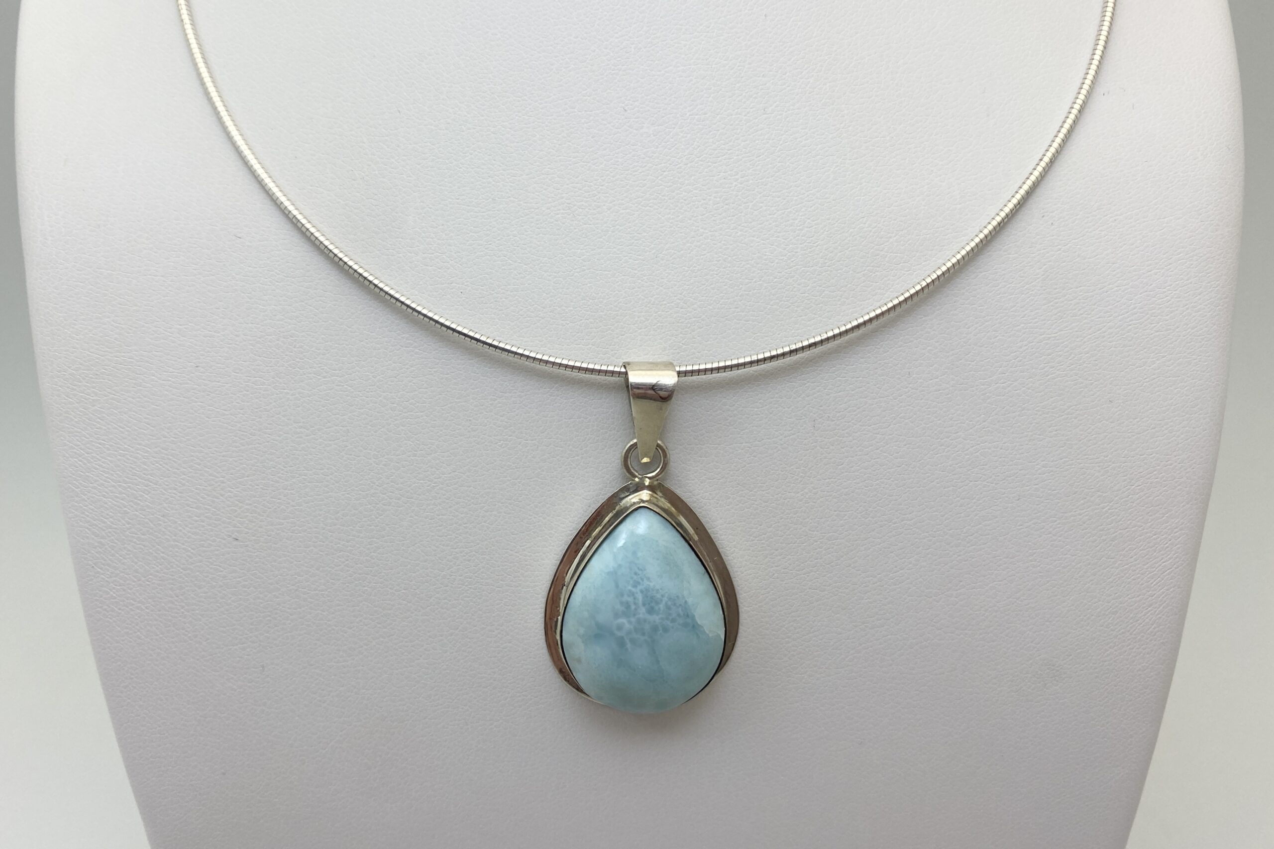 Unikátní přívěsek s překrásným kabošonem z nebesky modrého larimaru z Dominikánské republiky.