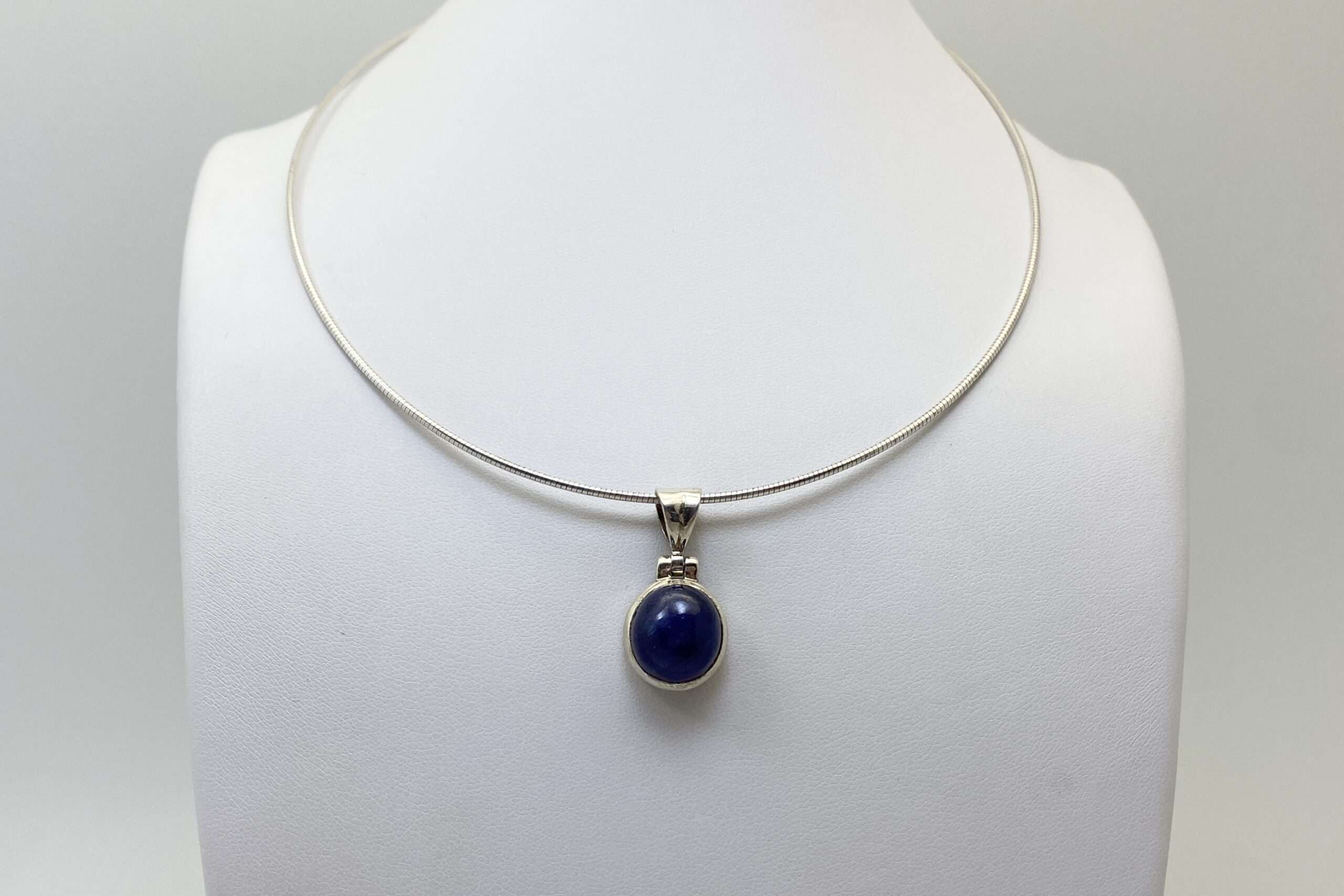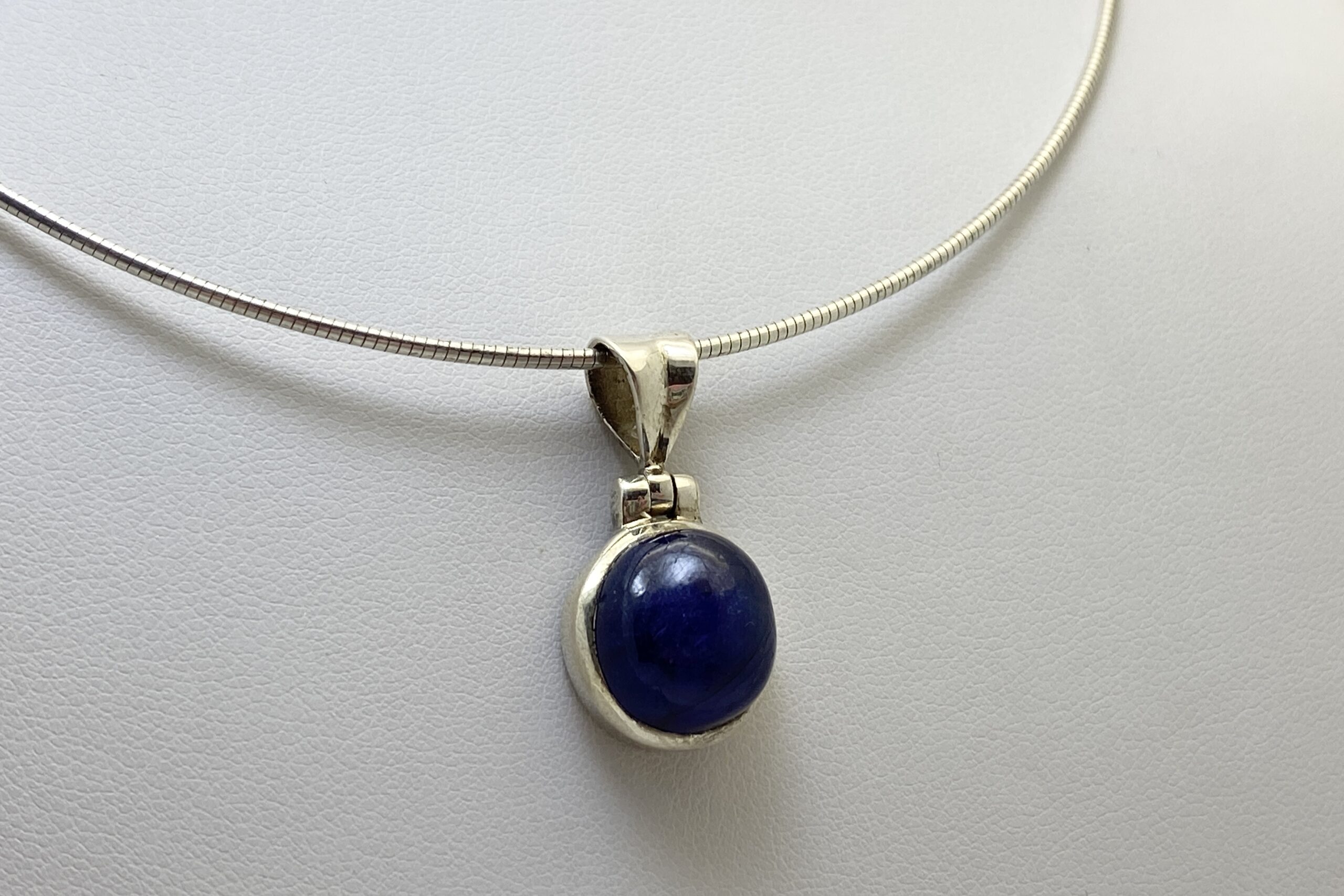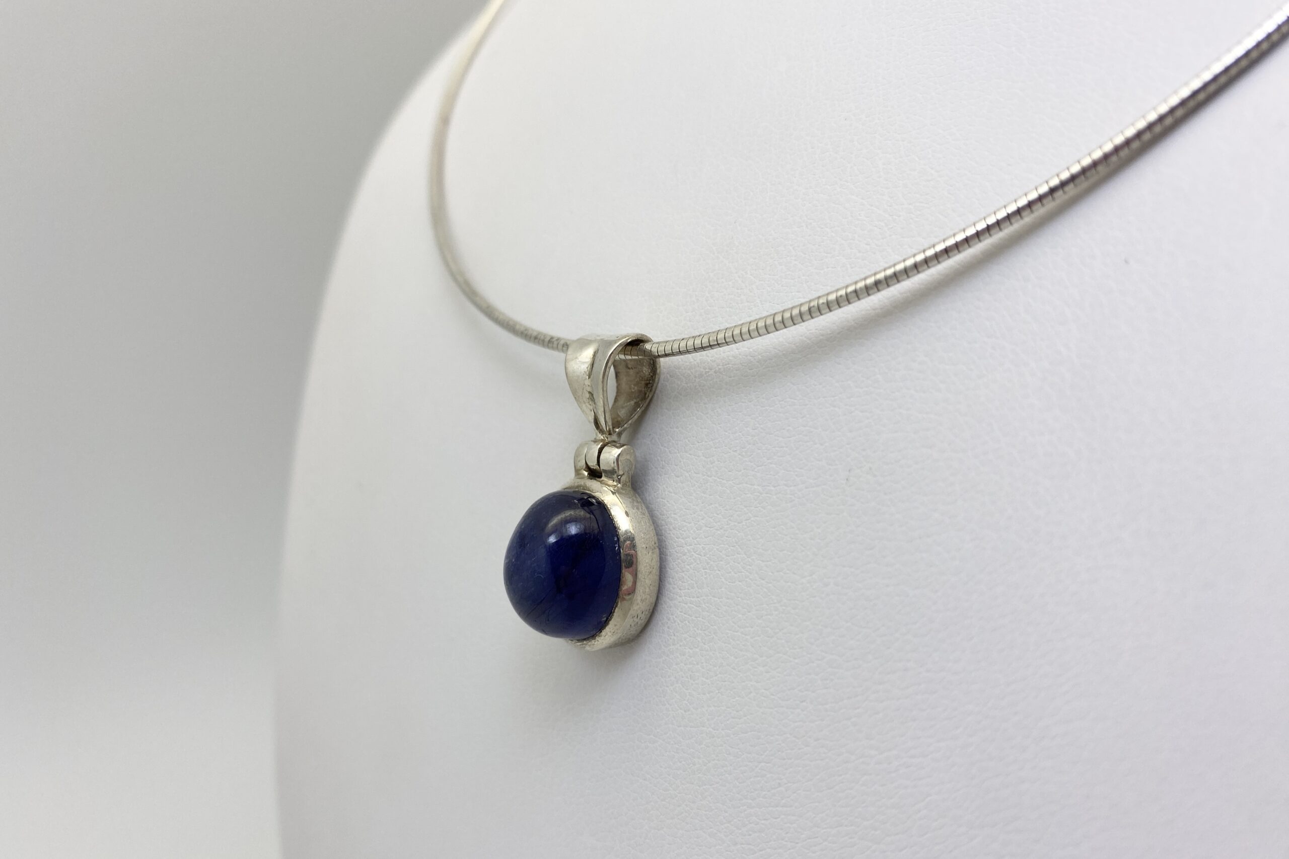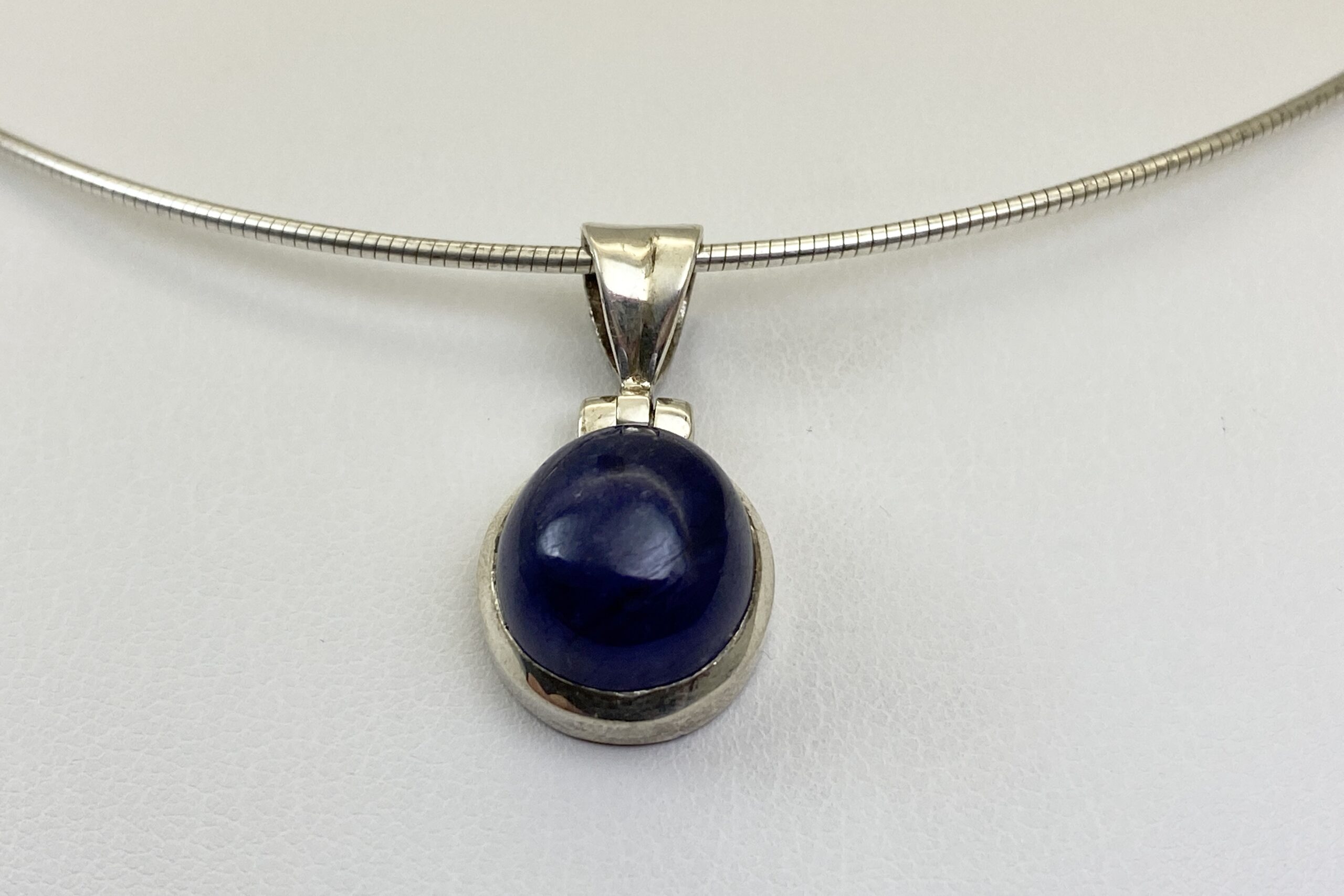 Elegantní přívěsek s překrásným tmavě modrým safírem.