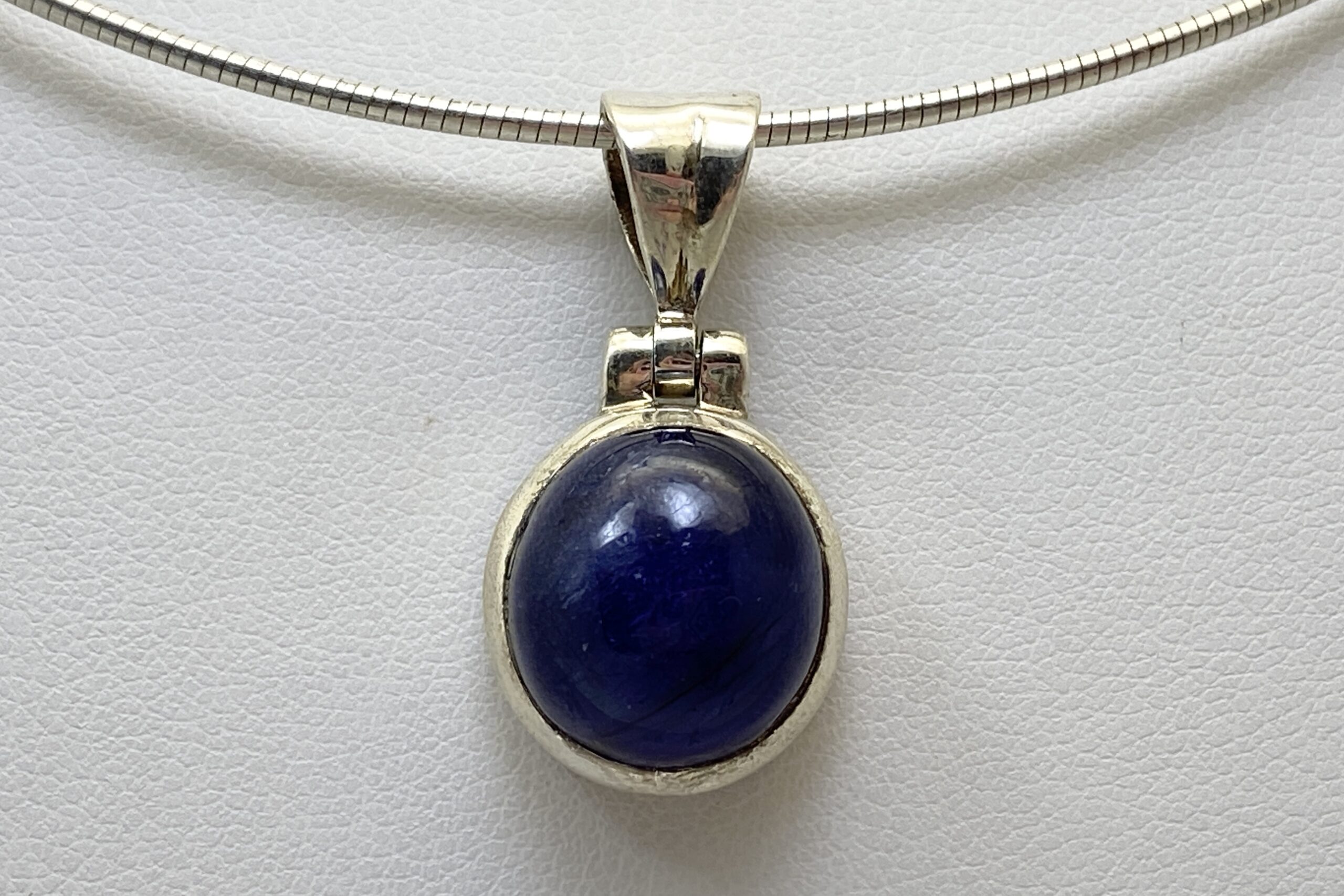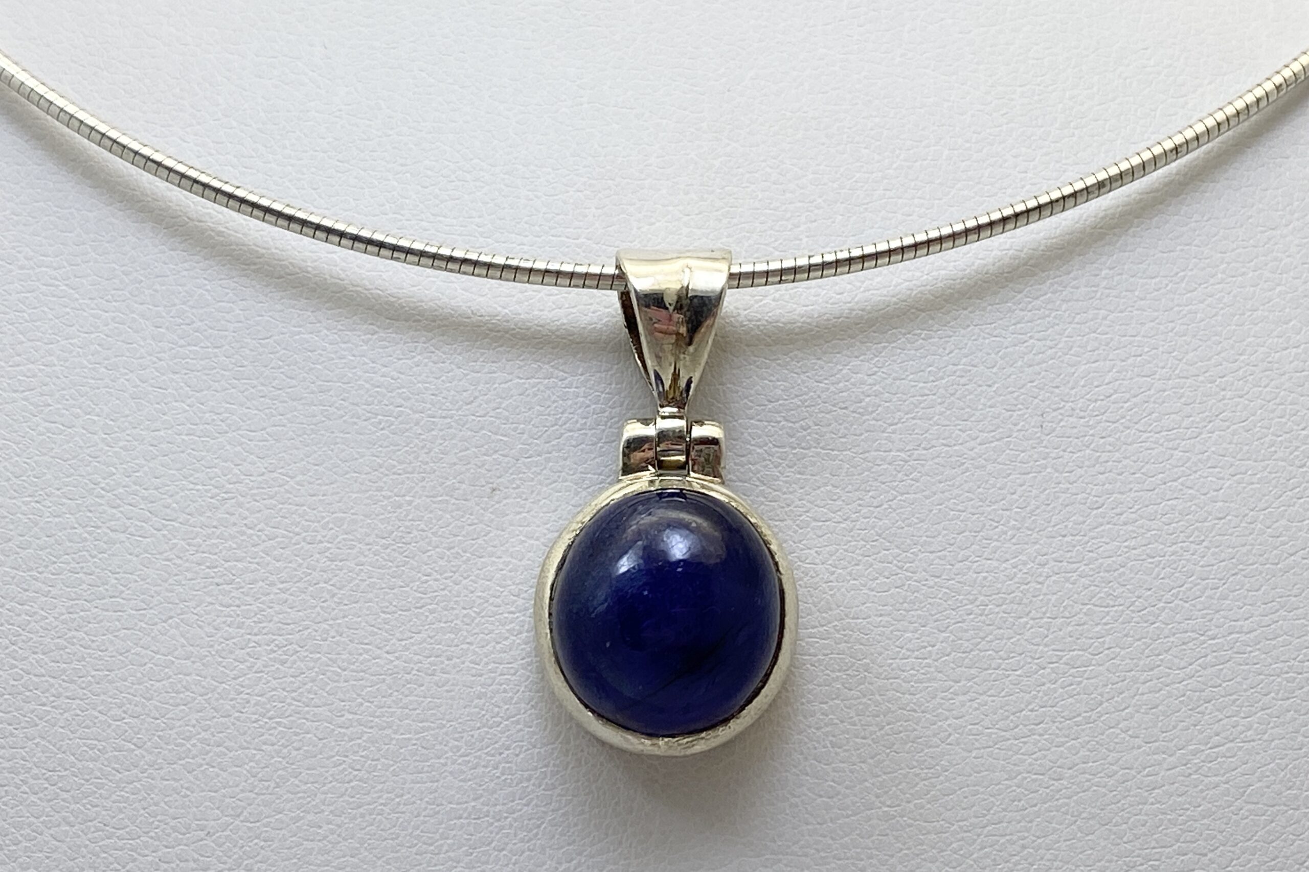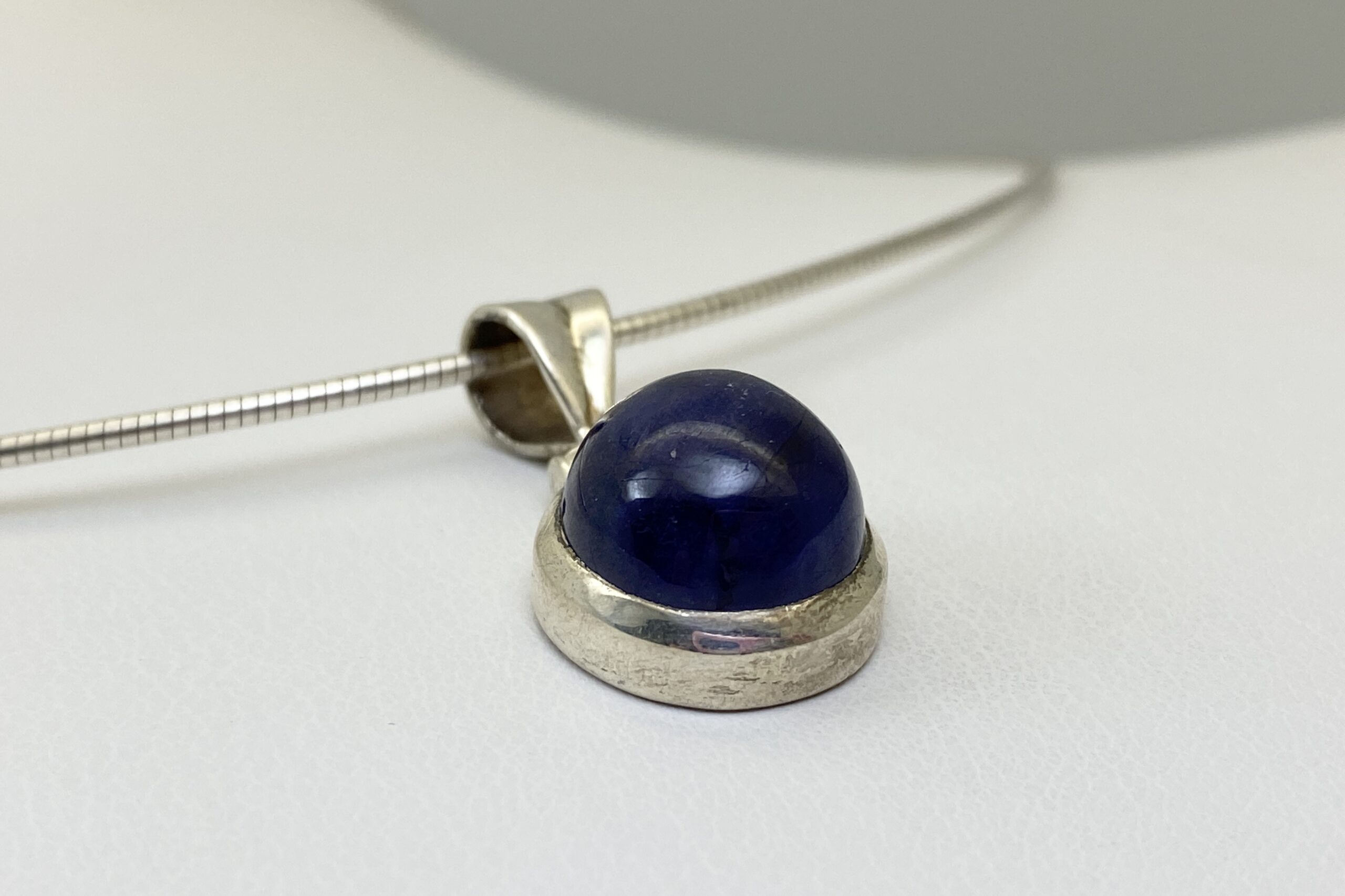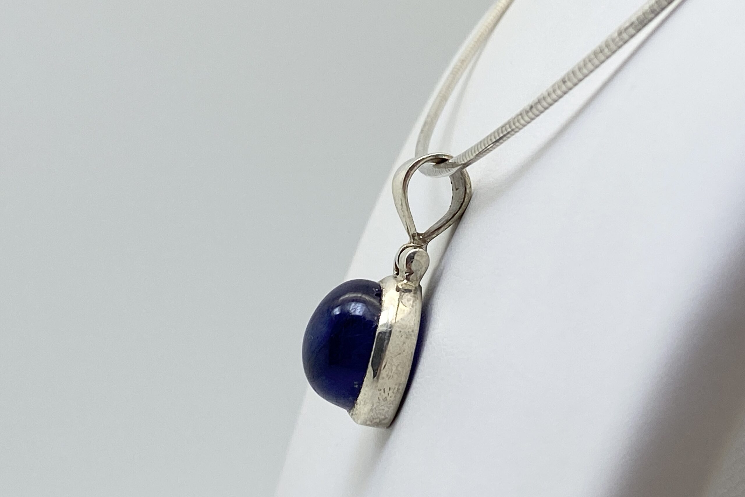 Elegantní přívěsek s překrásným tmavě modrým safírem.