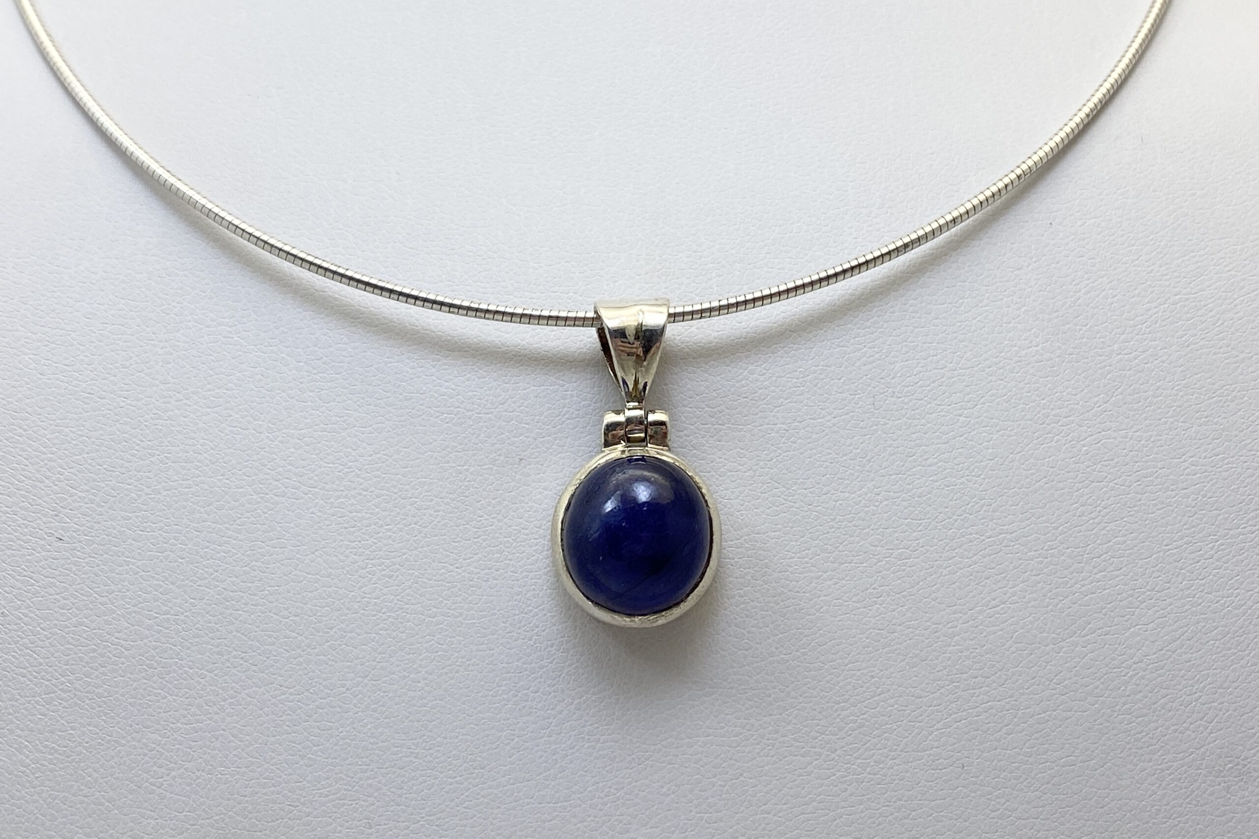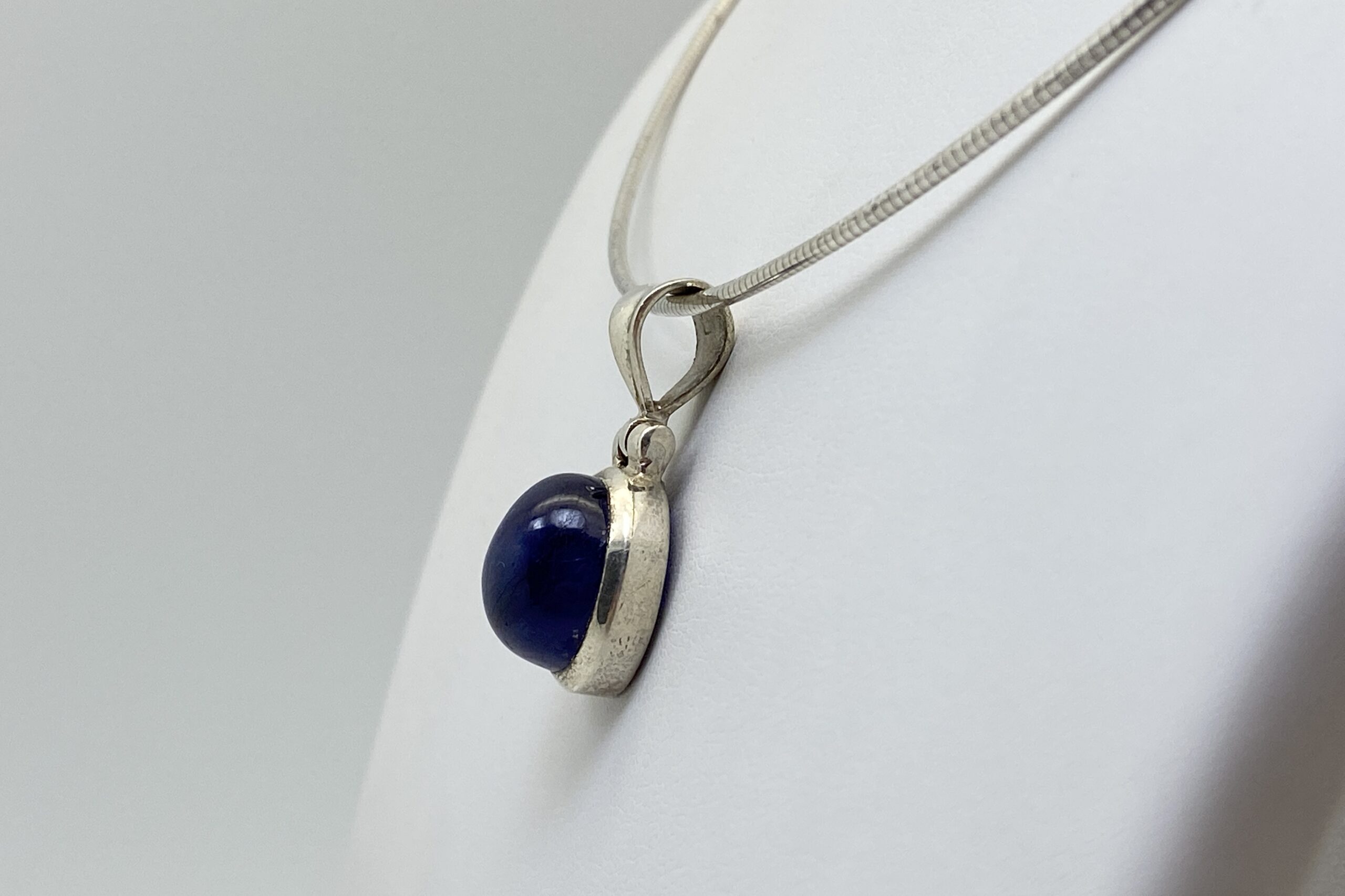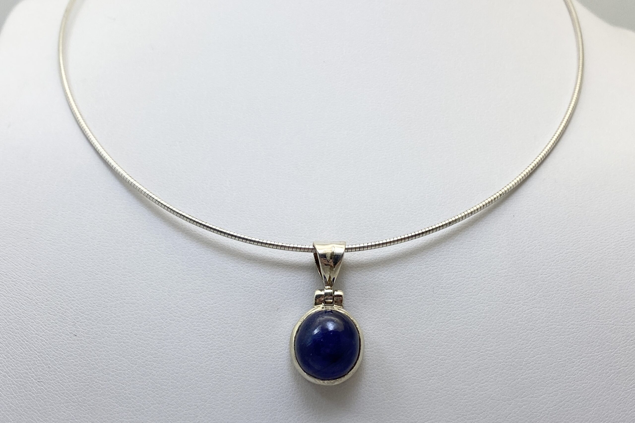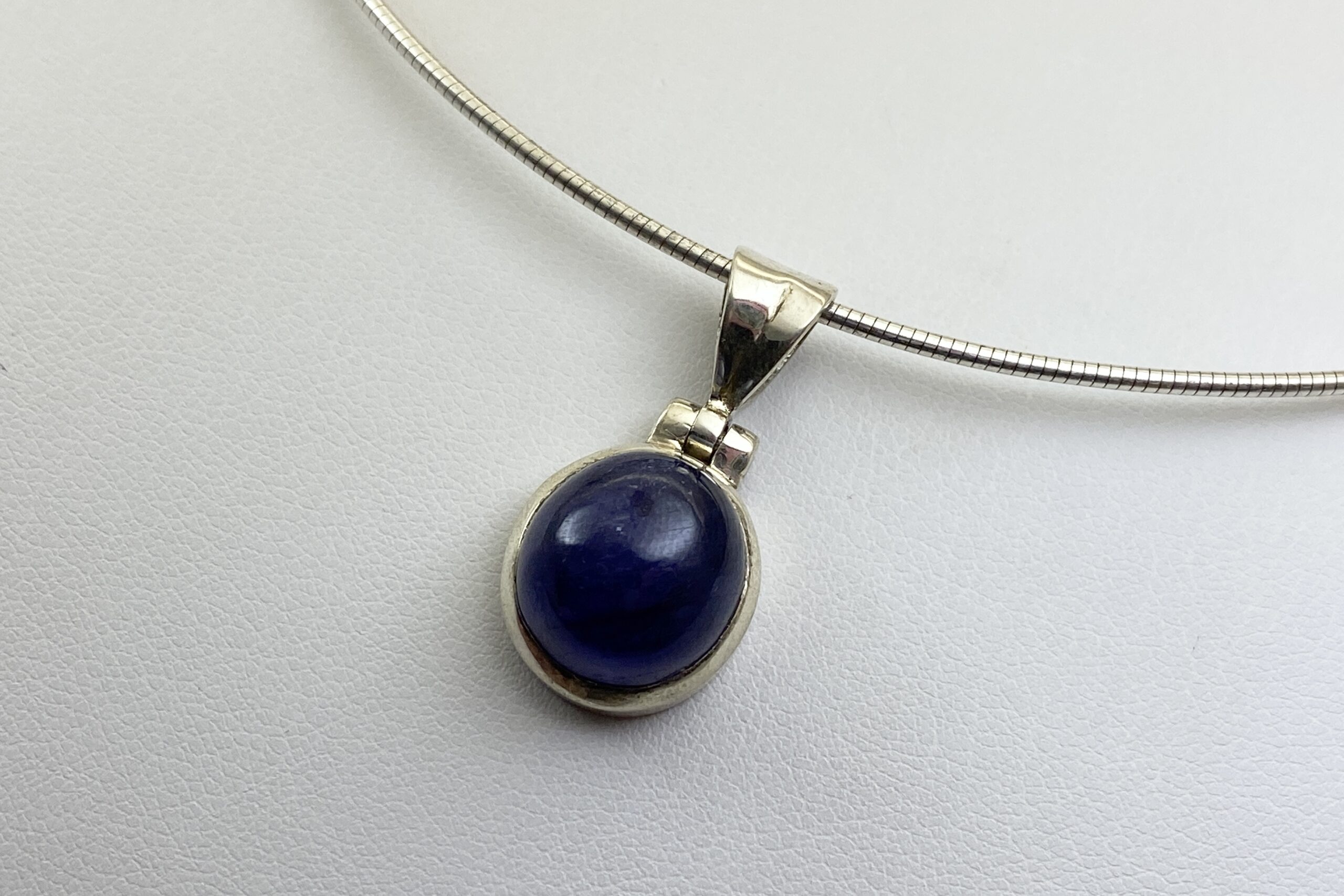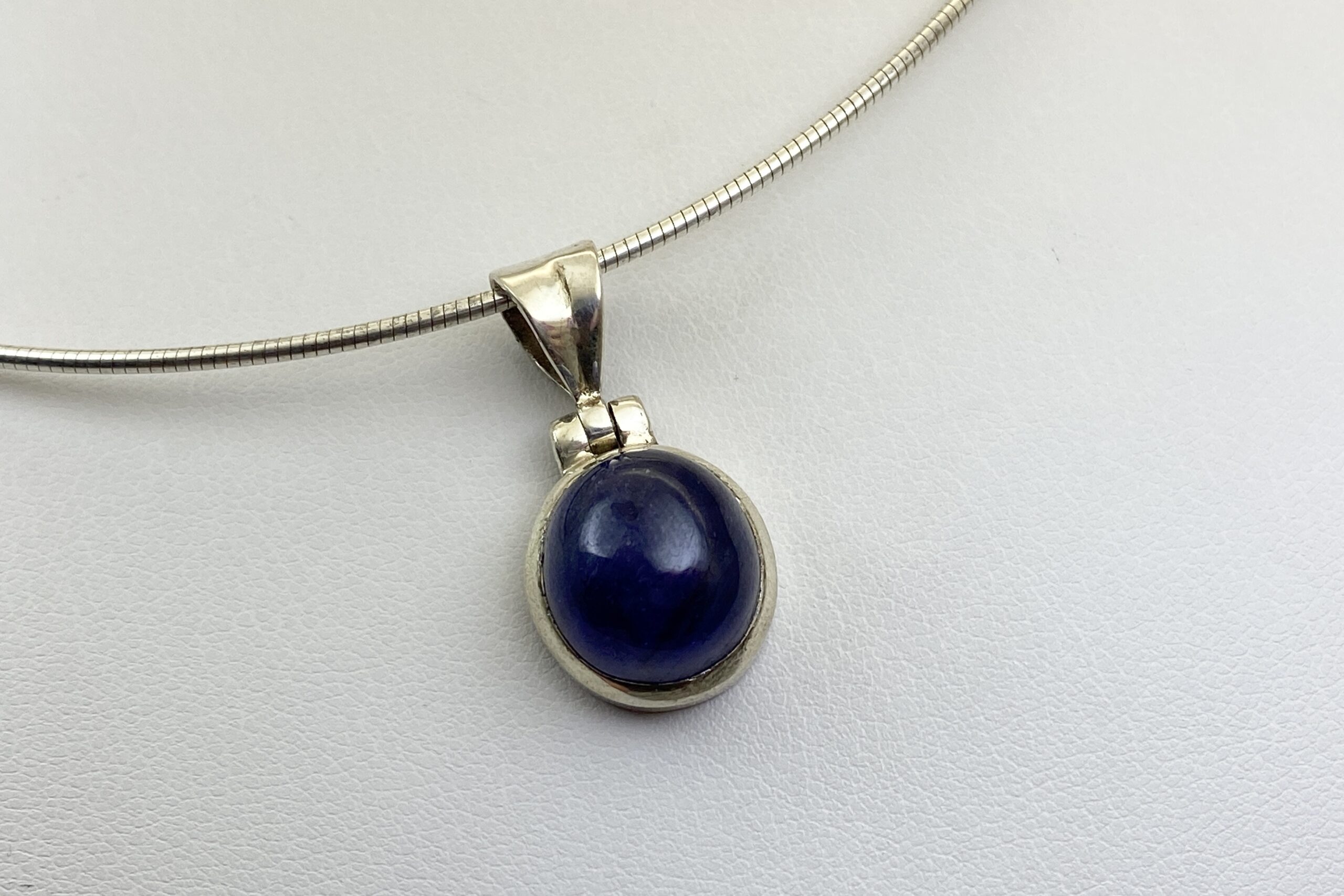Elegantní přívěsek s překrásným tmavě modrým safírem.