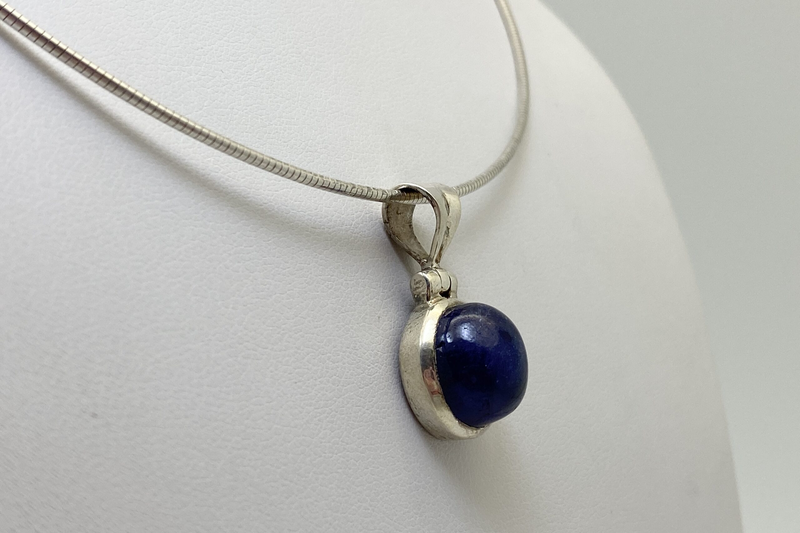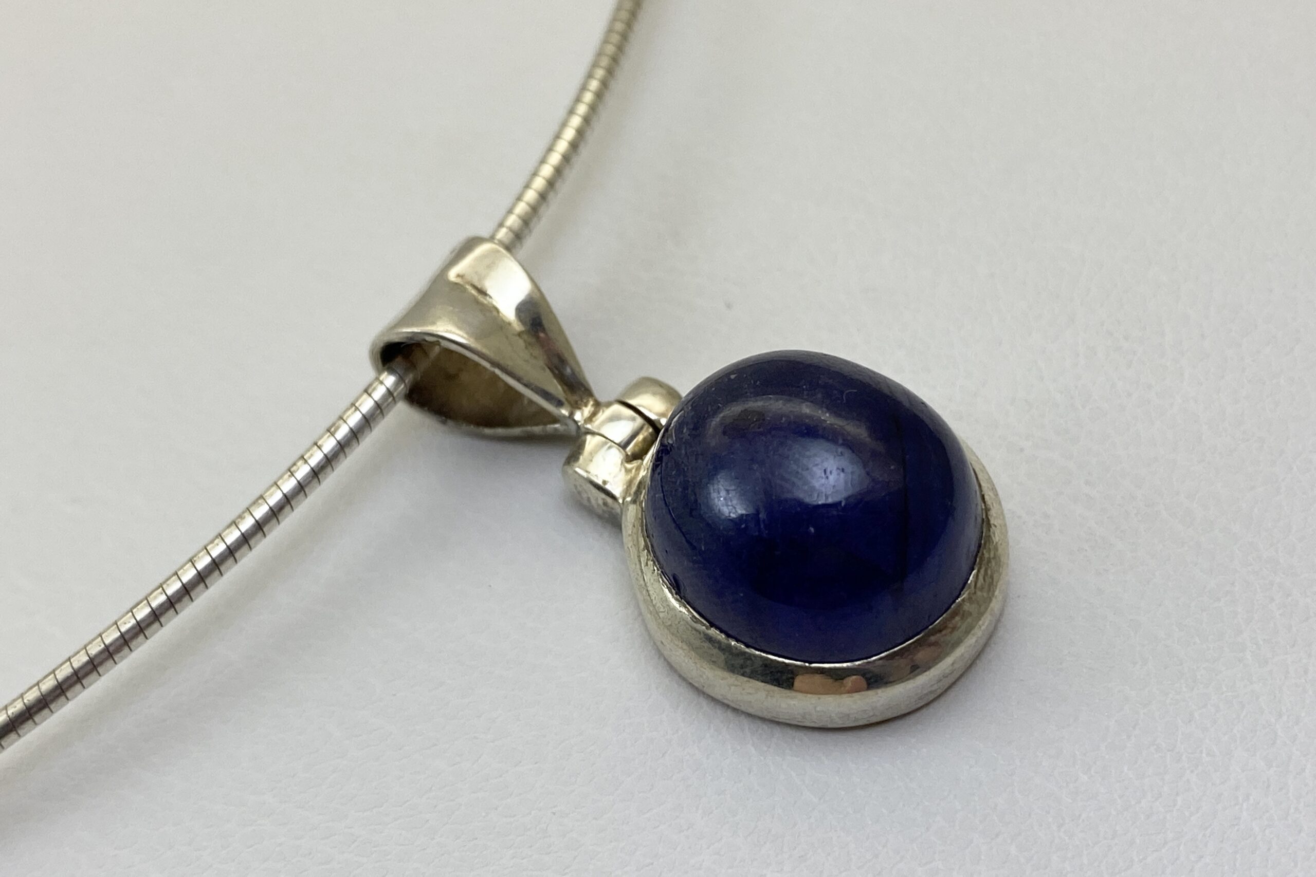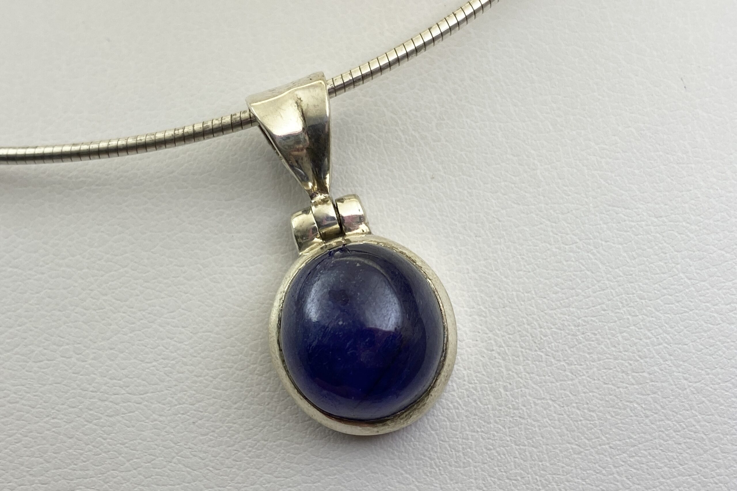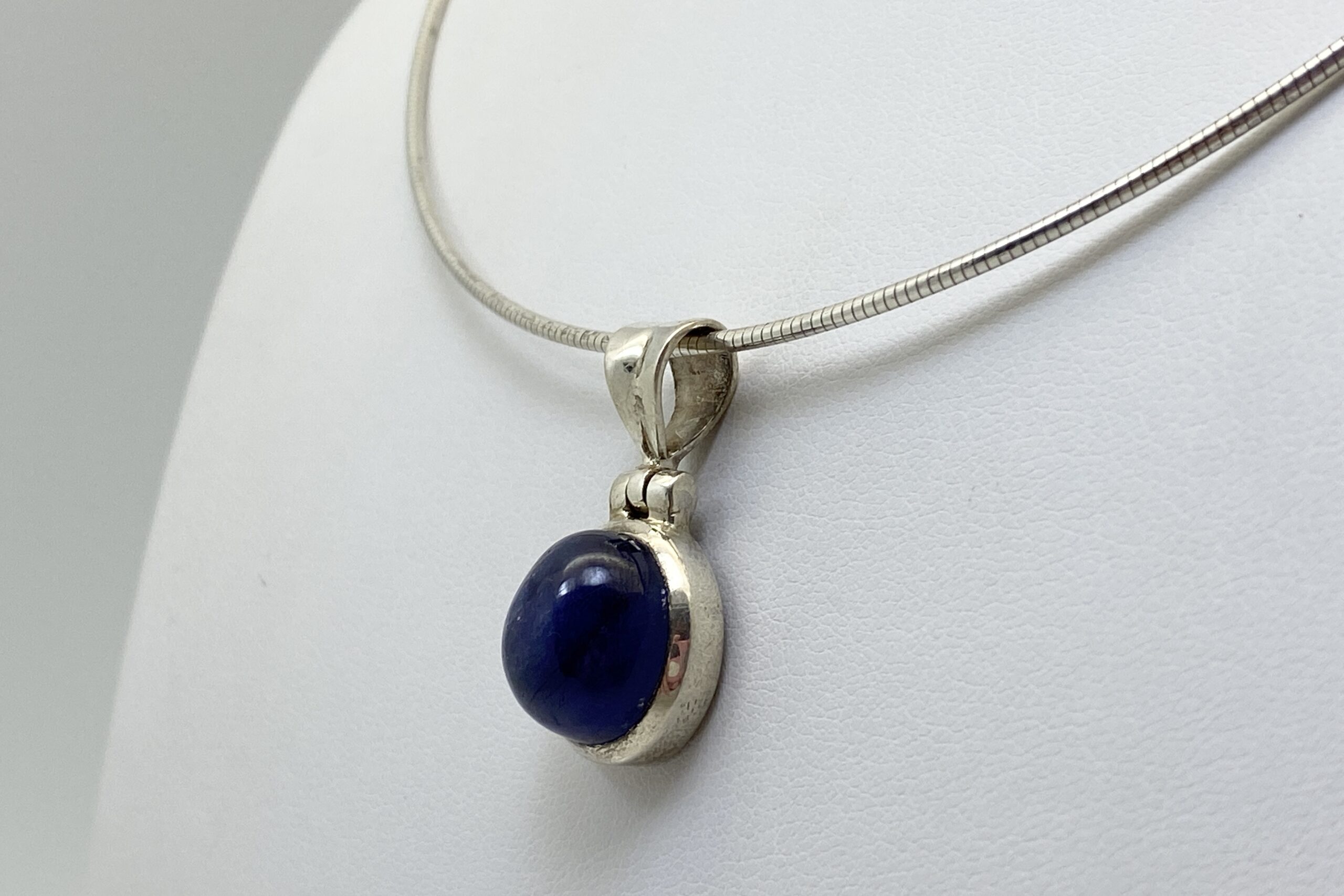 Elegantní přívěsek s překrásným tmavě modrým safírem.