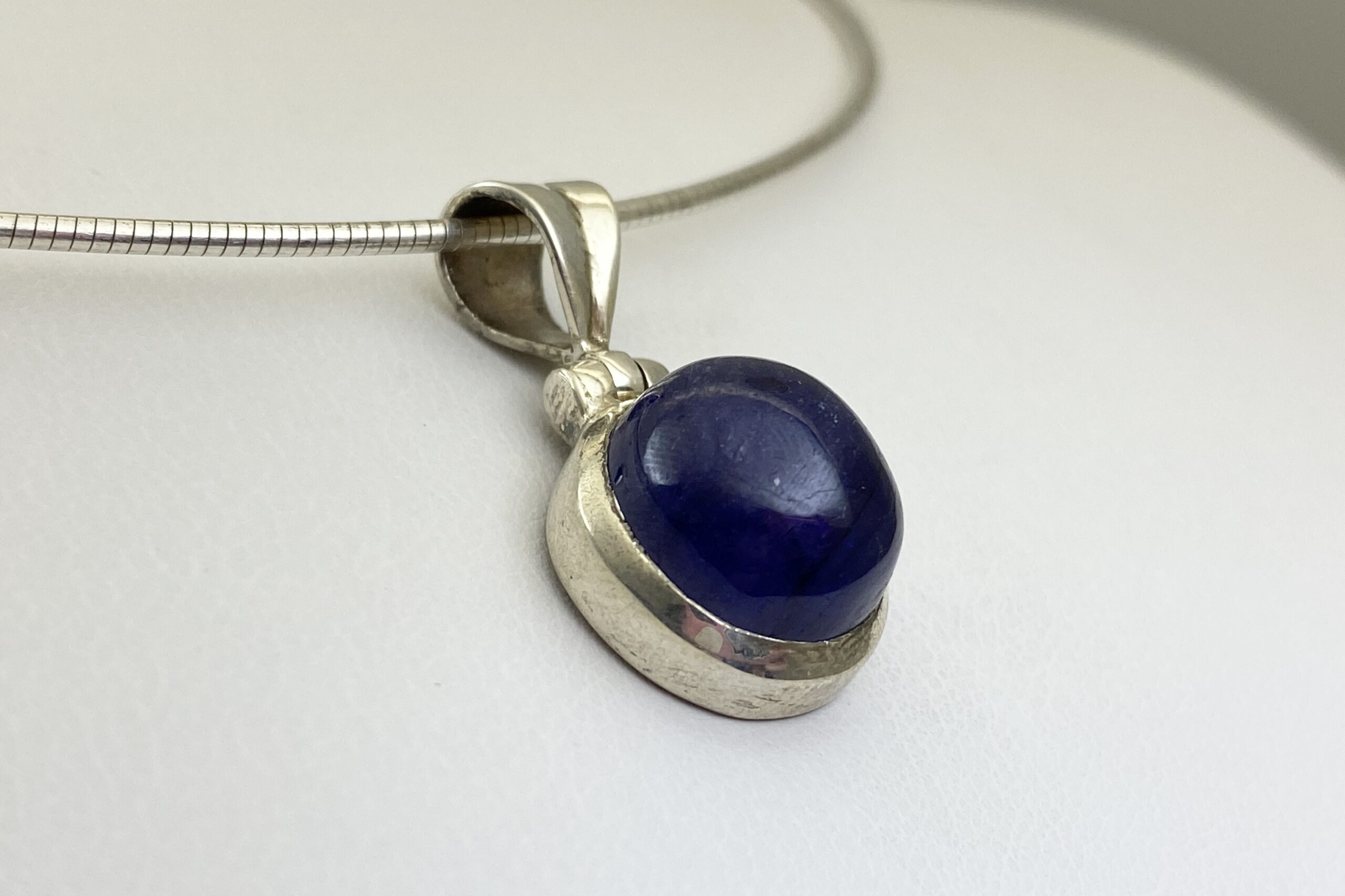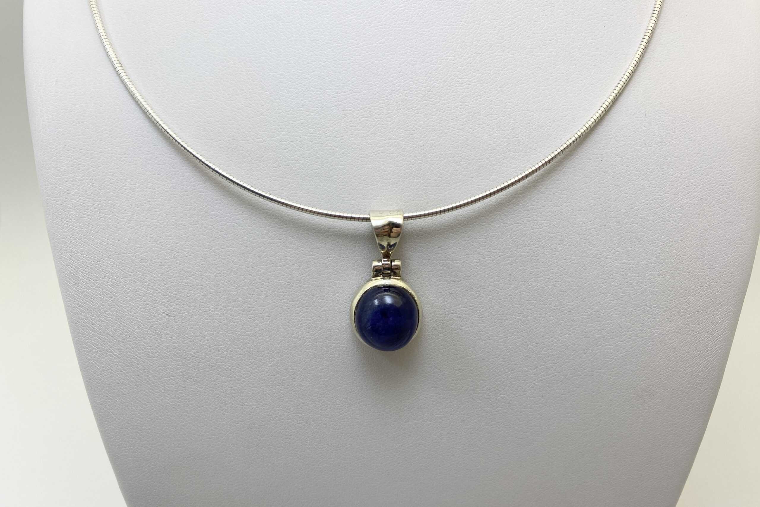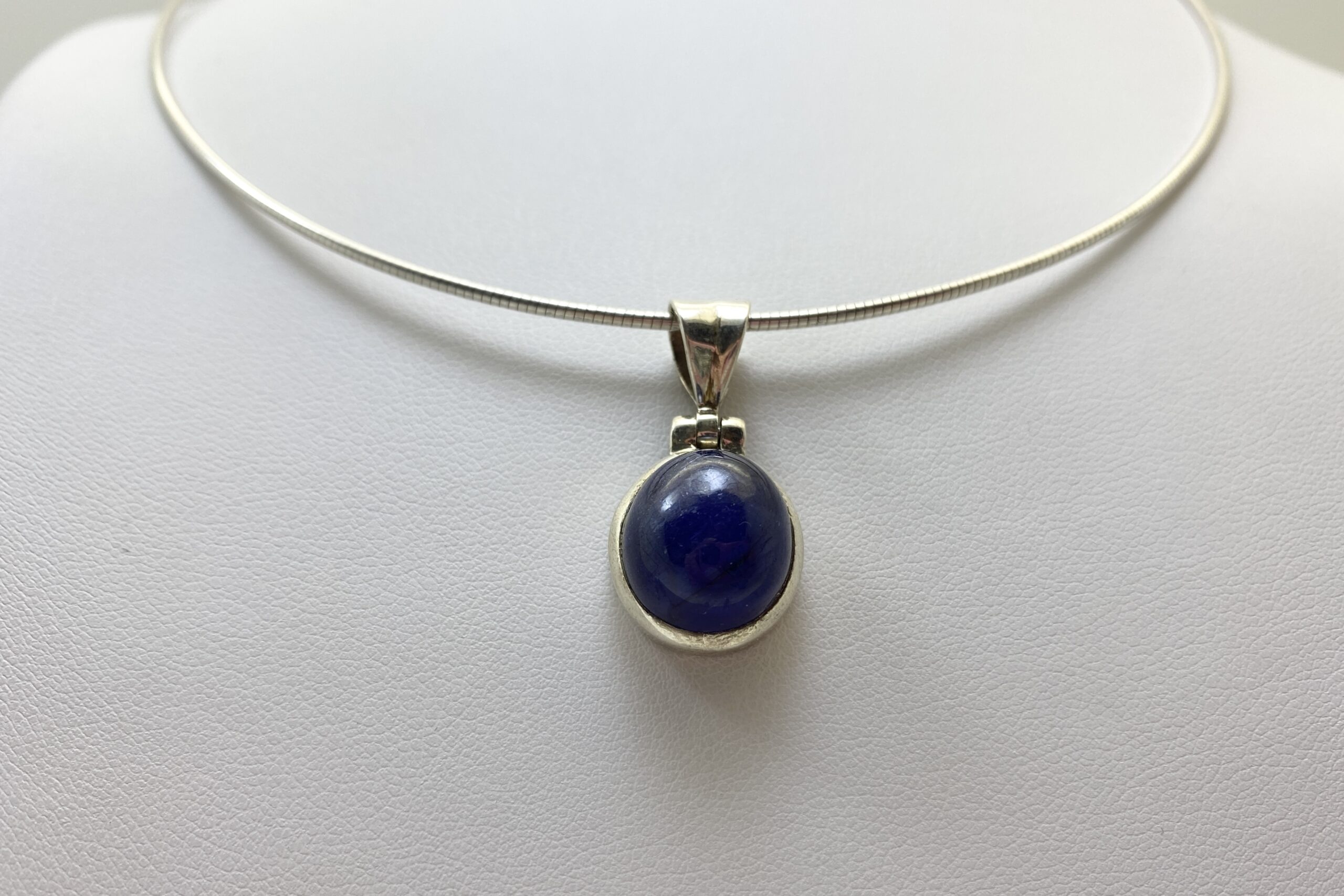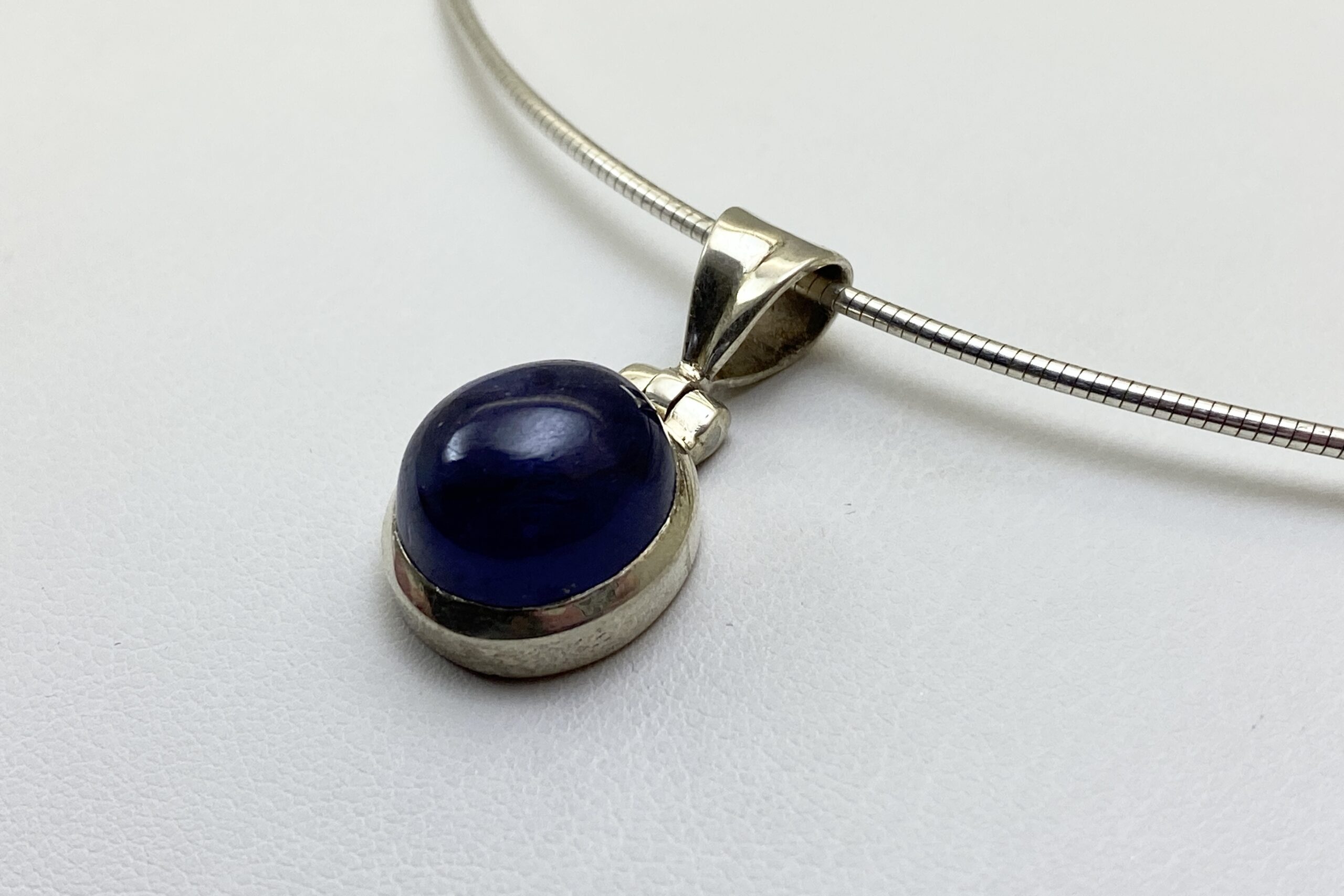 Elegantní přívěsek s překrásným tmavě modrým safírem.