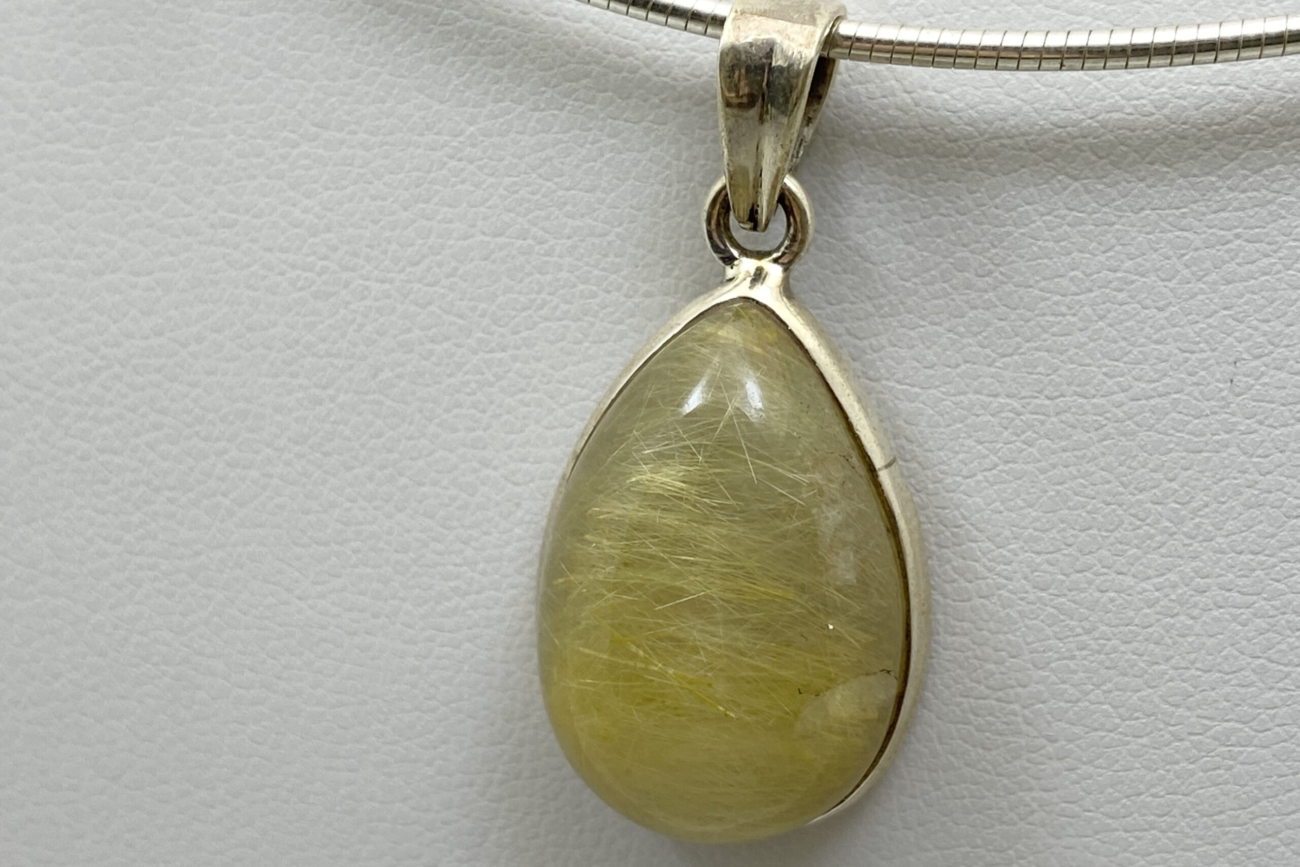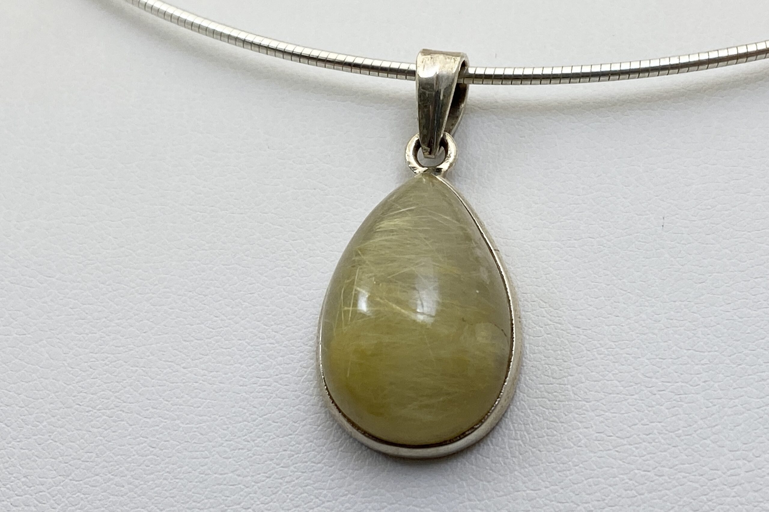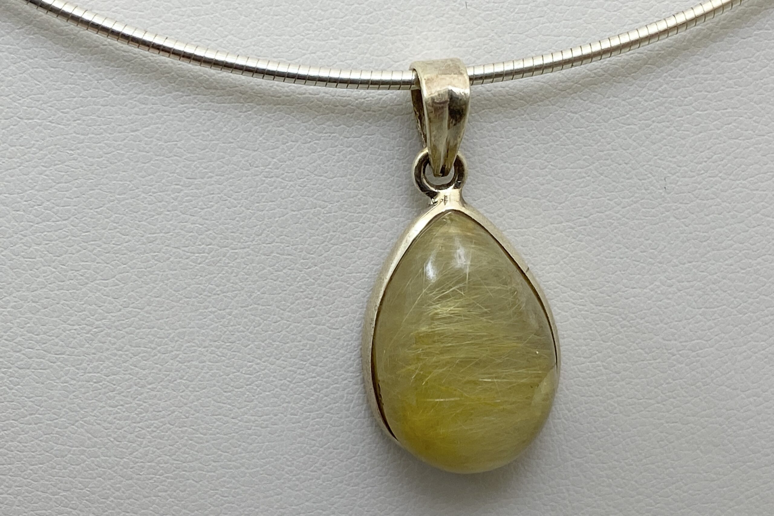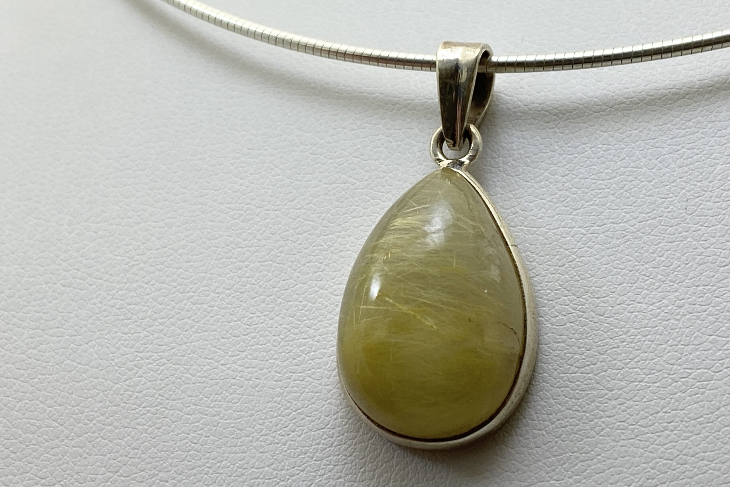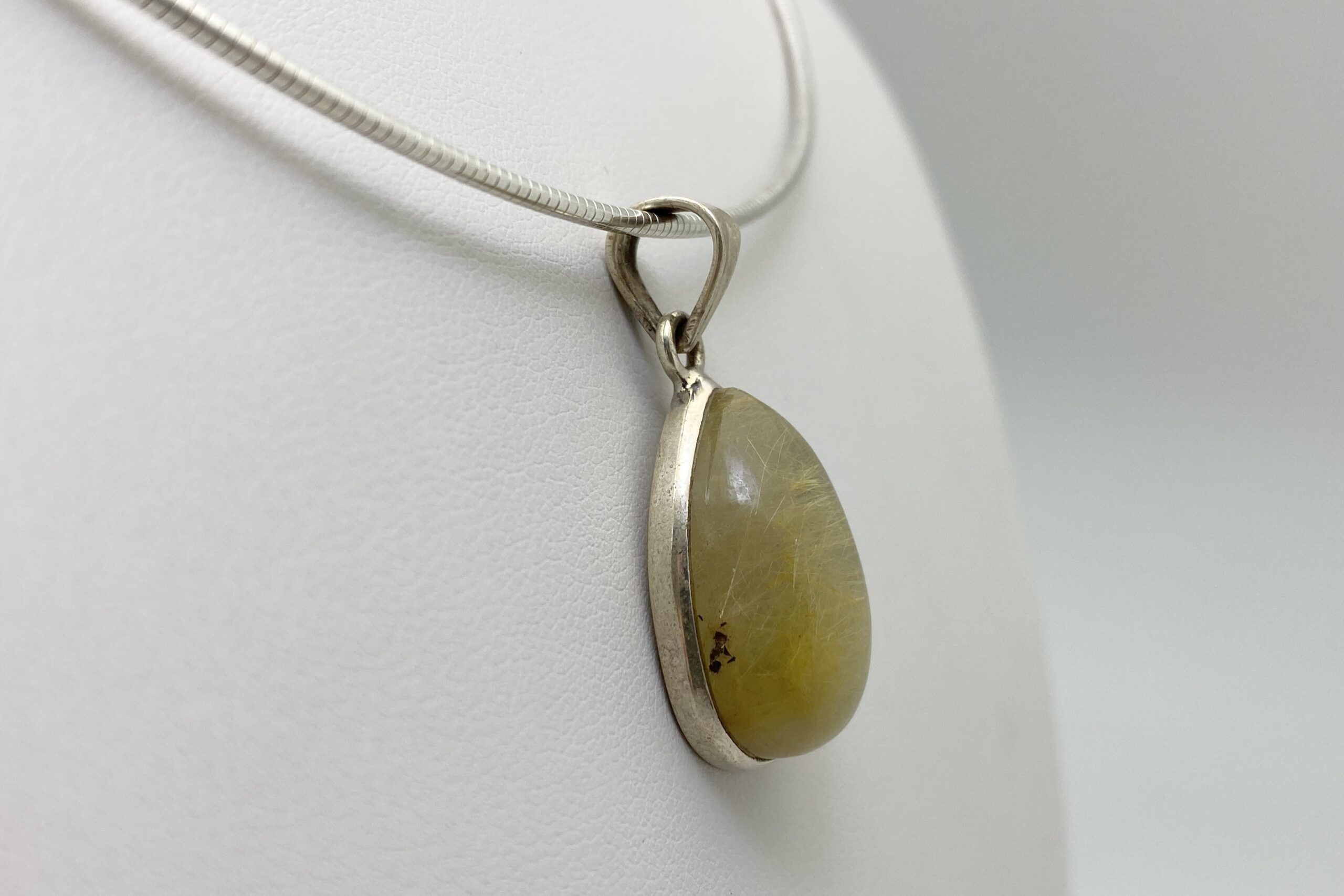 Elegantní přívěsek s krásným kusem sagenitu ve stříbře 925/1000. Rozměry kamene jsou 22 x 15 x 9 mm. Celková hmotnost šperku 6,35 g.