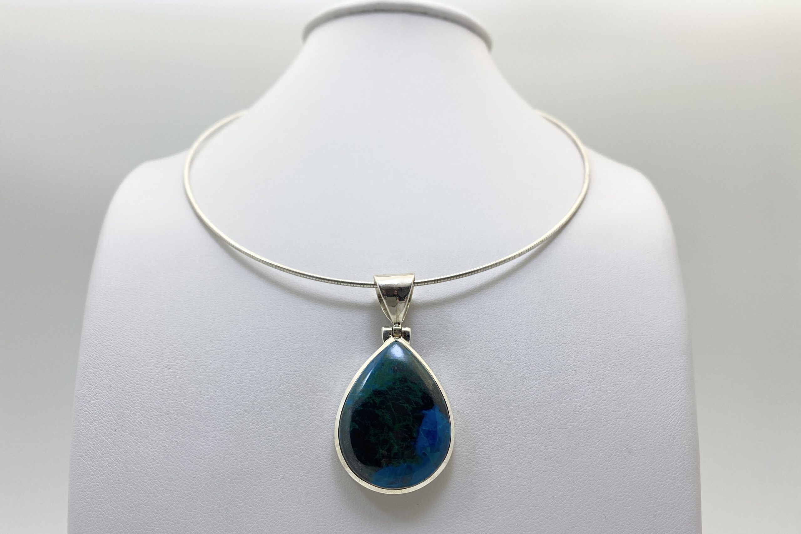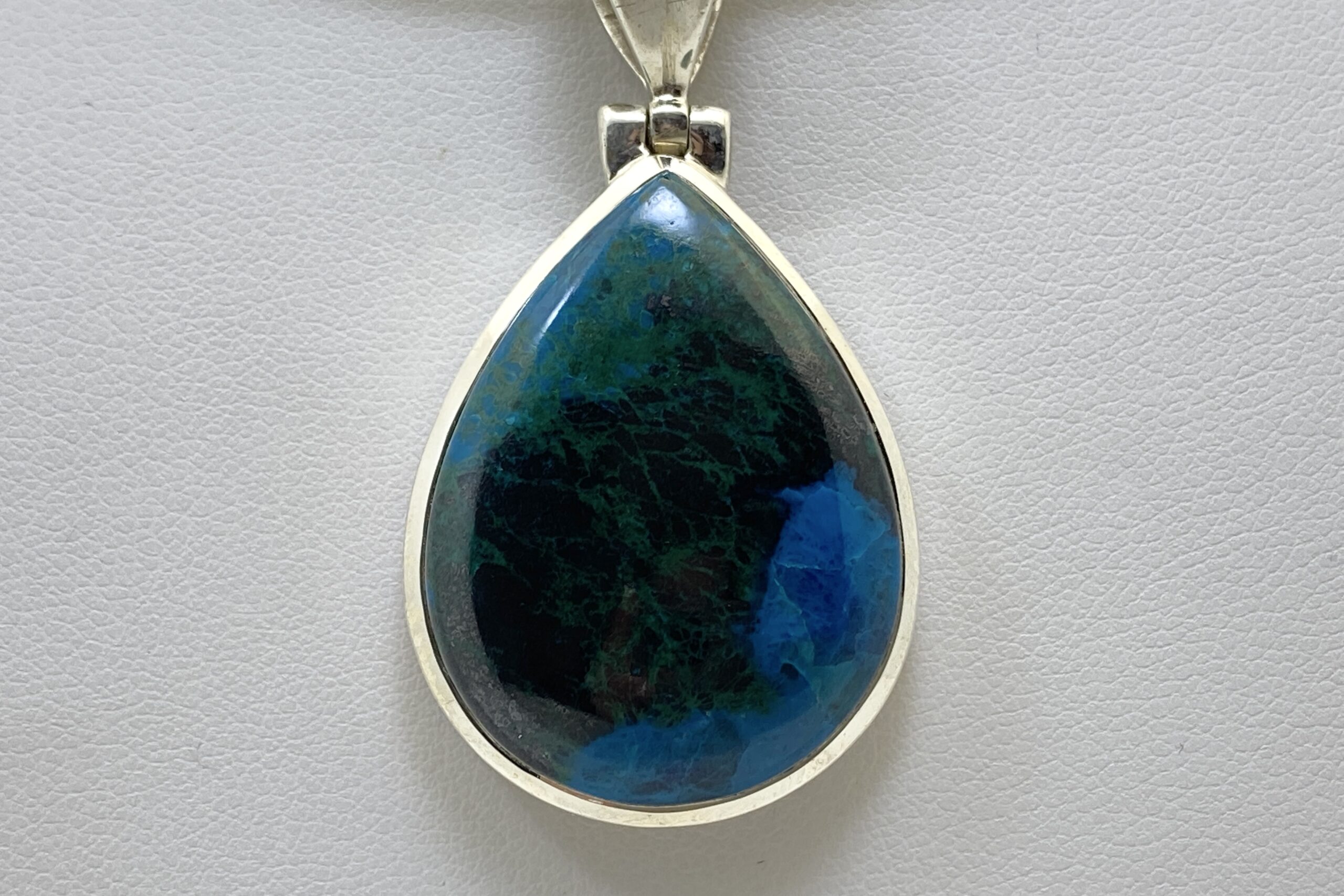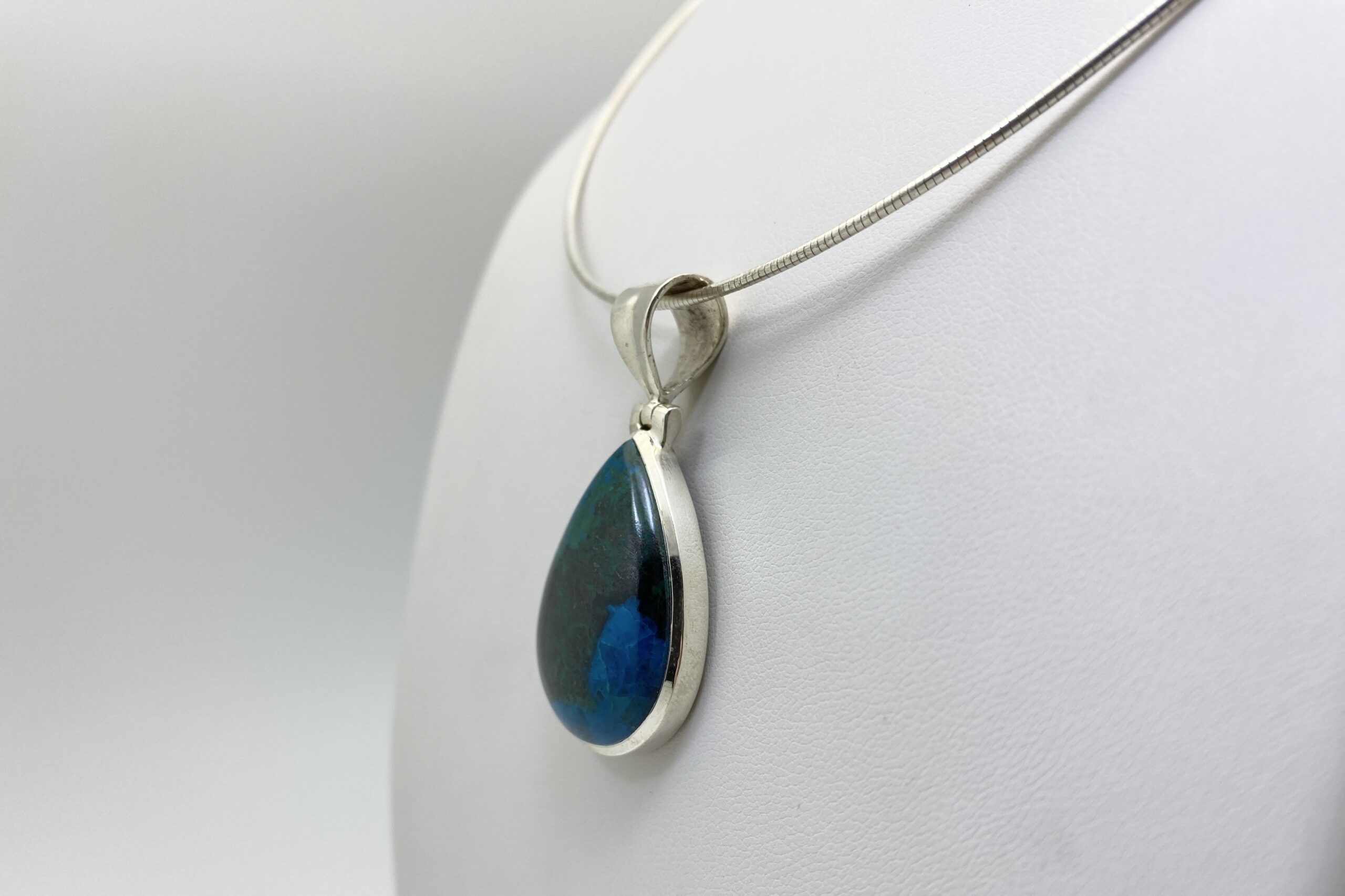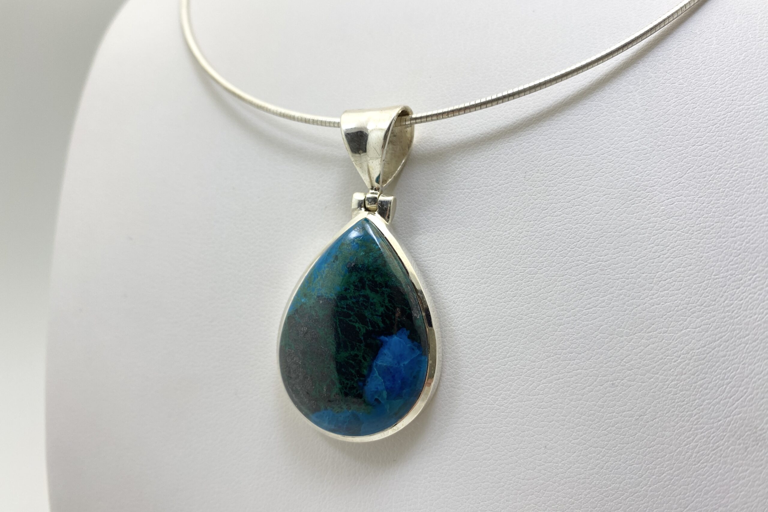 Přívěšek z nádherně modrého shattuckitu – vzácného minerálu mědi.