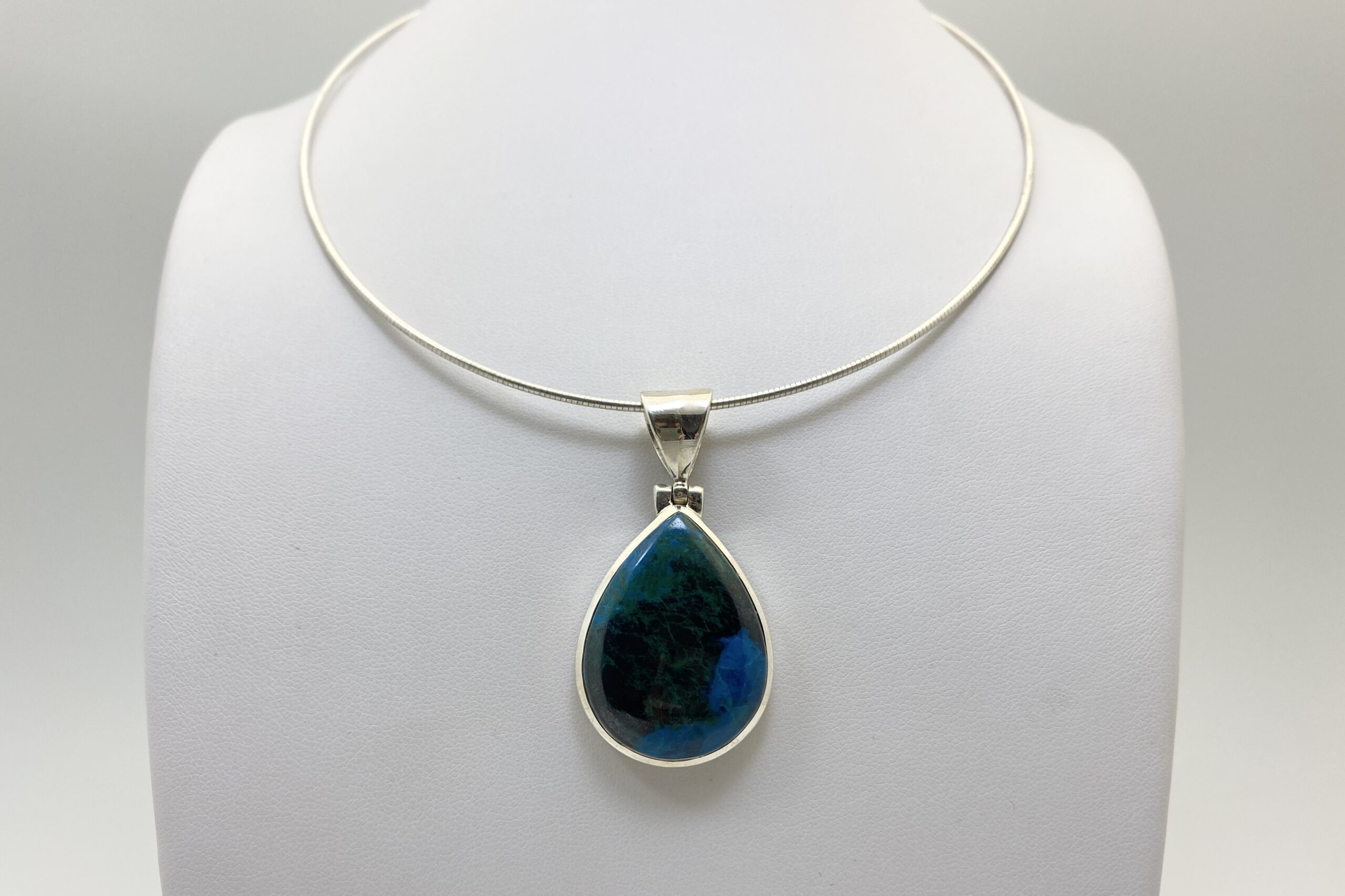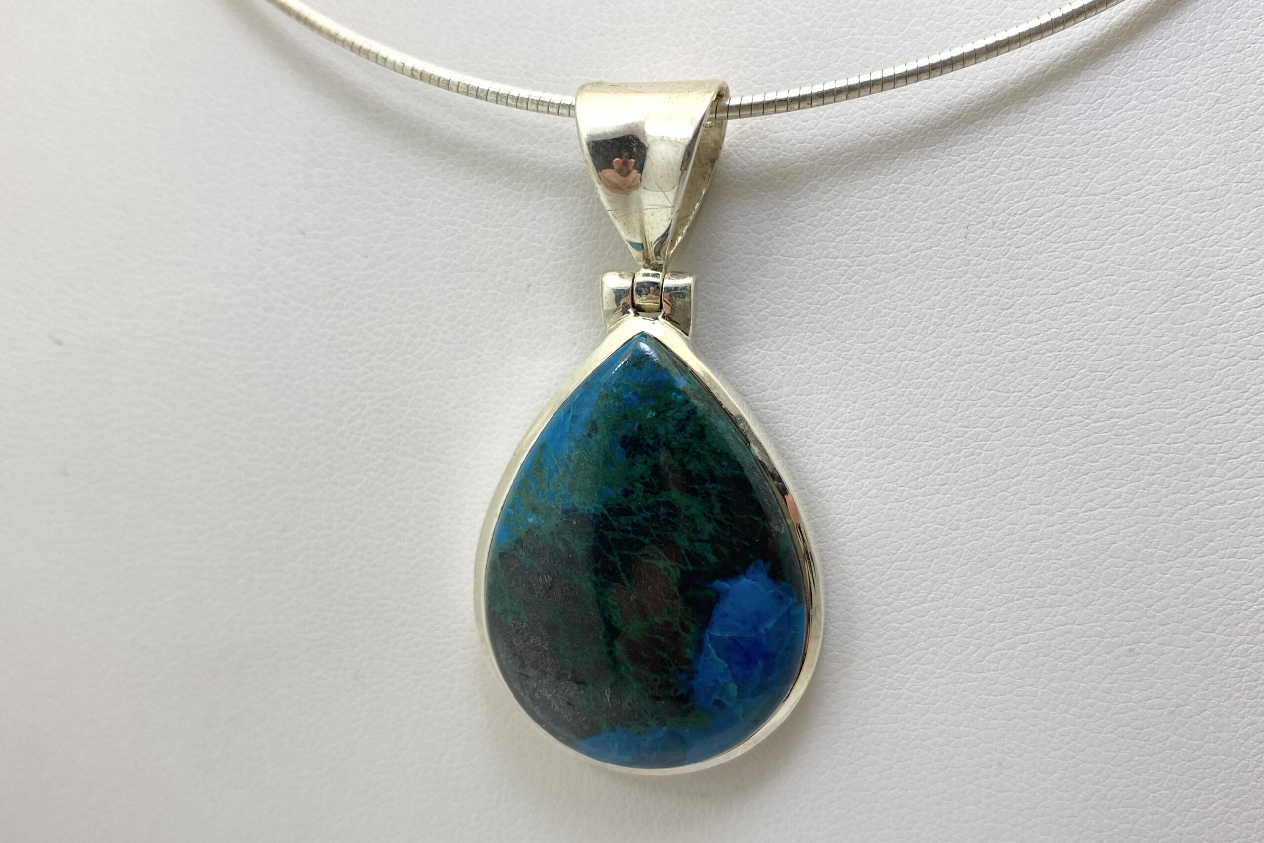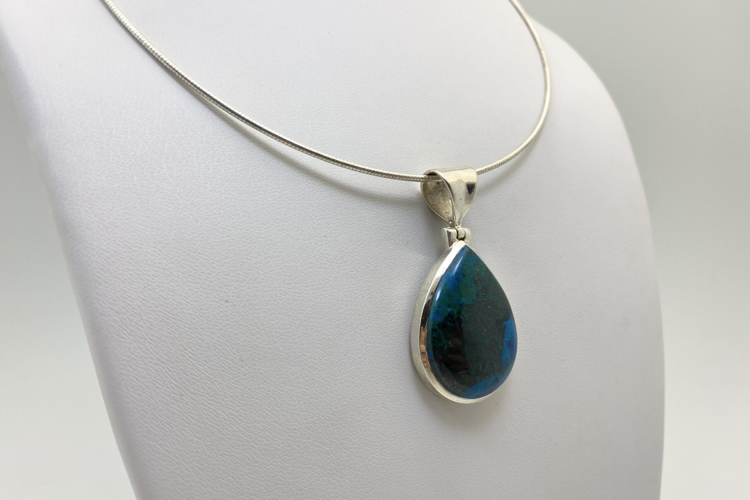 Přívěšek z nádherně modrého shattuckitu – vzácného minerálu mědi.