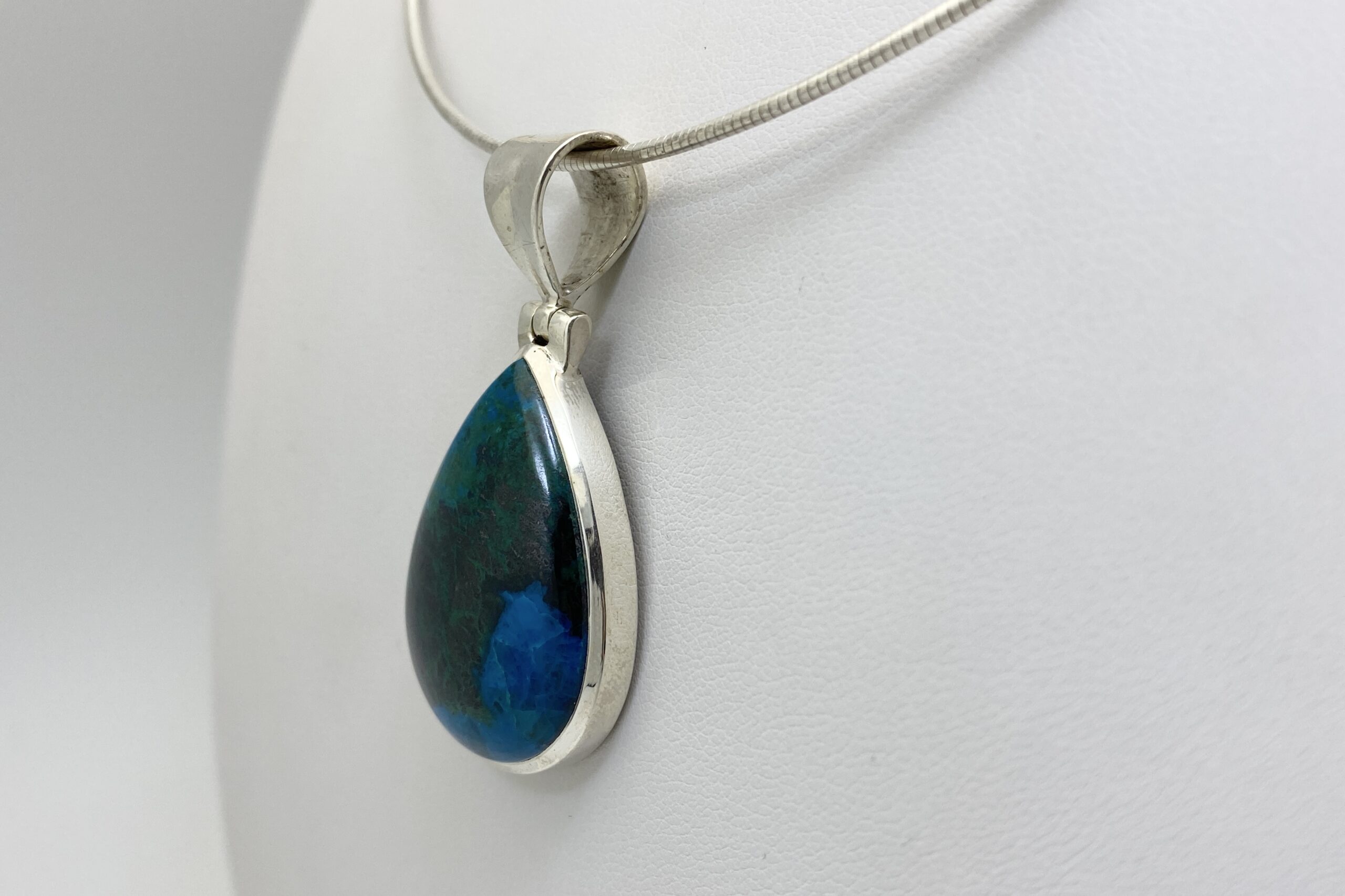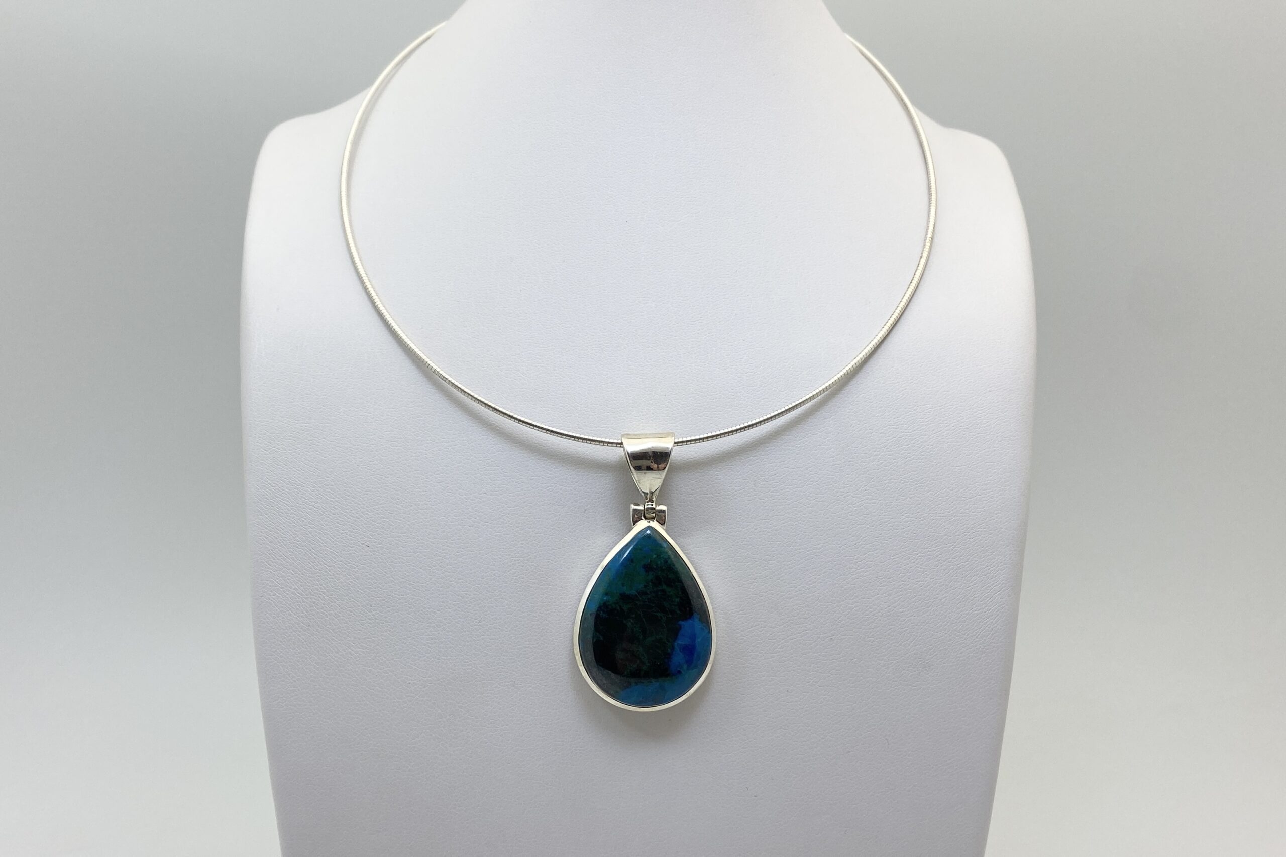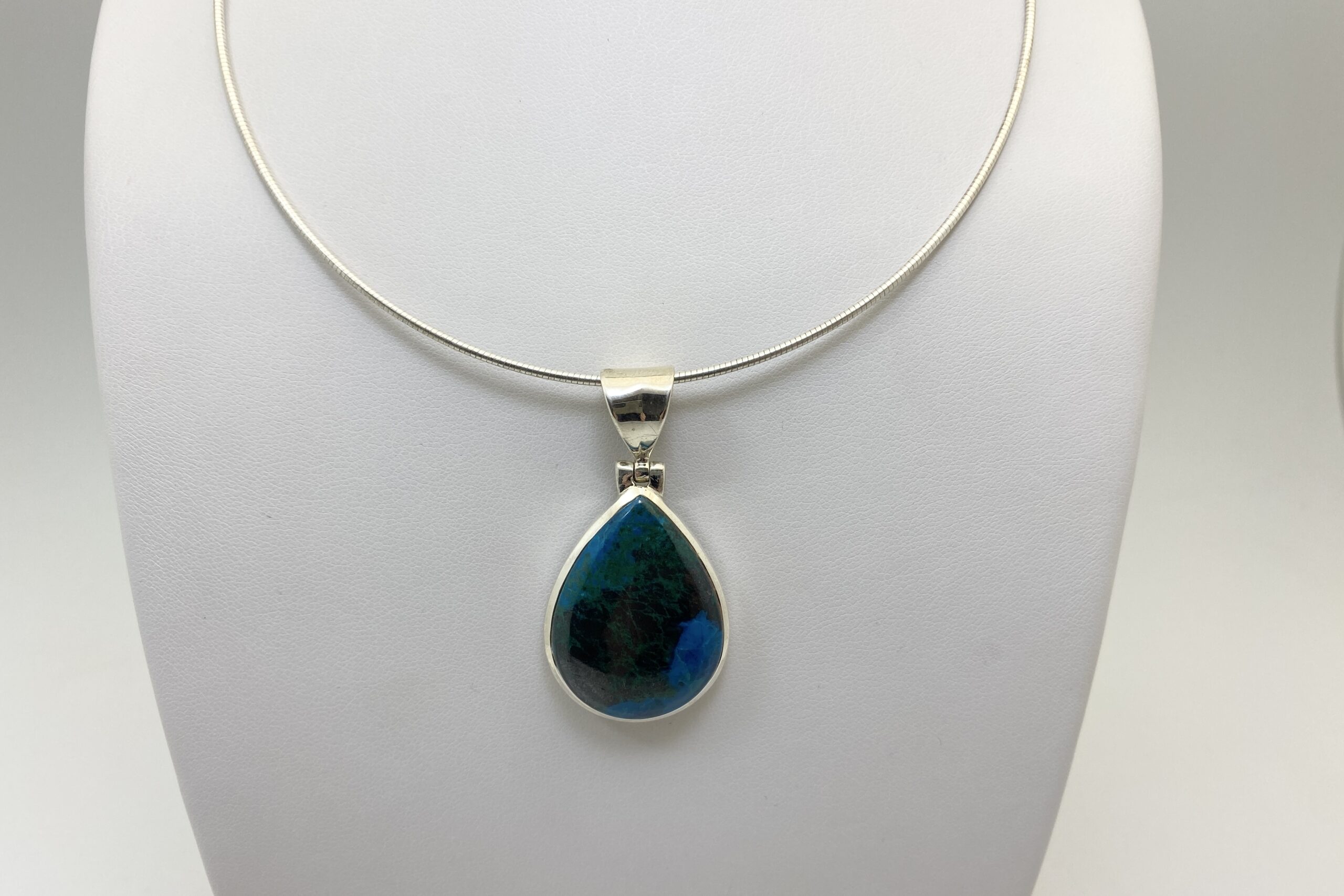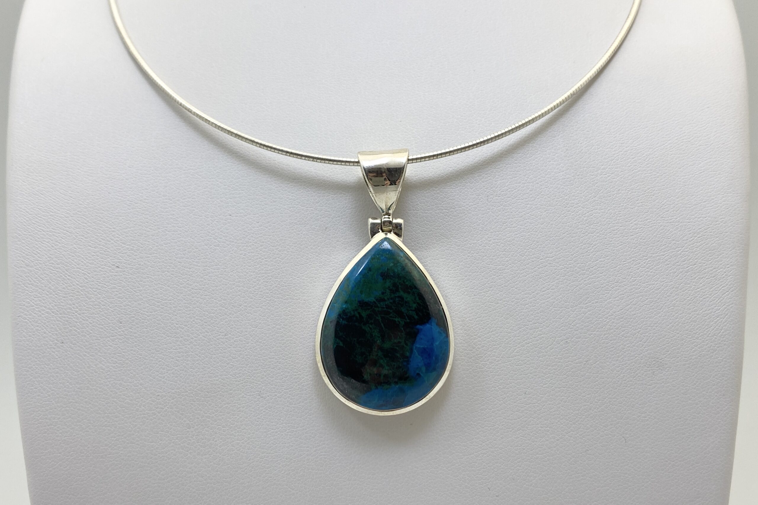 Přívěšek z nádherně modrého shattuckitu – vzácného minerálu mědi.