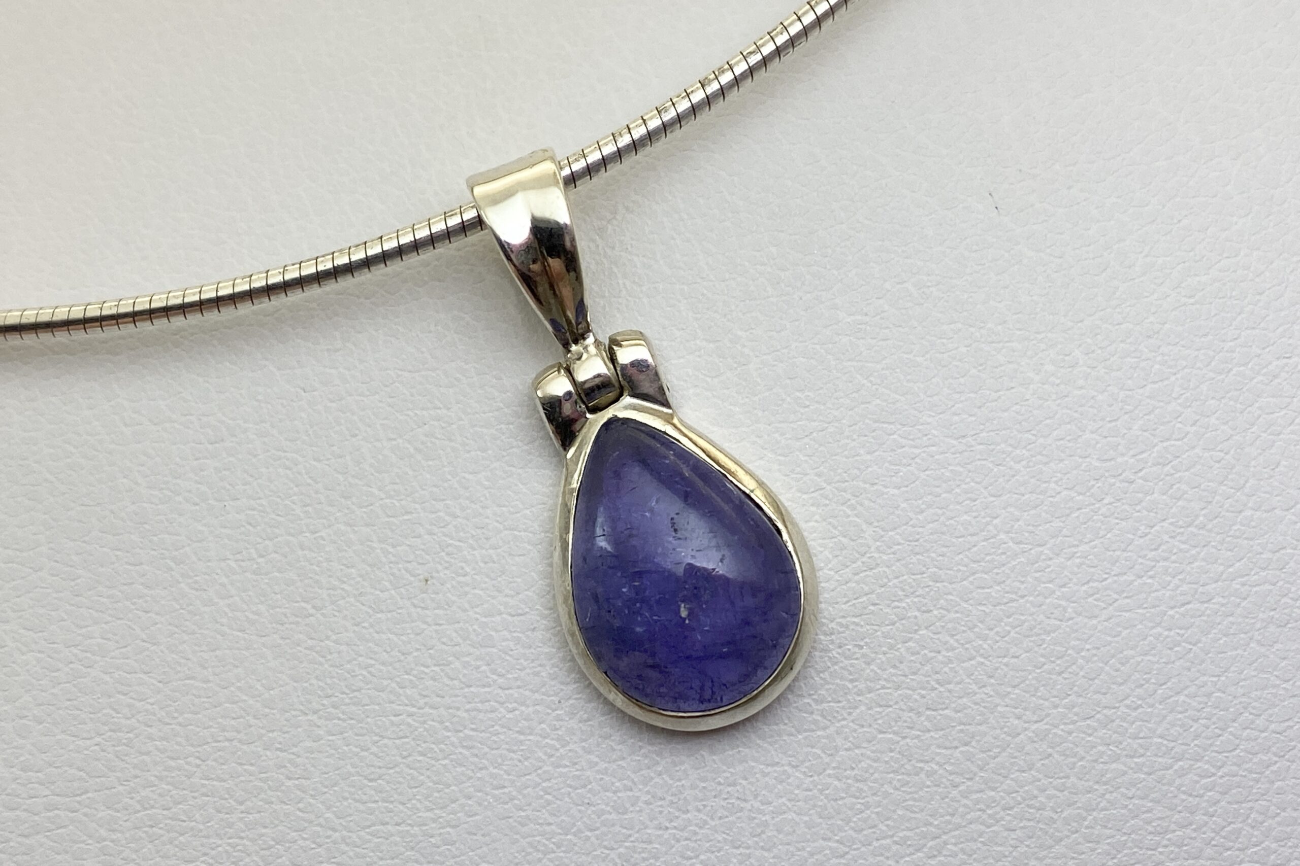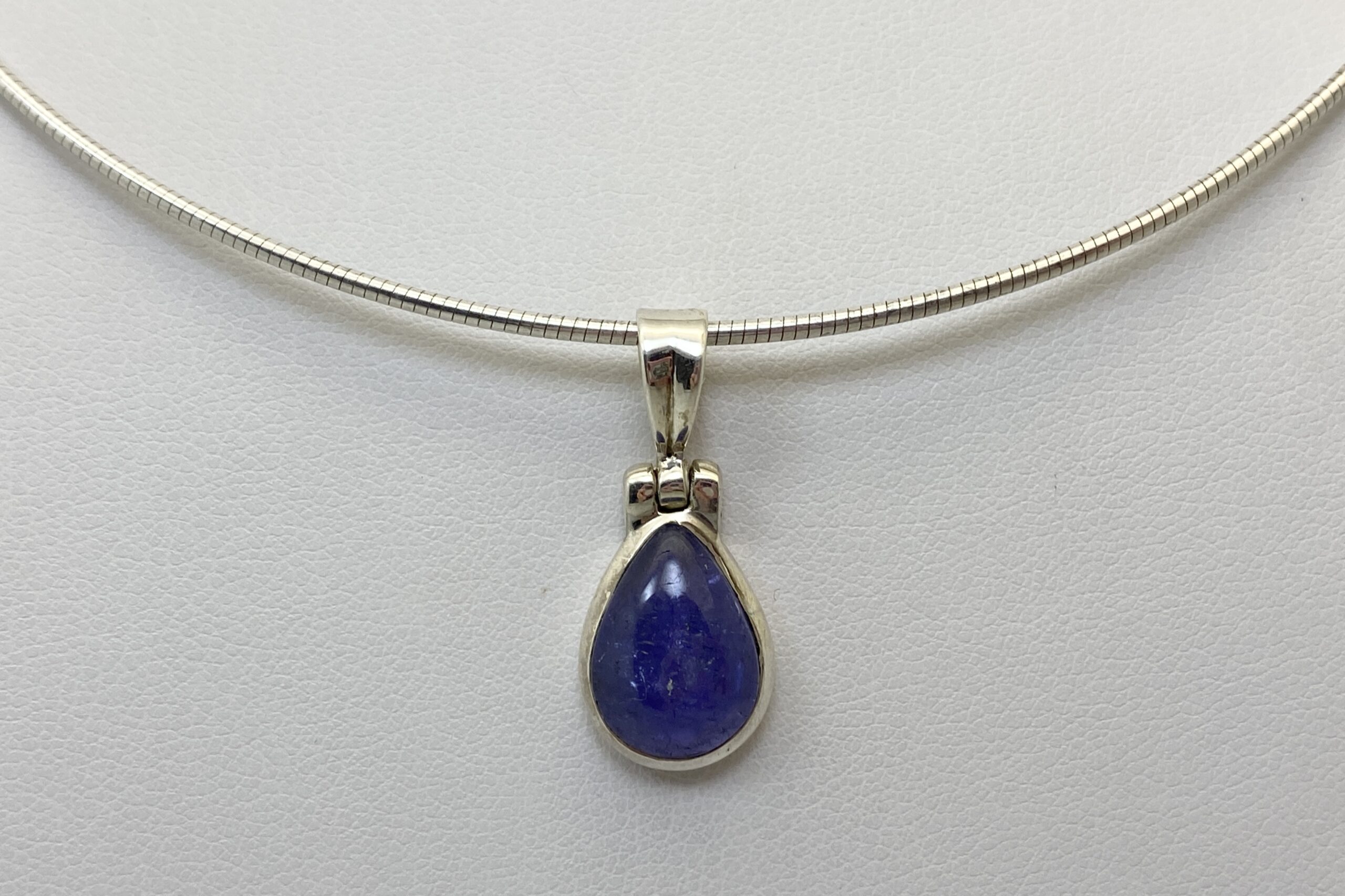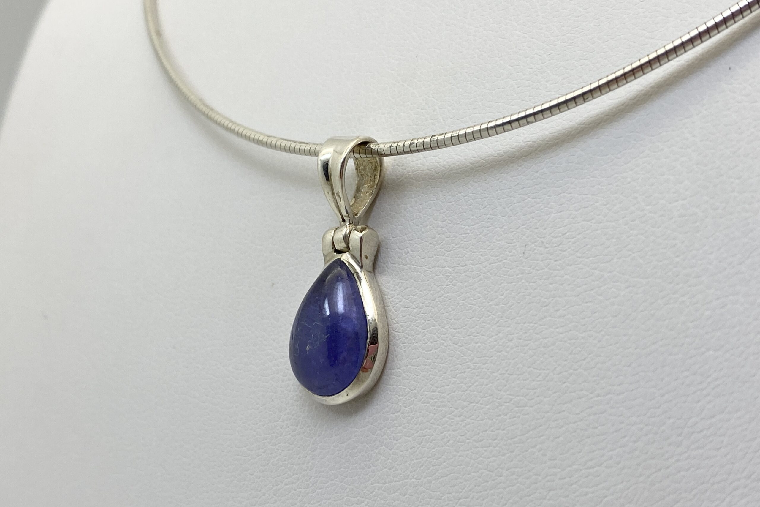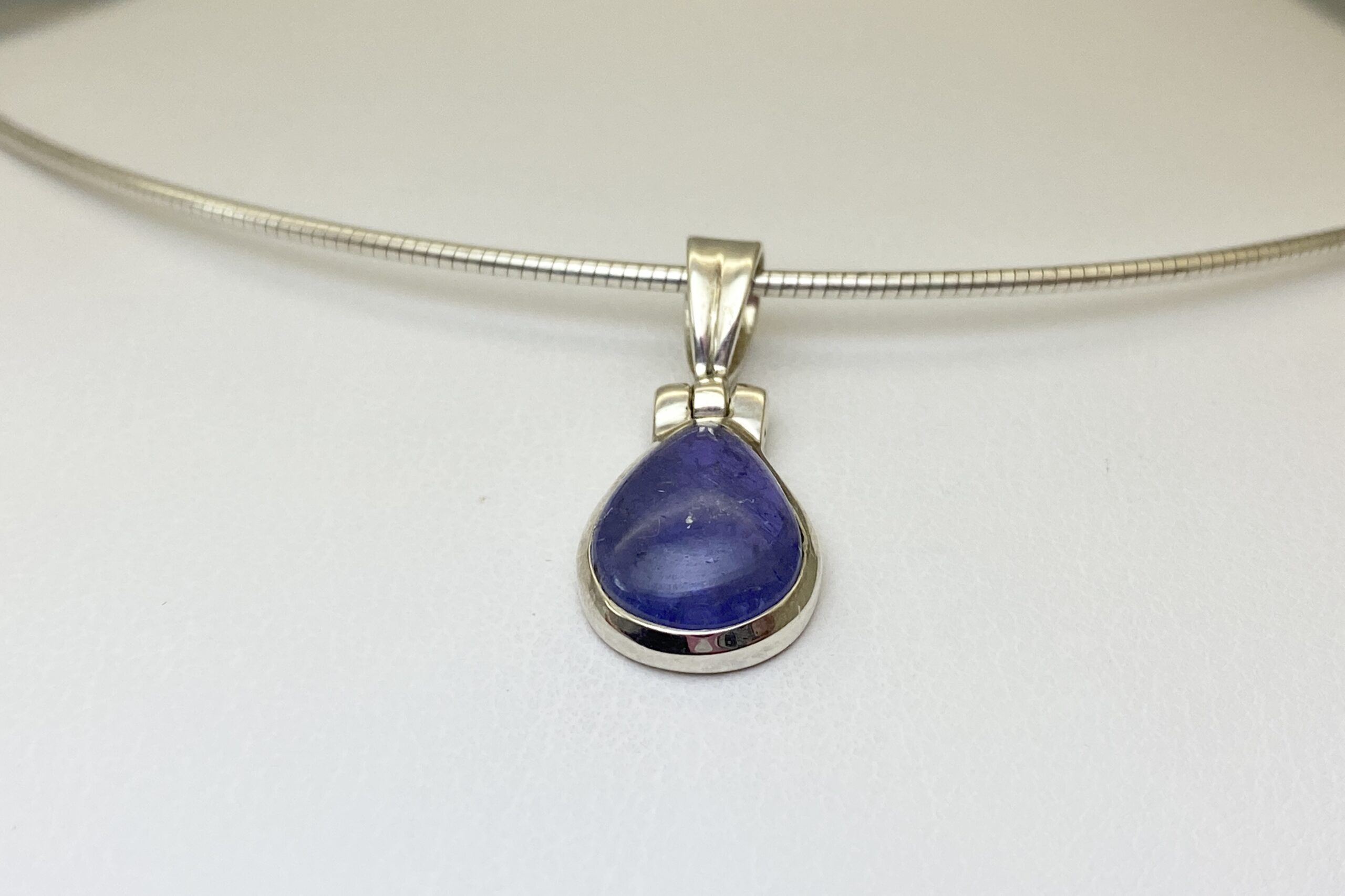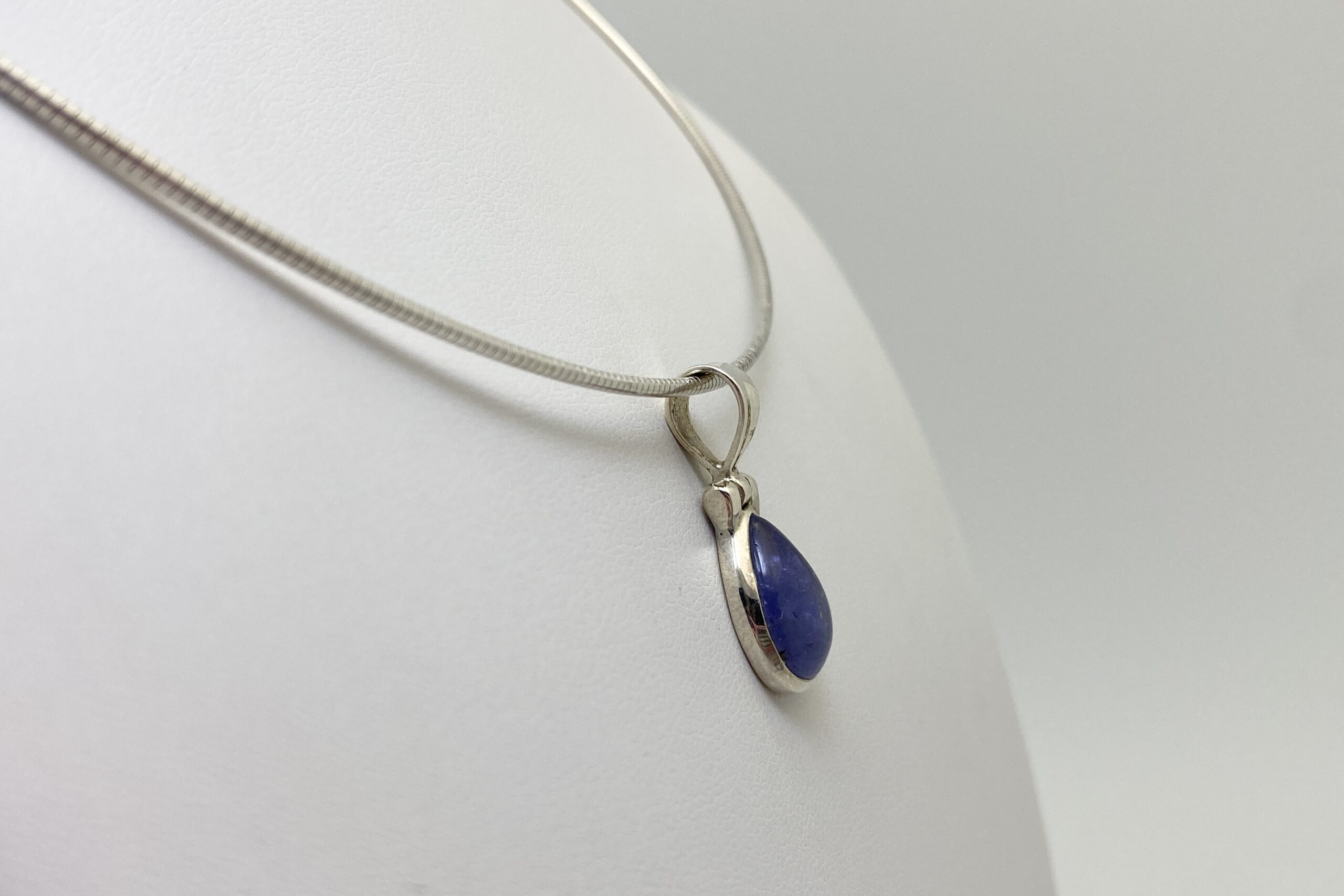 Elegantní přívěsek s kabošonem ve tvaru kapky z krásně modrého tanzanitu.