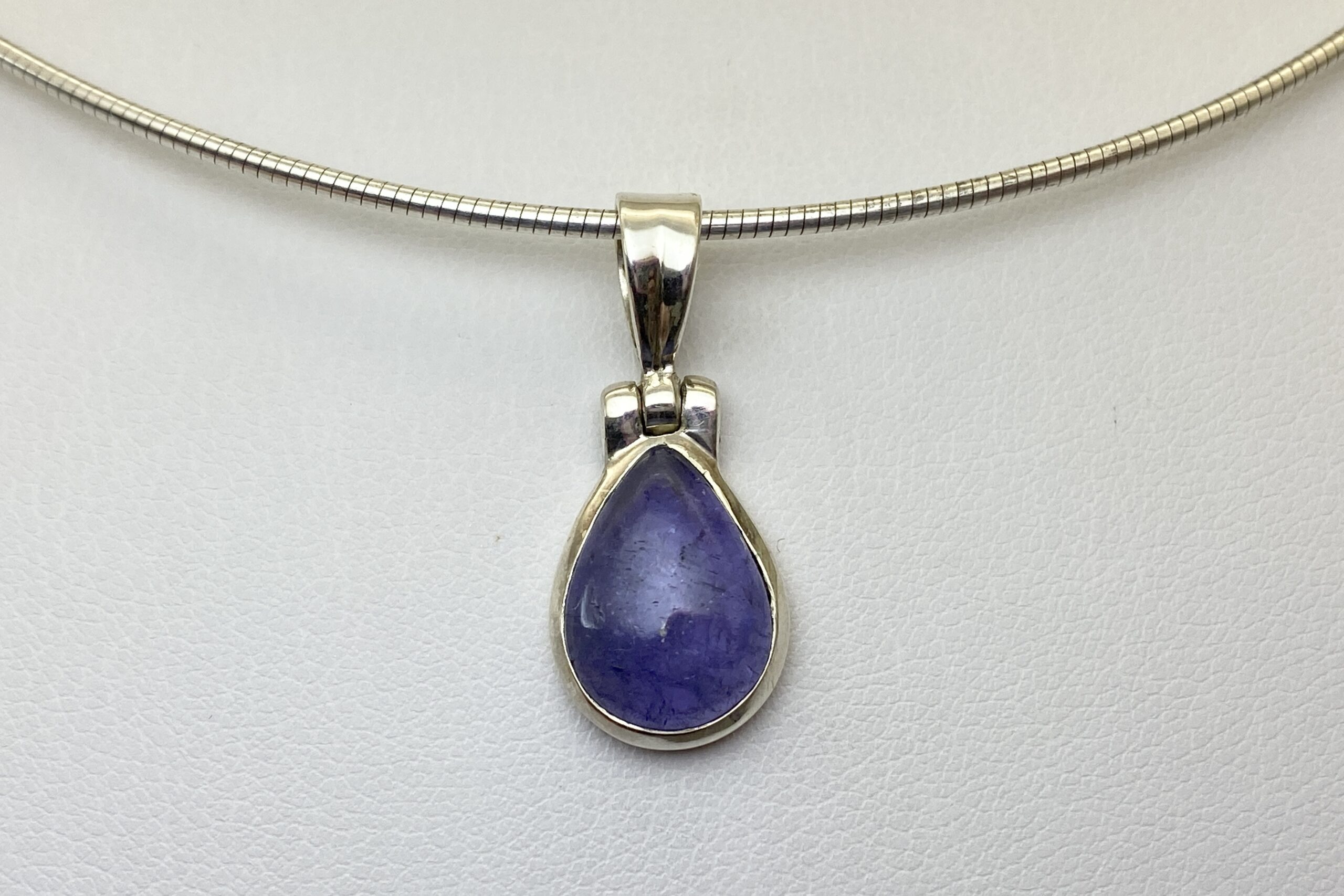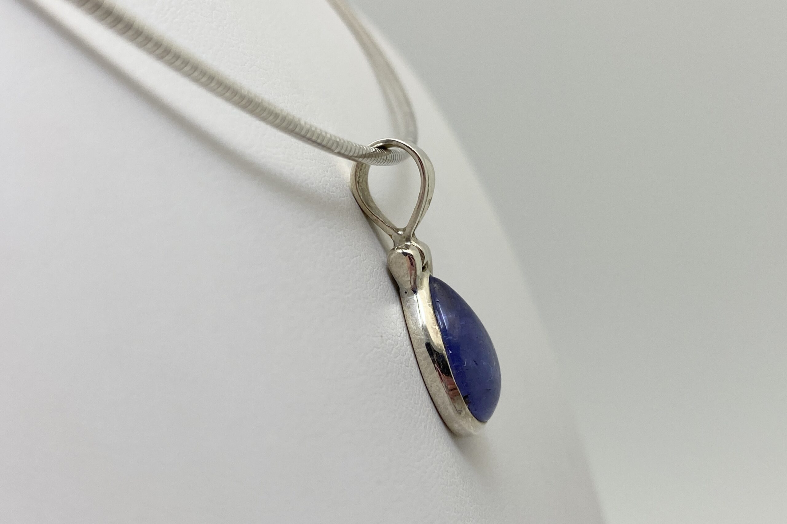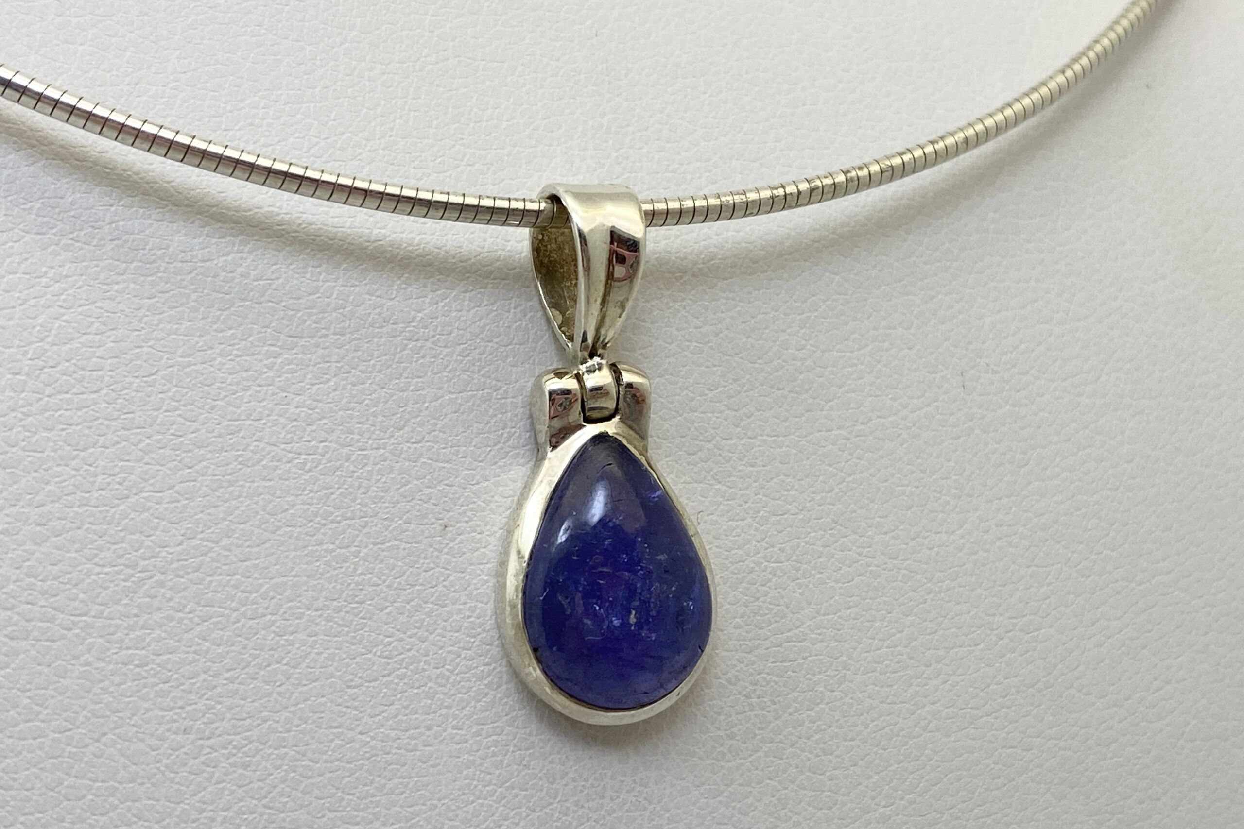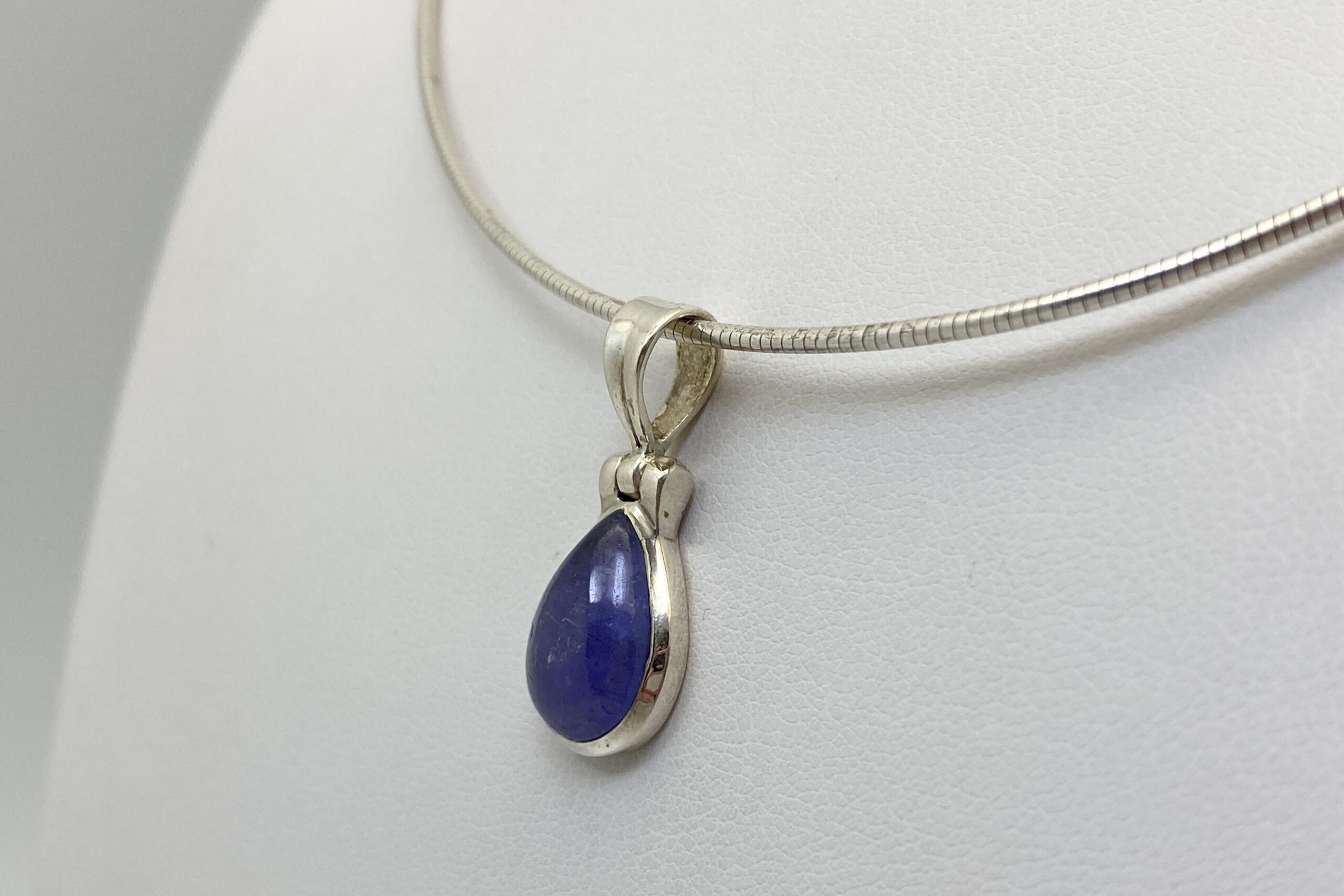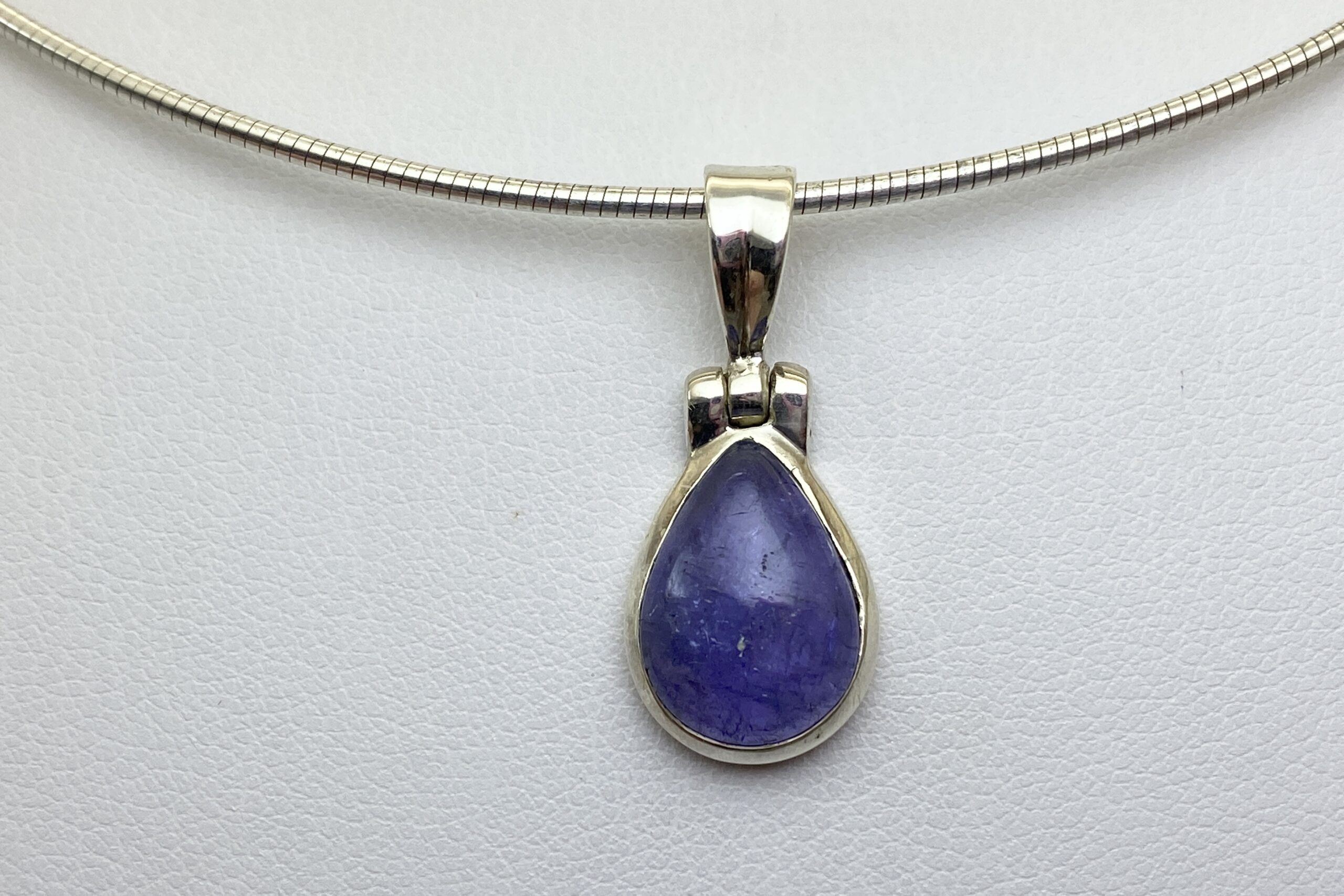 Elegantní přívěsek s kabošonem ve tvaru kapky z krásně modrého tanzanitu.
