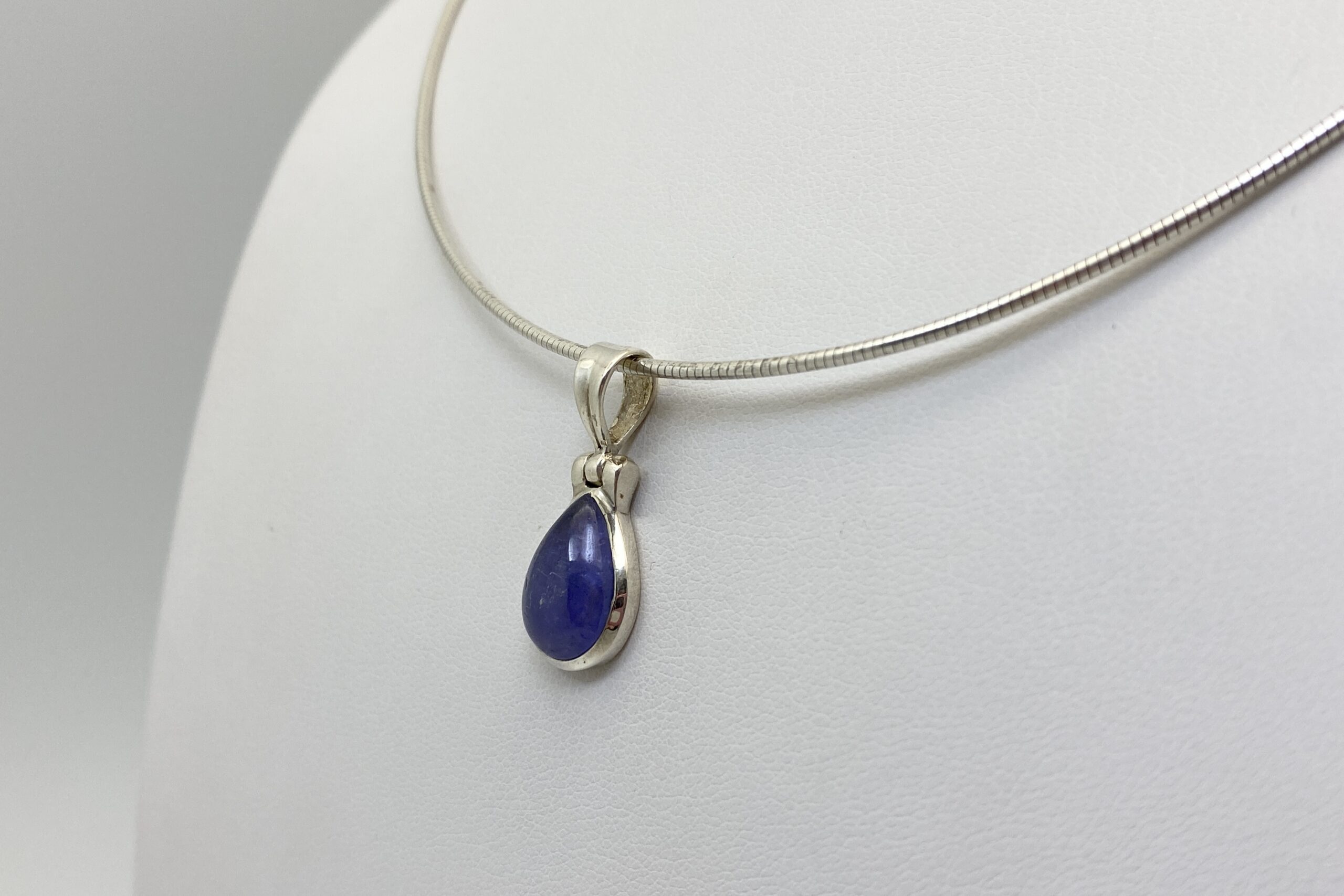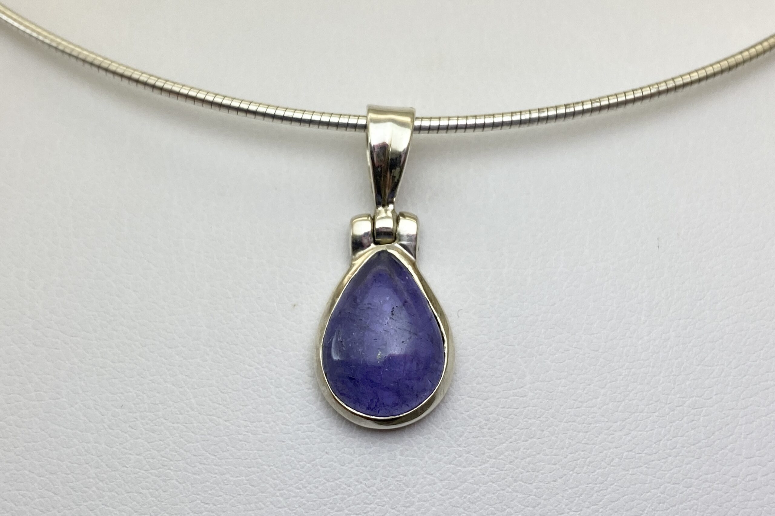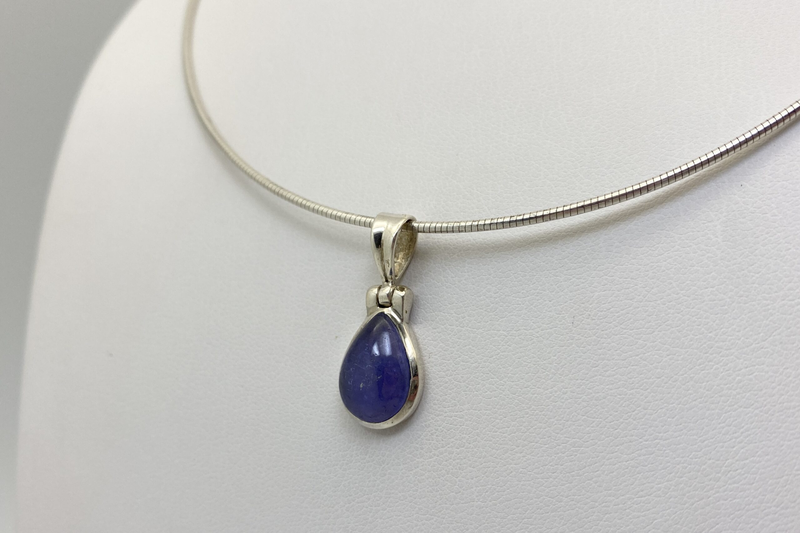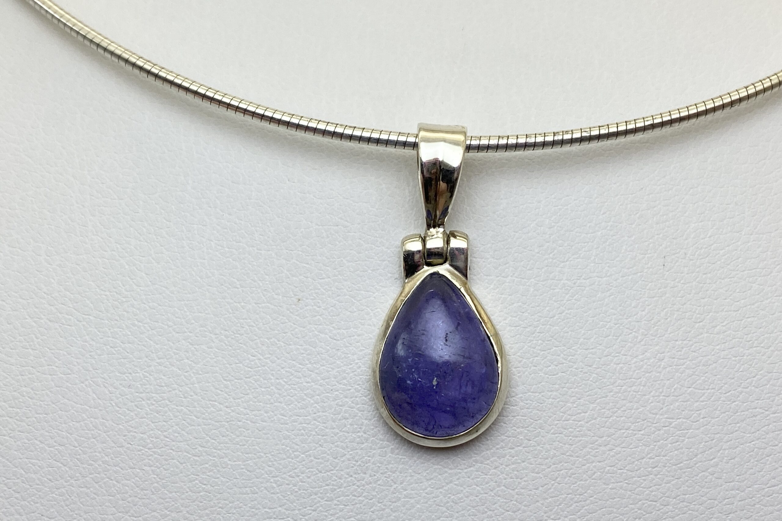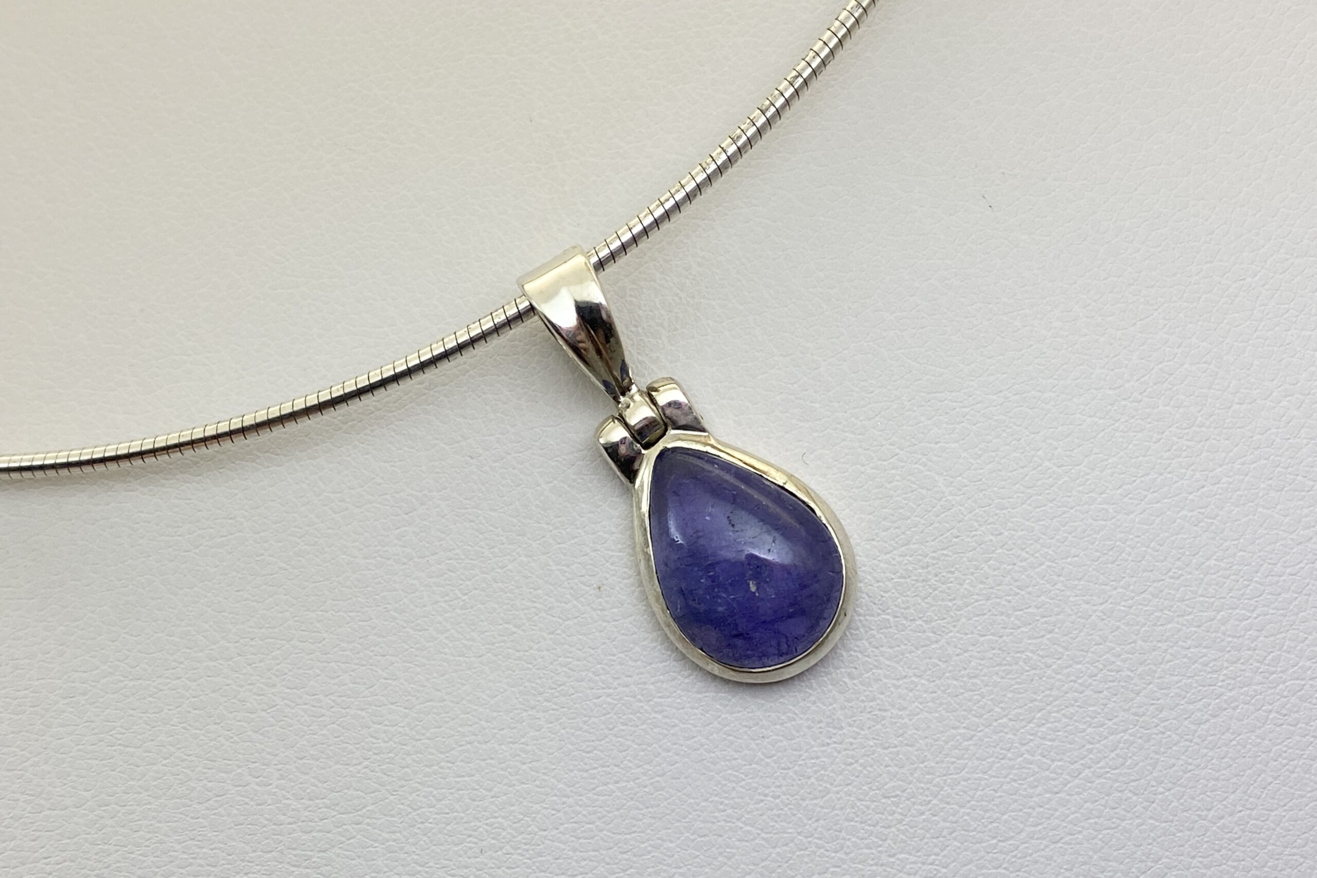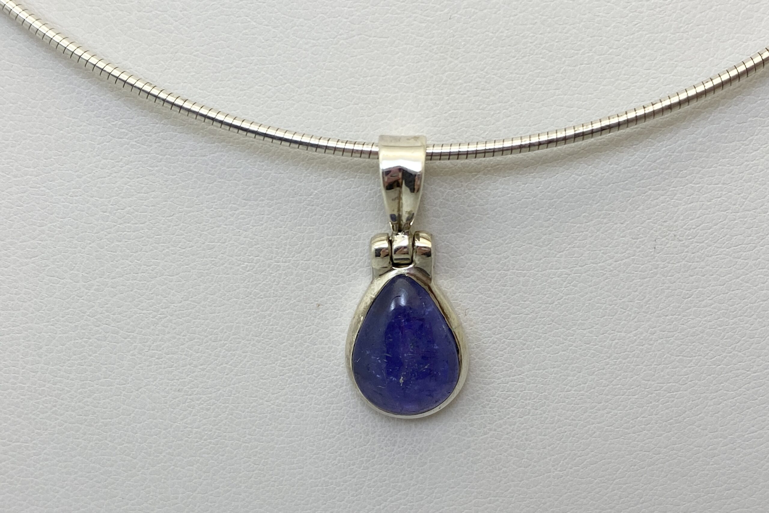 Elegantní přívěsek s kabošonem ve tvaru kapky z krásně modrého tanzanitu.