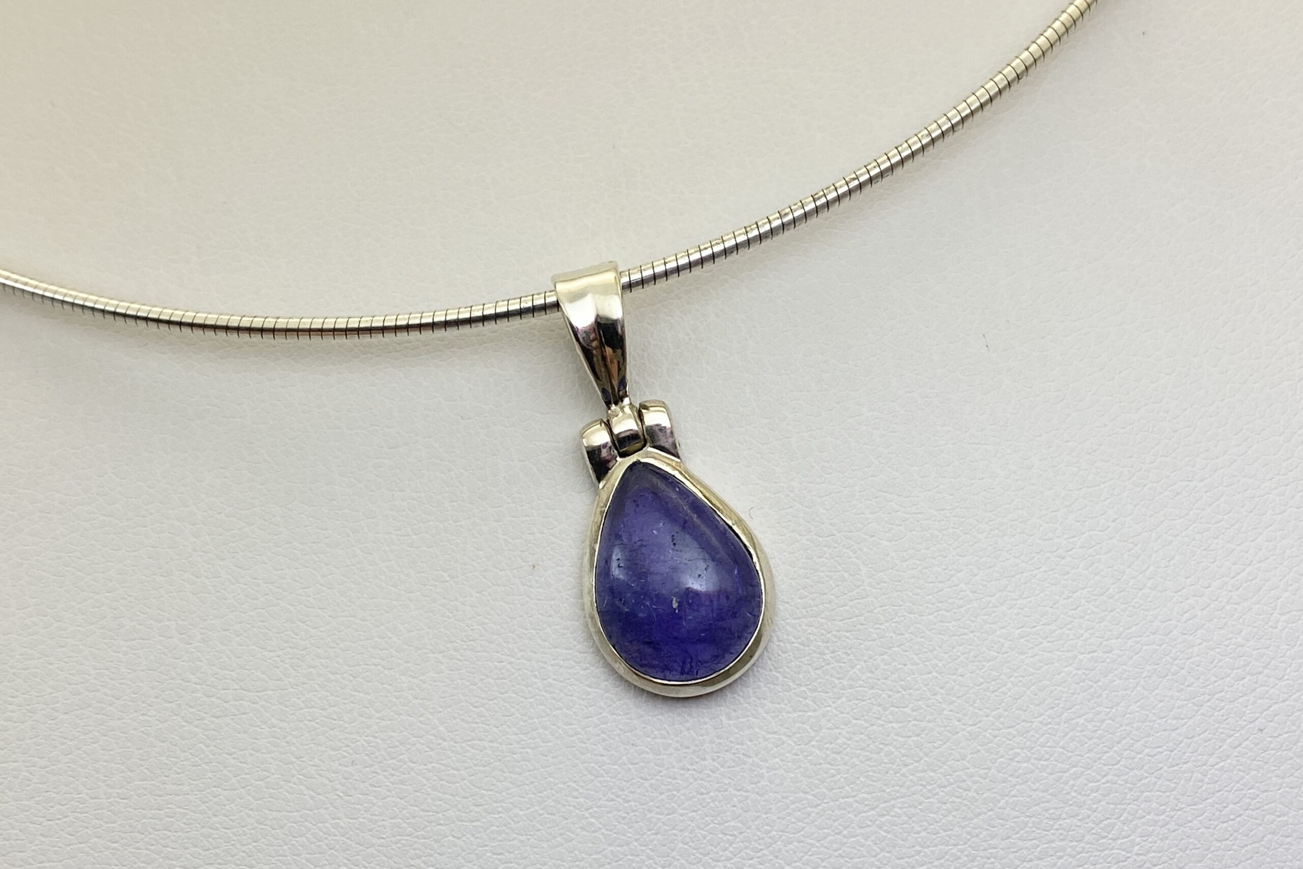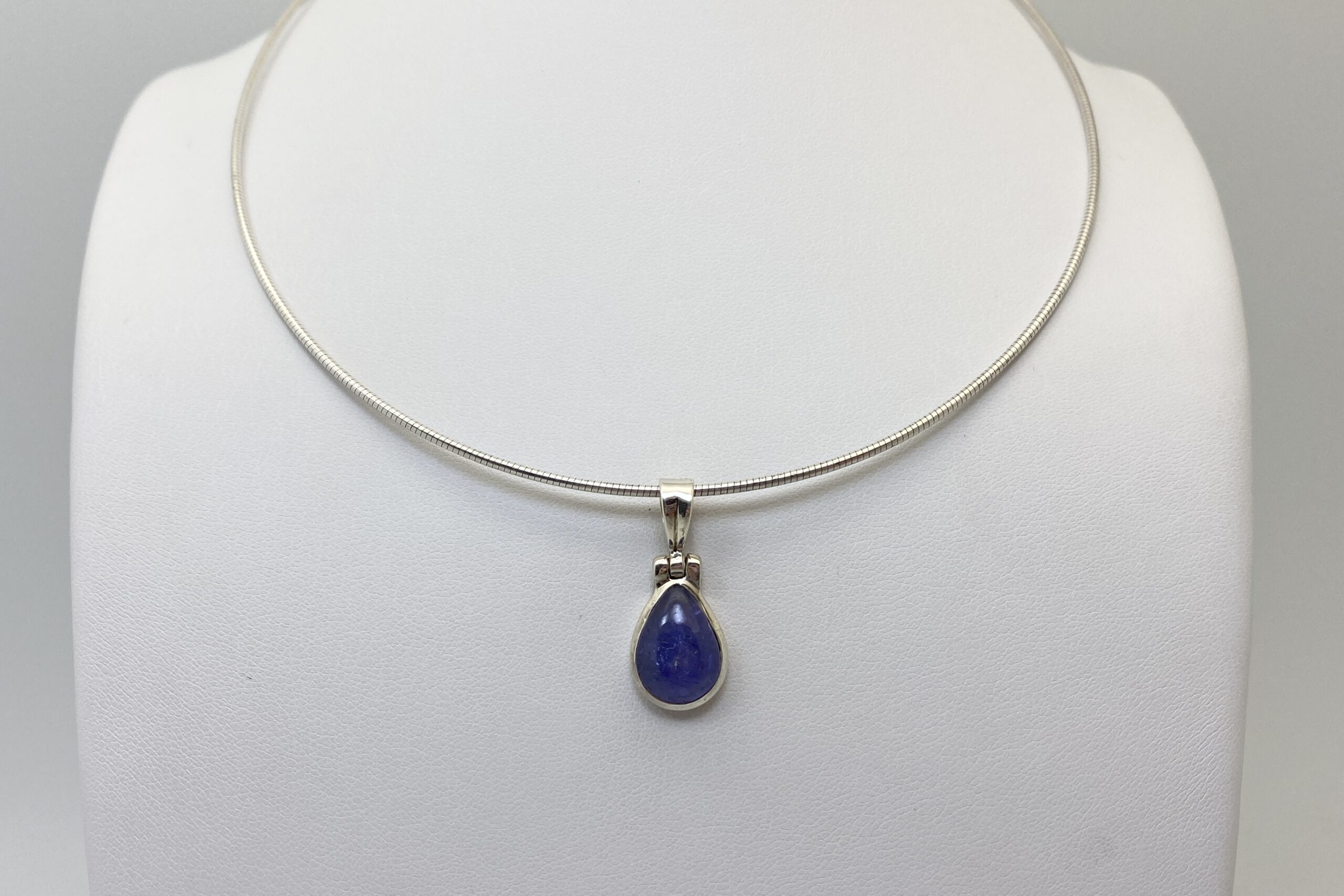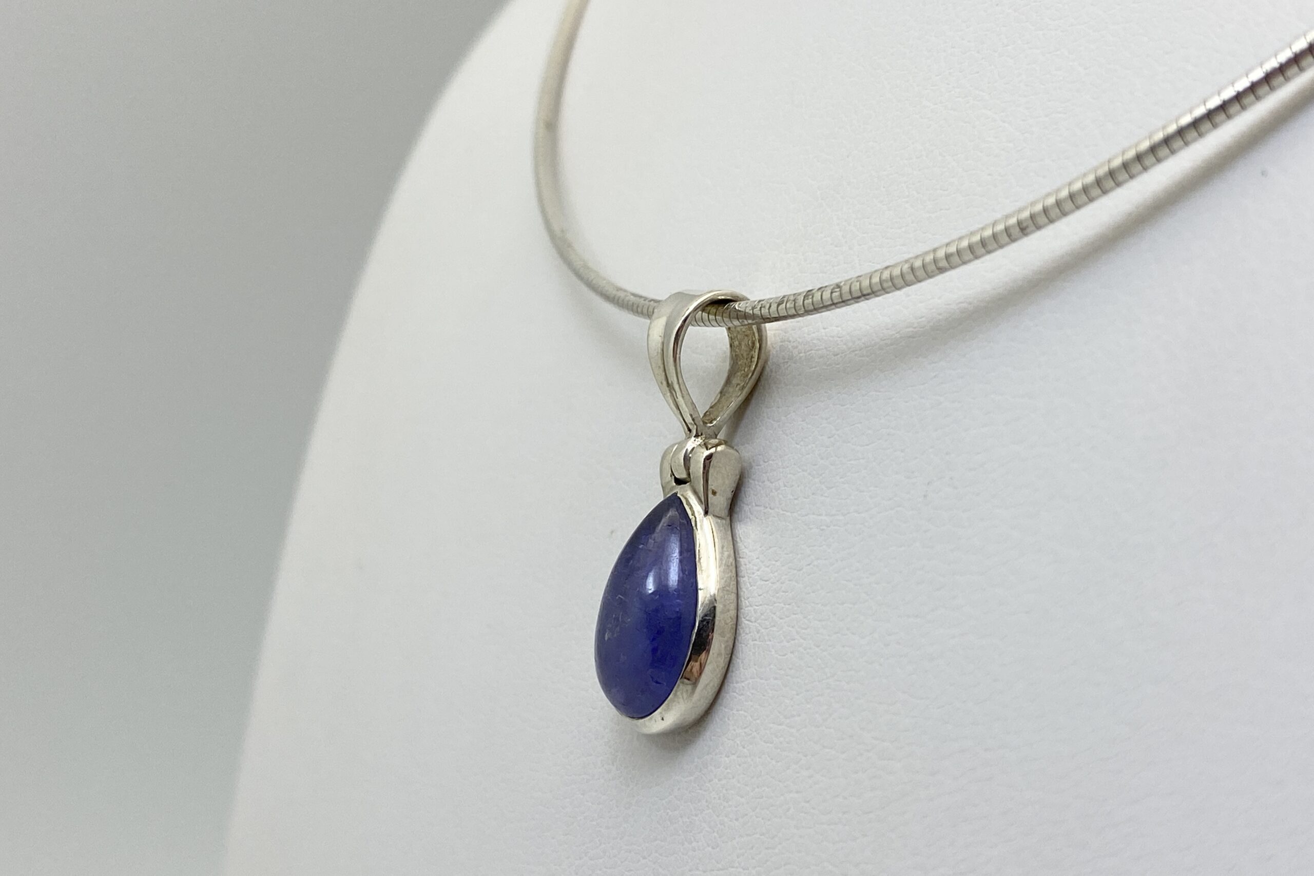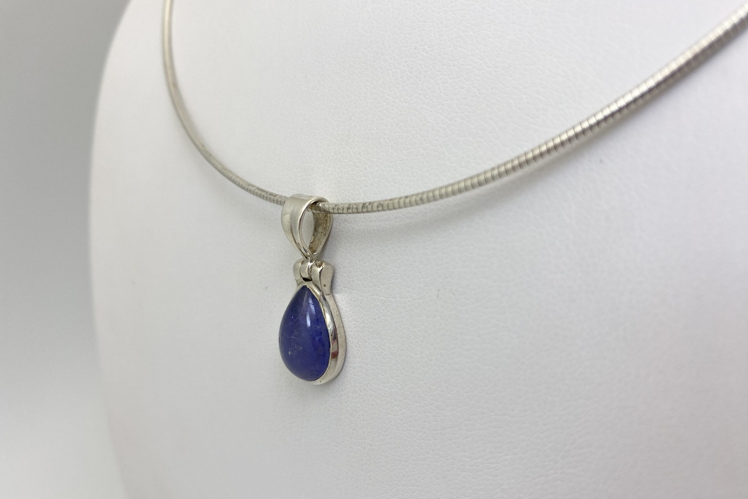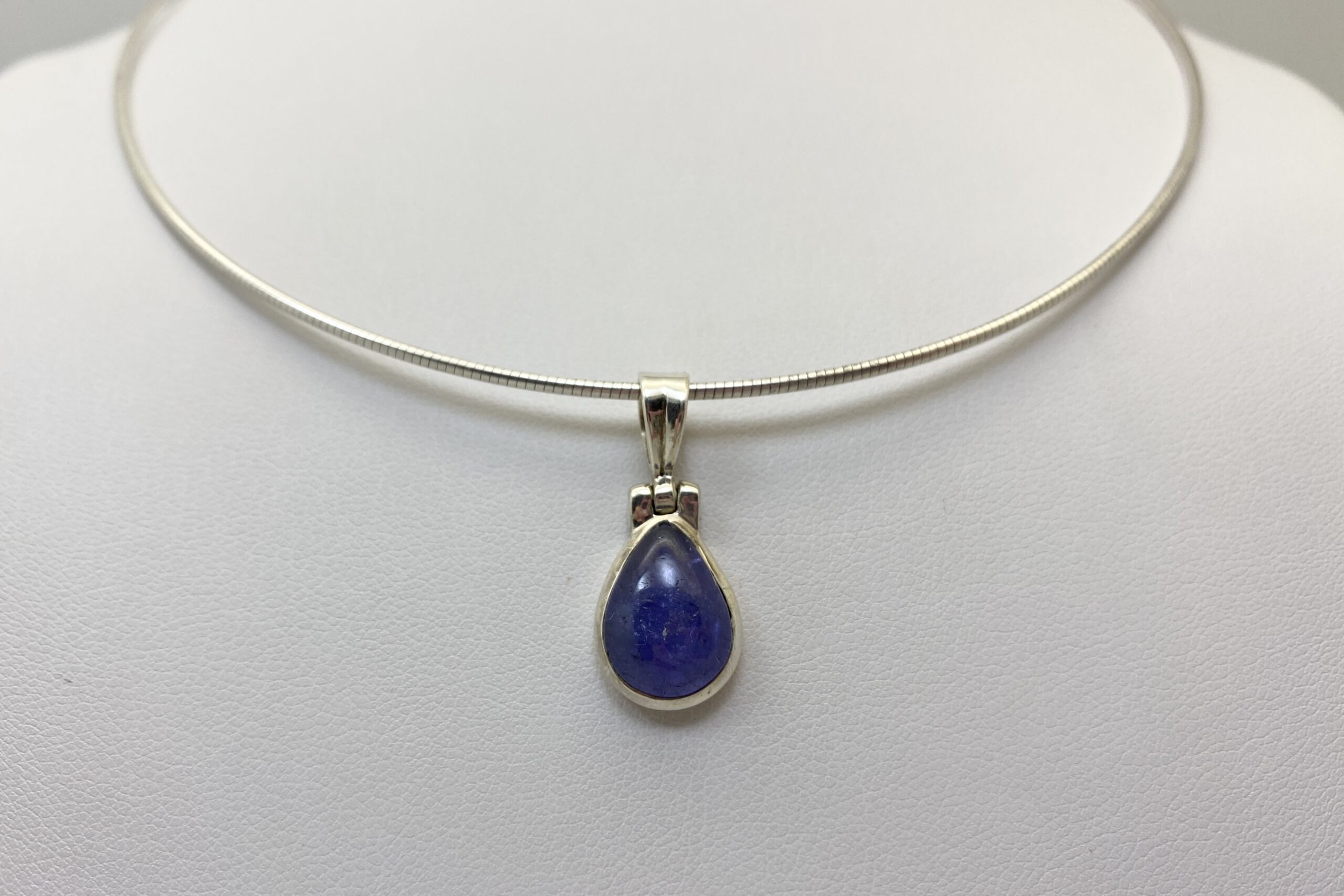 Elegantní přívěsek s kabošonem ve tvaru kapky z krásně modrého tanzanitu.