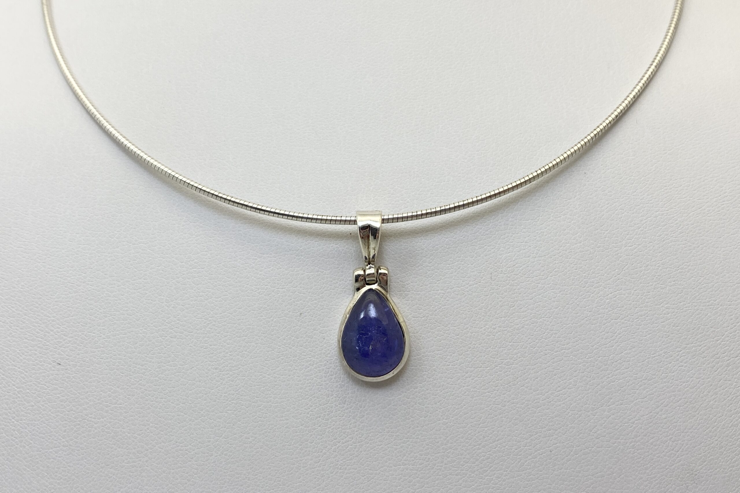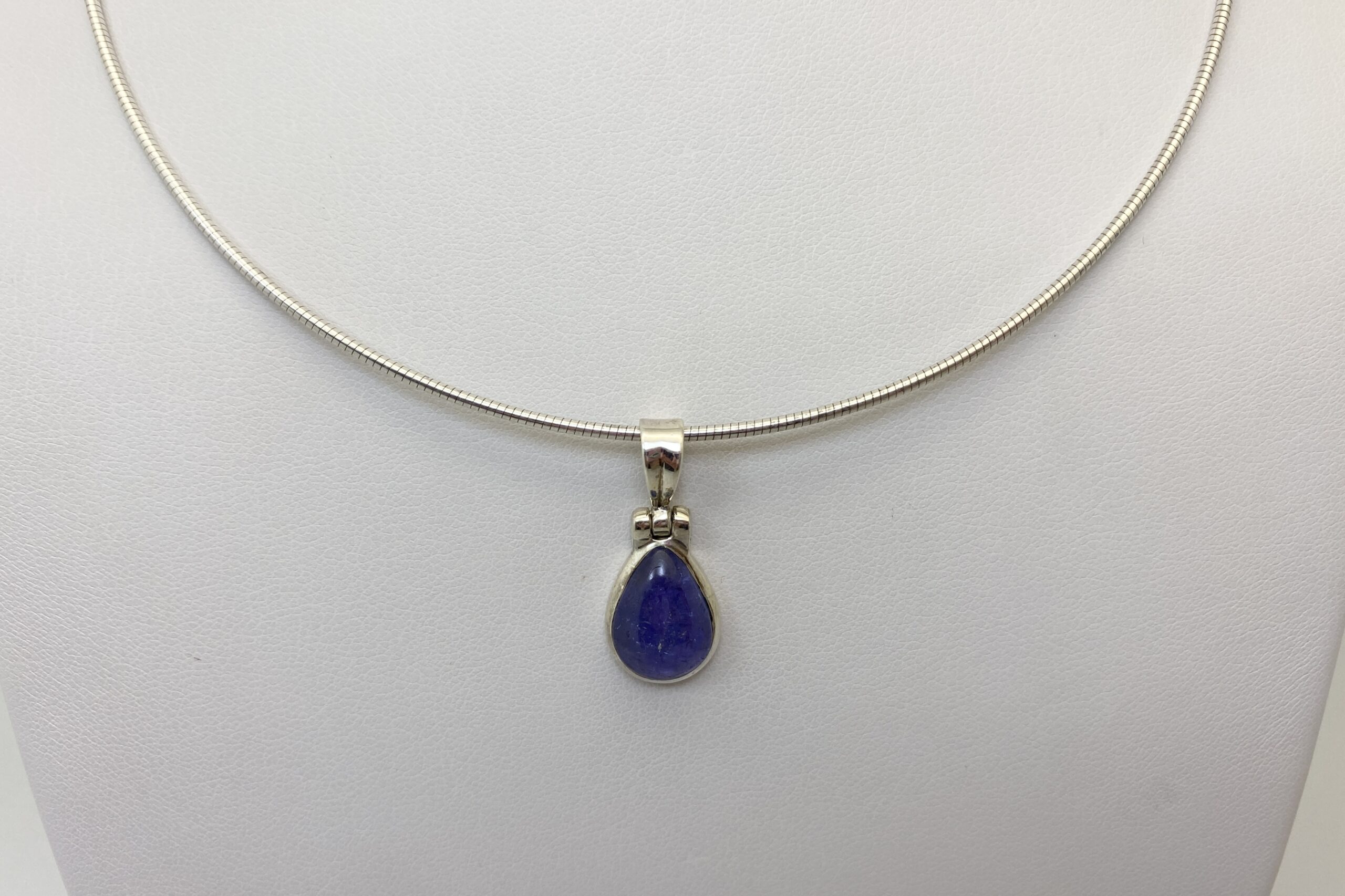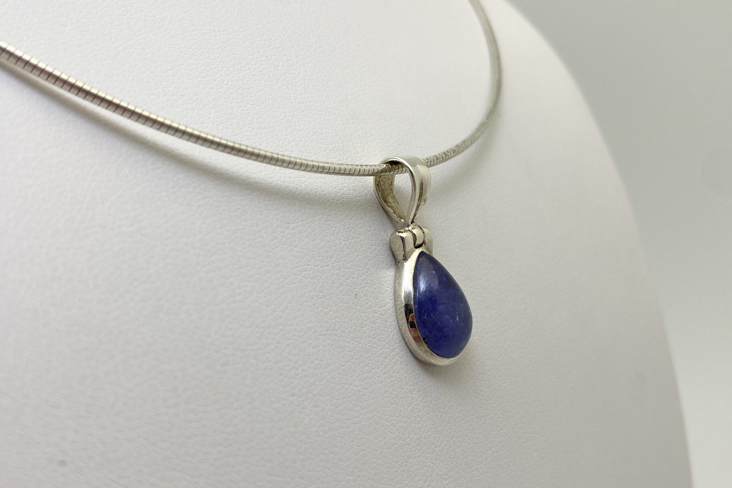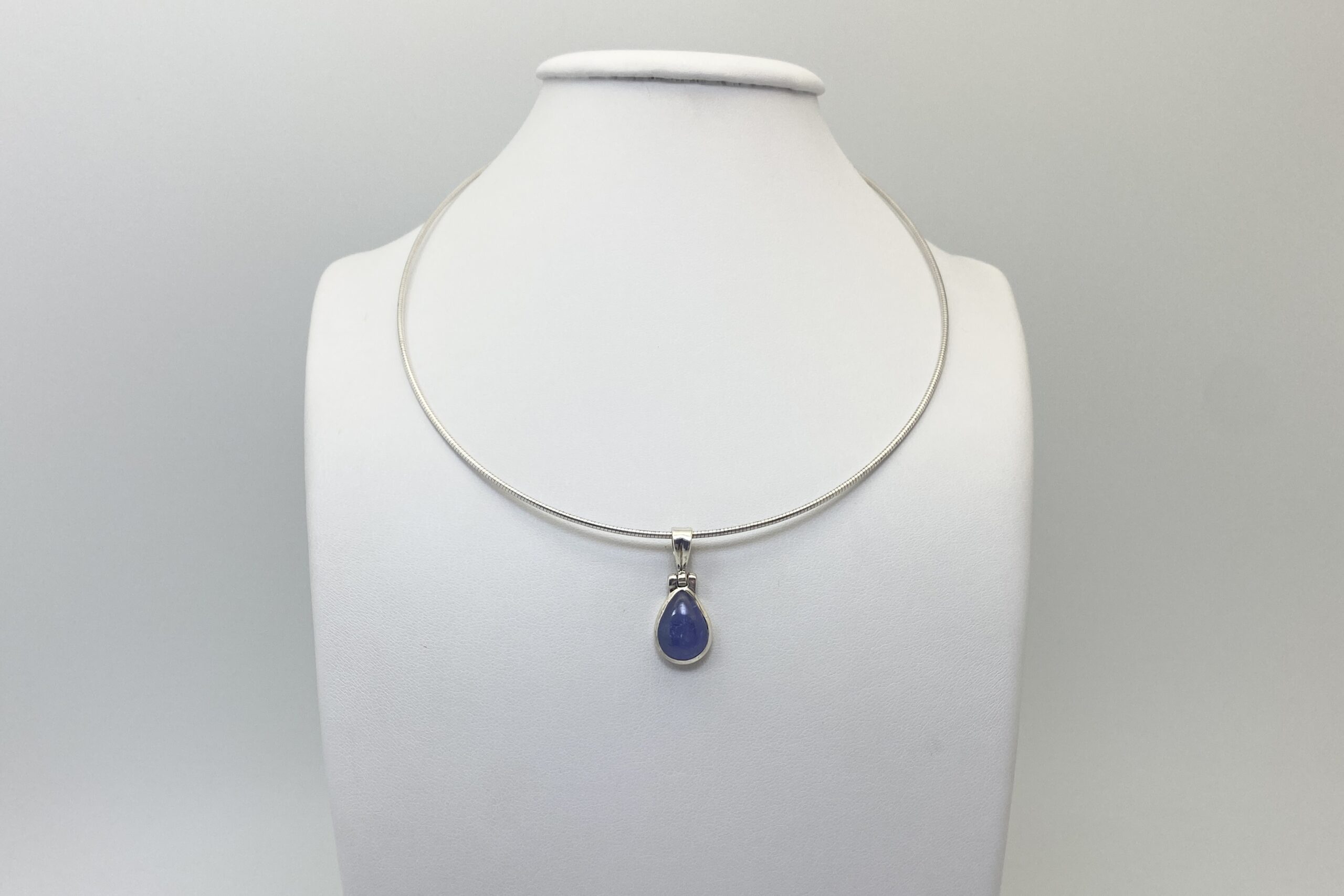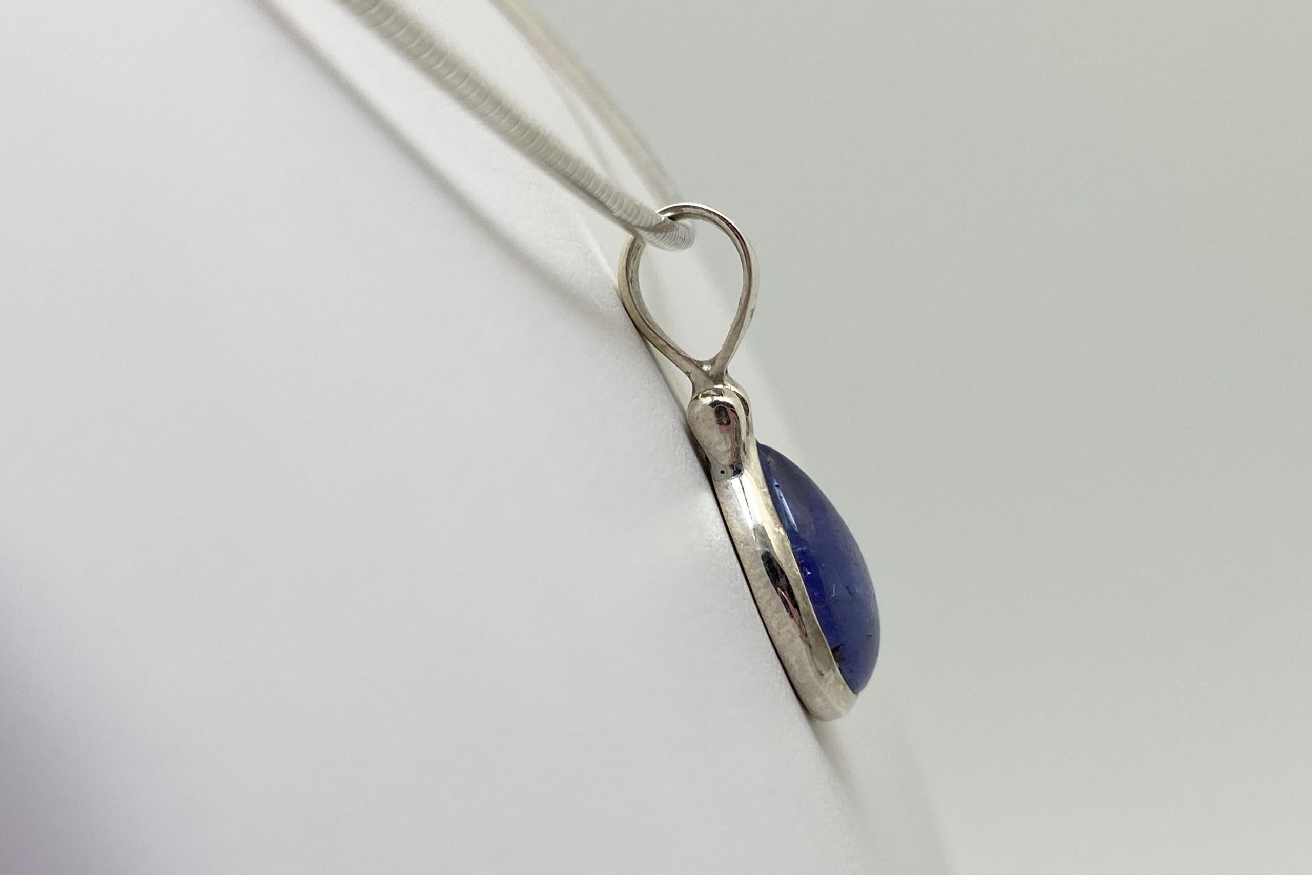 Elegantní přívěsek s kabošonem ve tvaru kapky z krásně modrého tanzanitu.